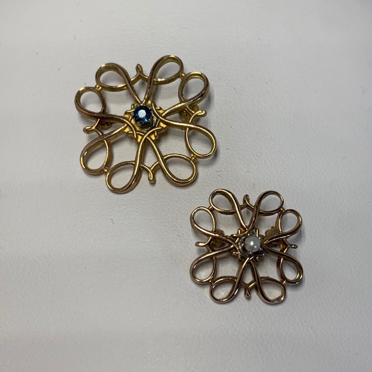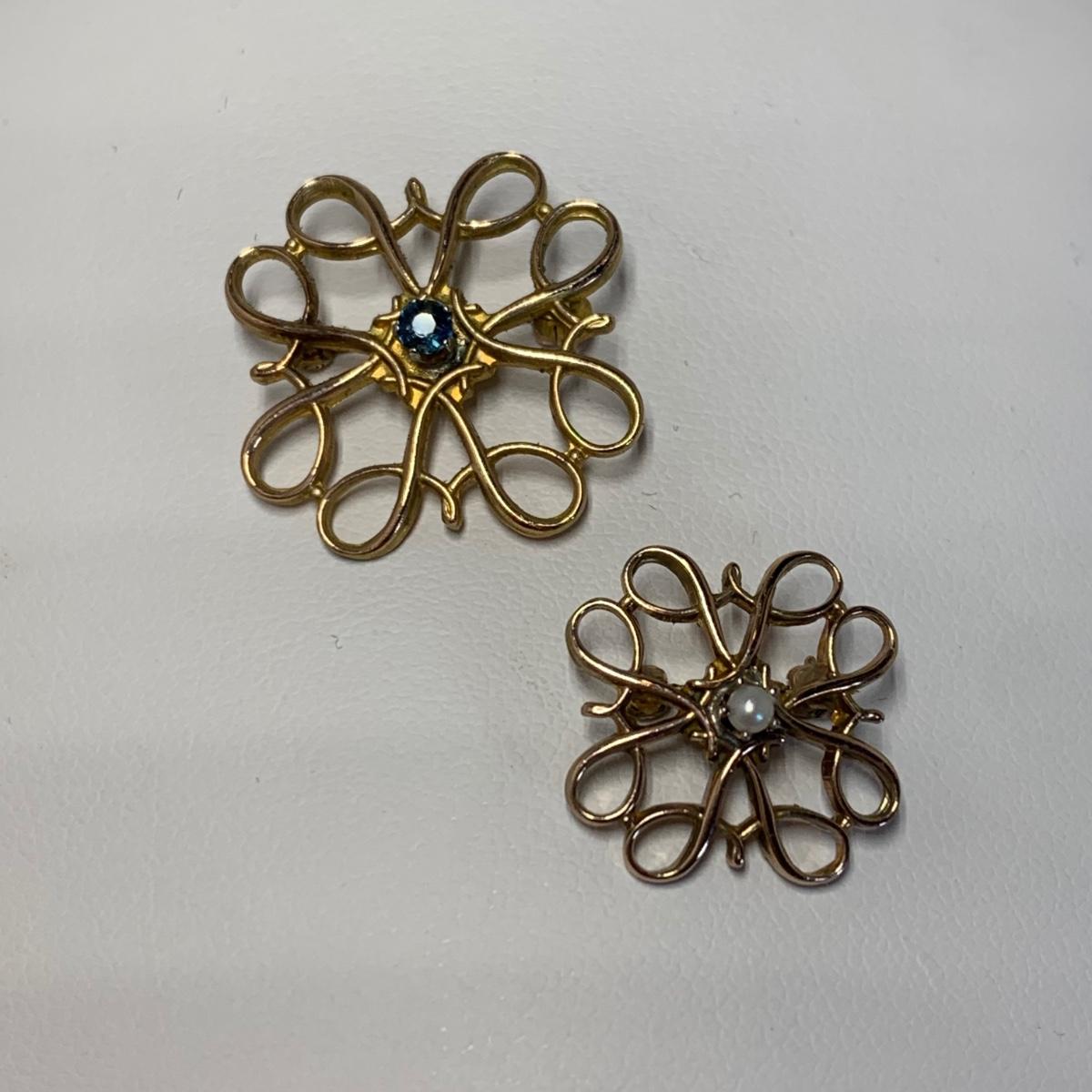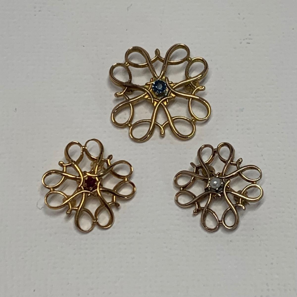 LOT 63: Vintage 10k Avon Service Award Pins, Ruby, Pearl & Blue Sapphire: Tw 4.48gr