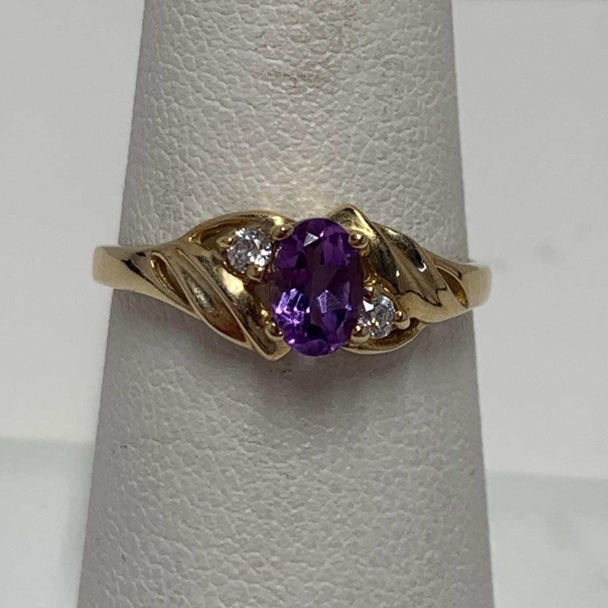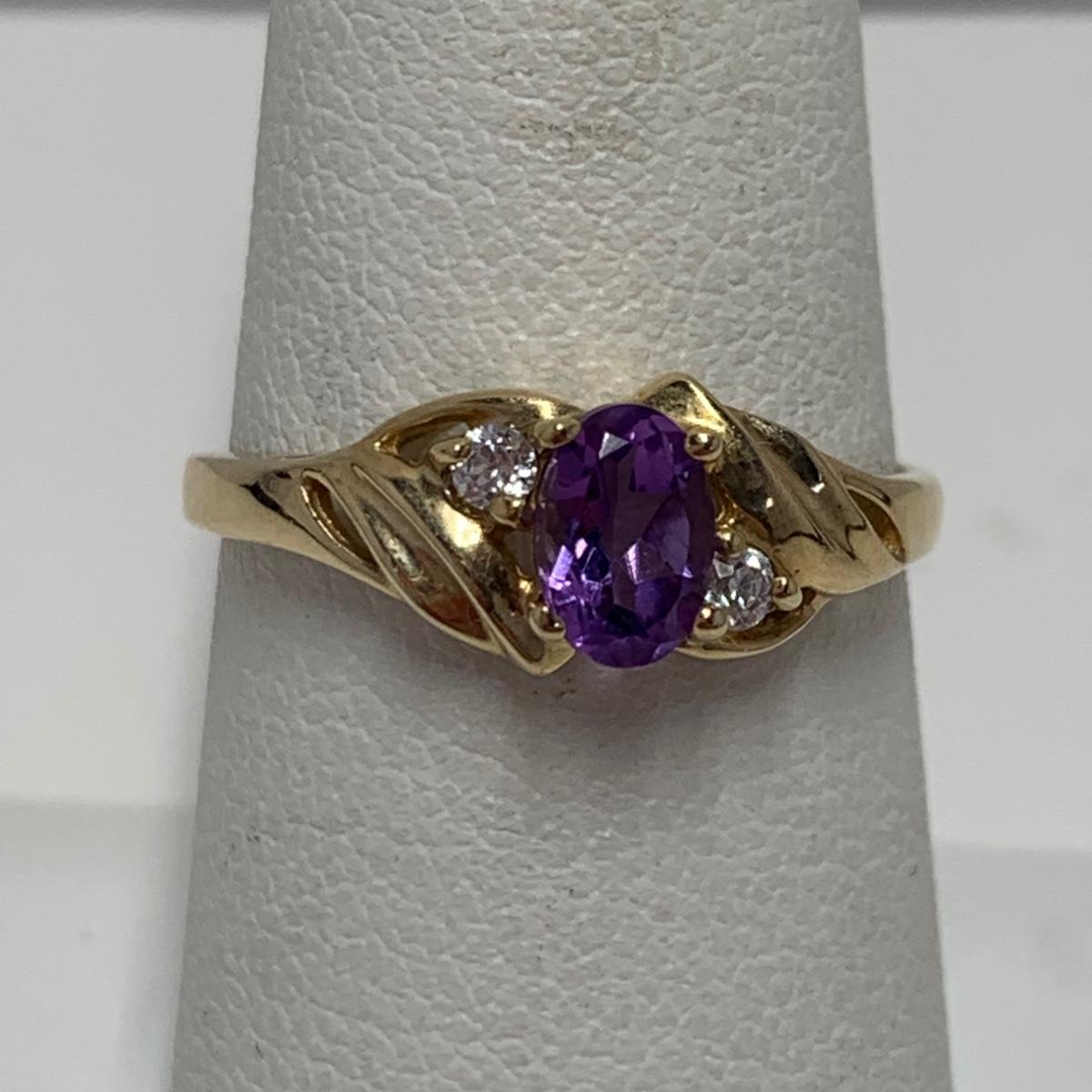 LOT 65: Amethyst & 10K Gold Ring: Sz. 7: Tw. 1.57gr
