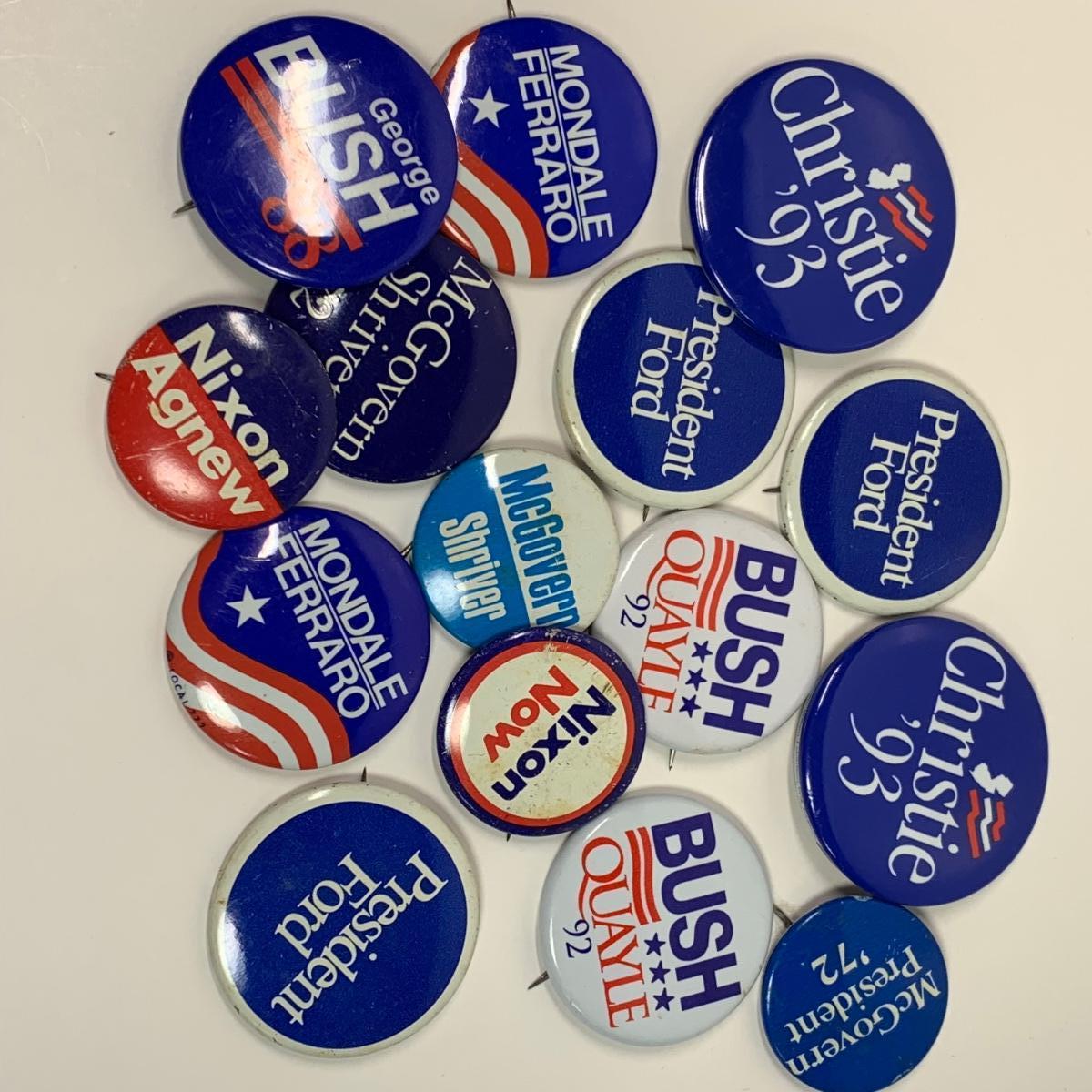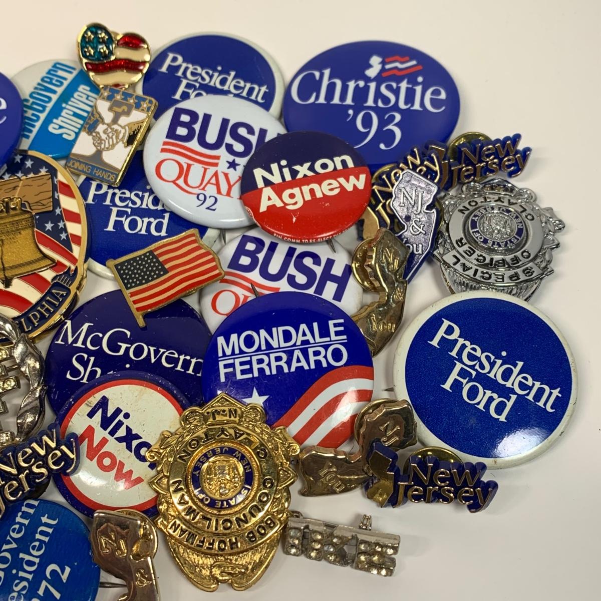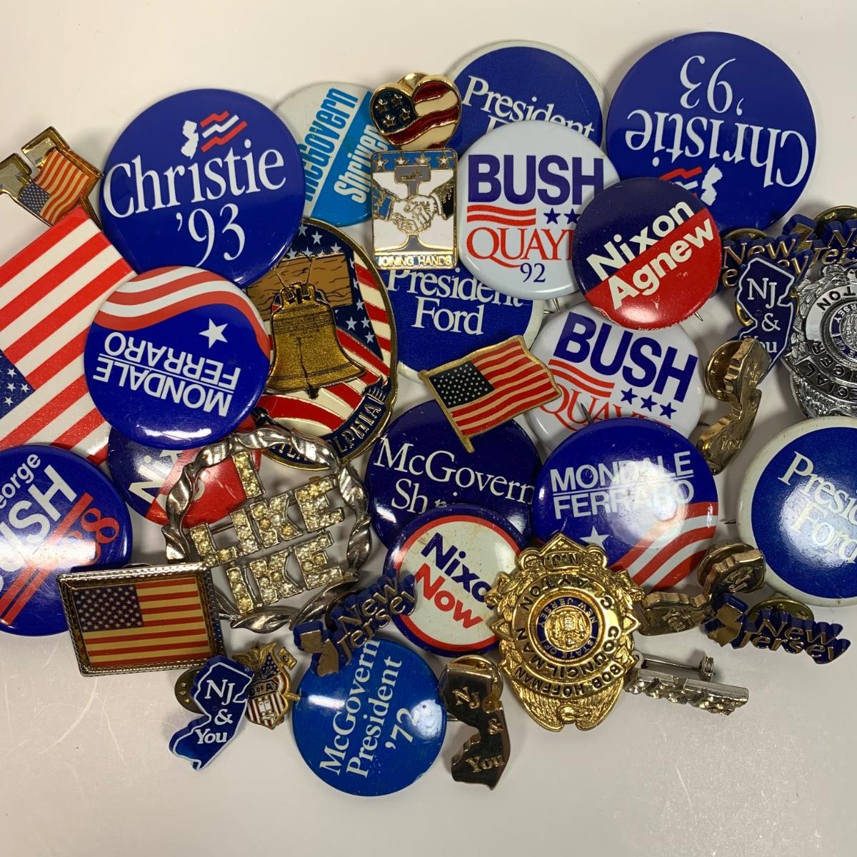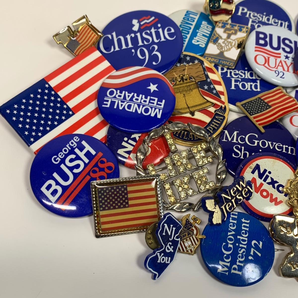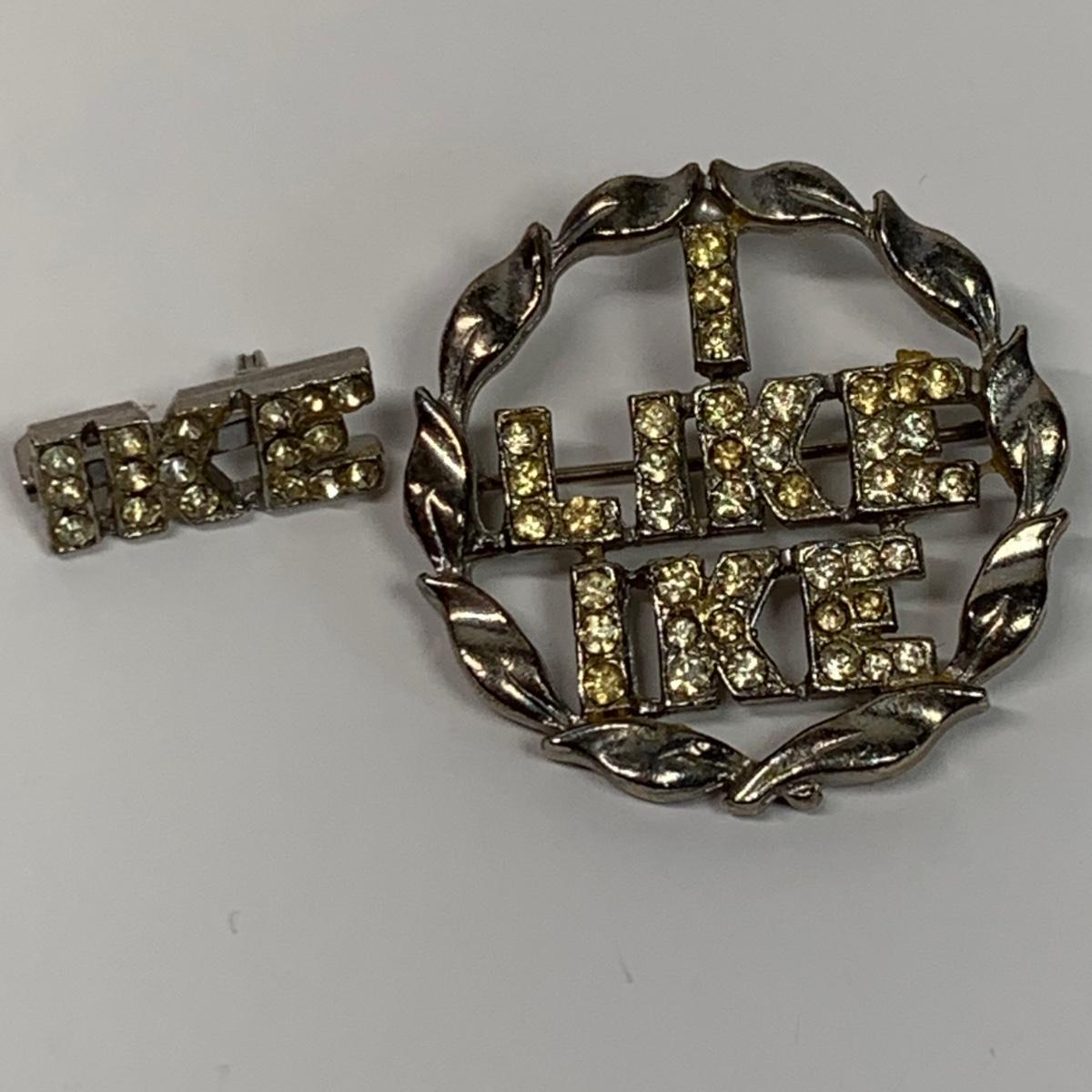 LOT 67: Vintage "I like Ike" Rhinestone Brooch & Pin, Political Buttons & More