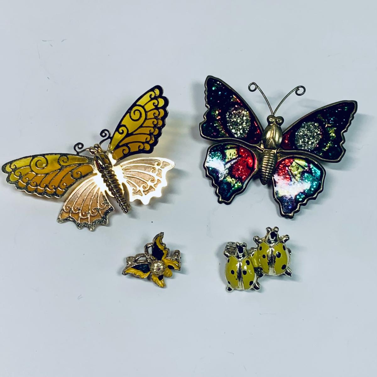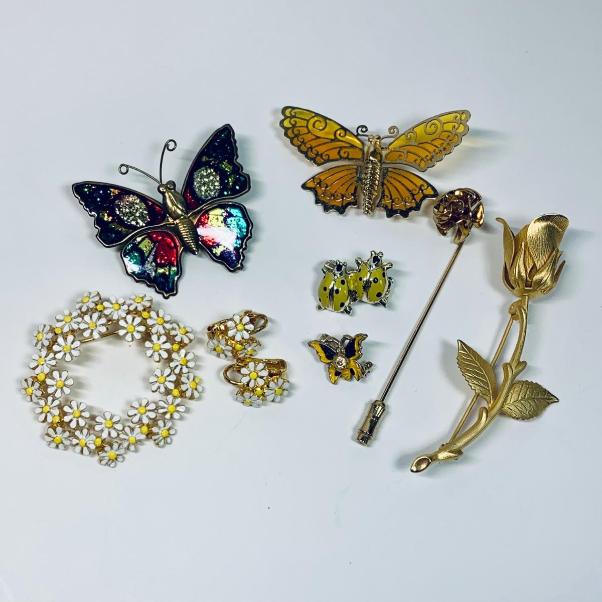 LOT 70: Vintage Brooch Collection: Butterflies, Flowers, Lady Bugs