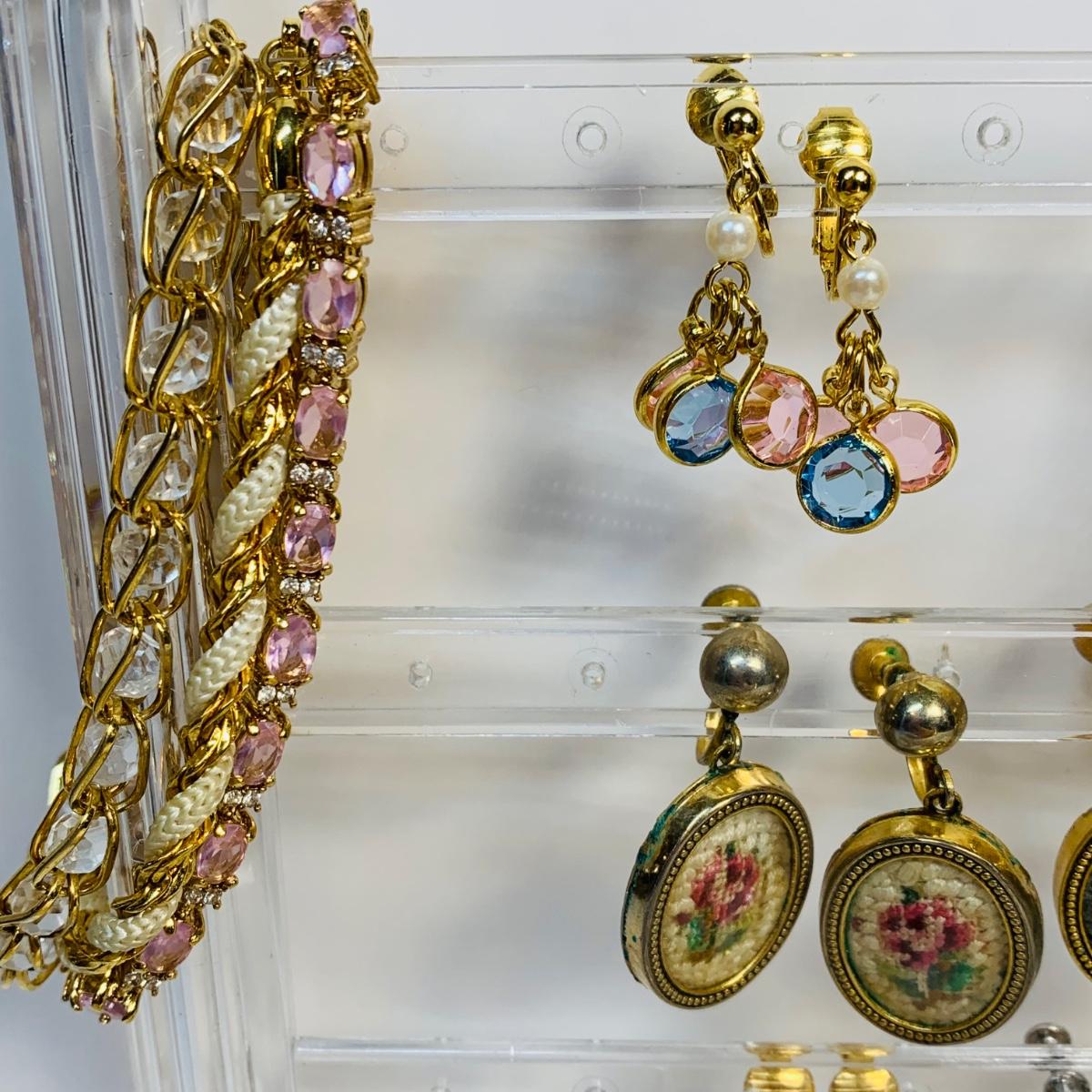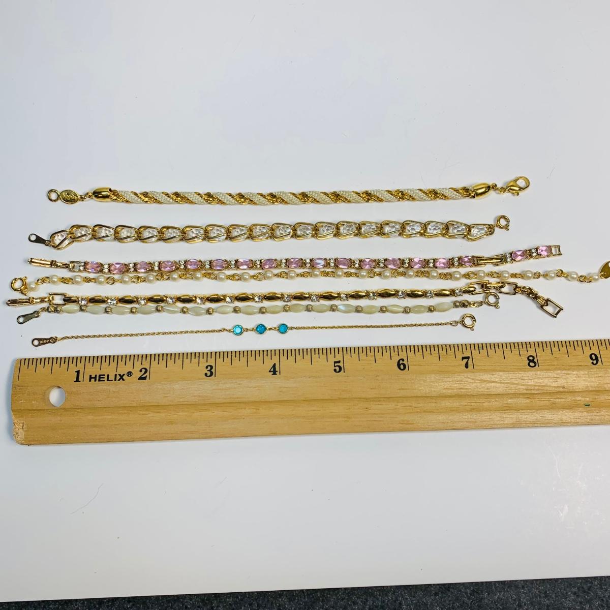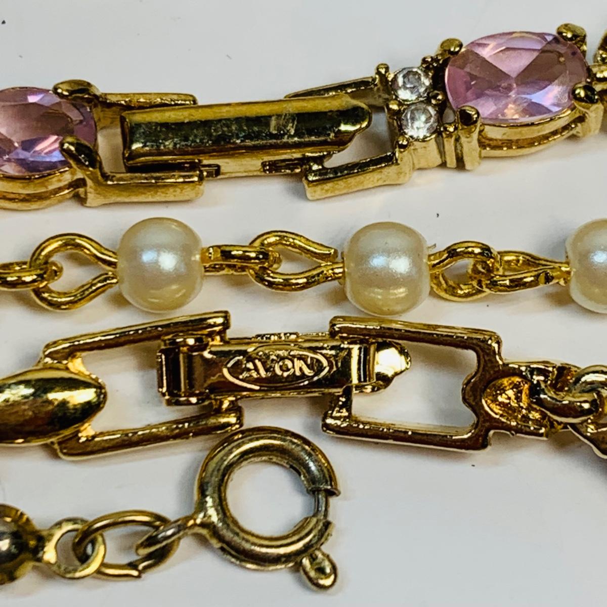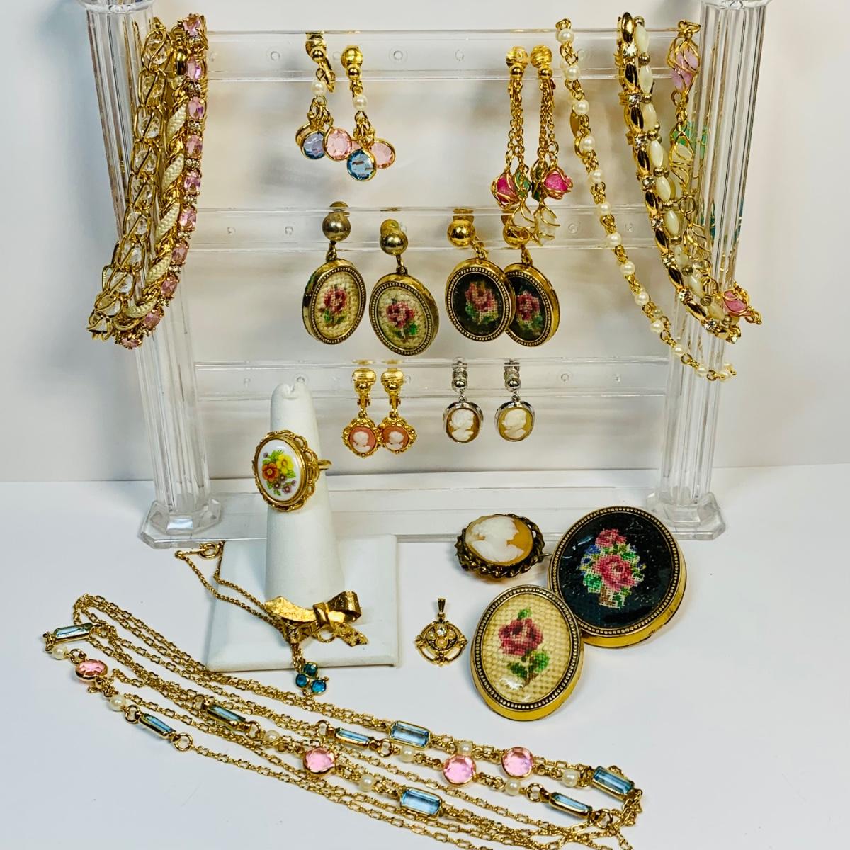 LOT 75: Gold Tone Collection: Needle Point Brooches & Clip-On Dangle Earrings, Bracelets: Napier, Avon & More