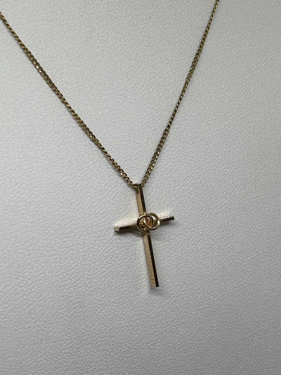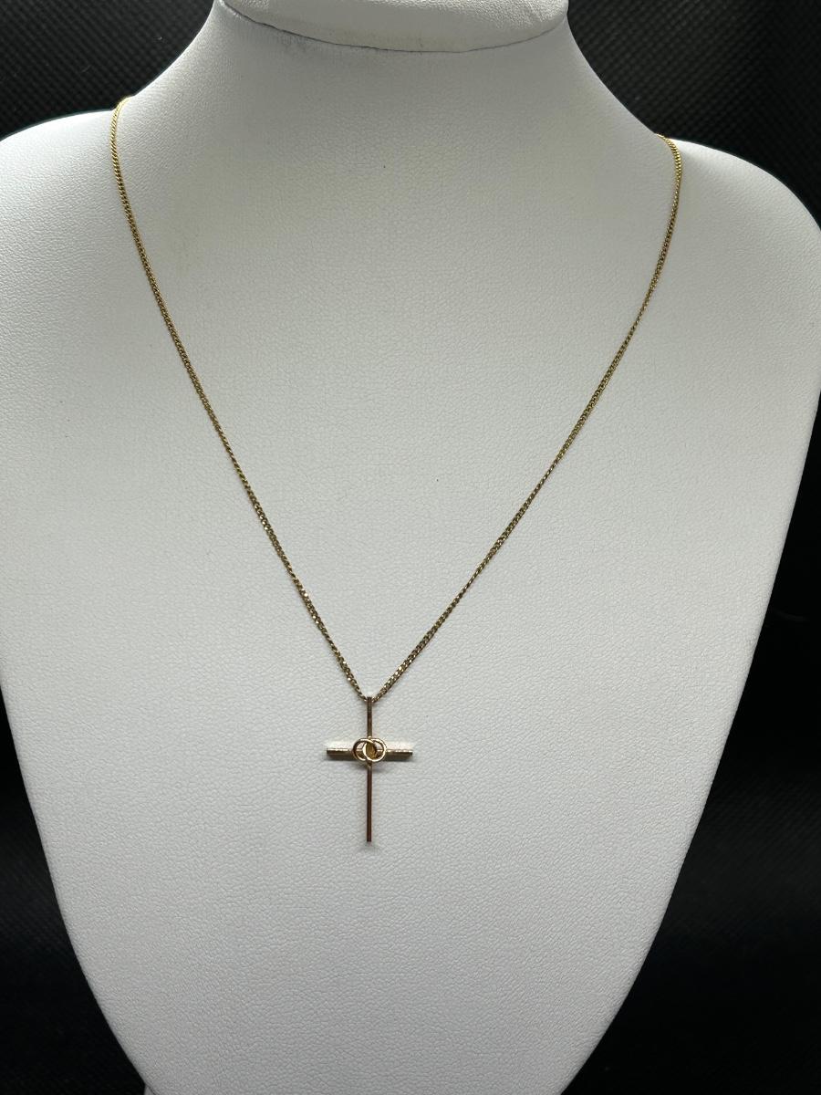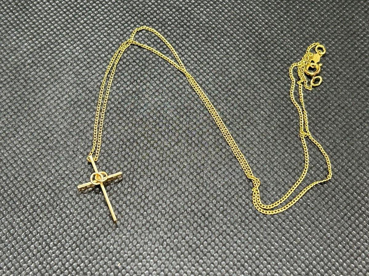 LOT 82: Gold Cross Necklace: 12 KT, Tw. 1.58, 18" Chain