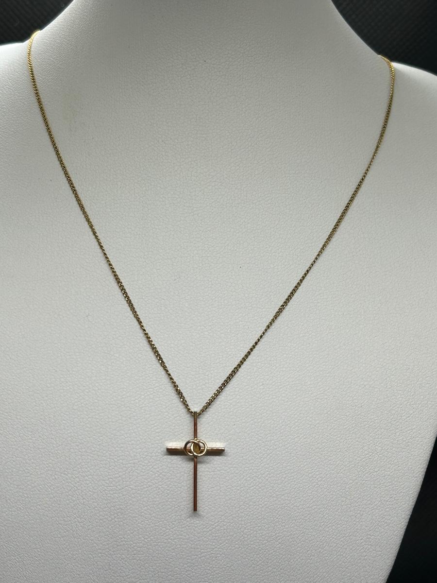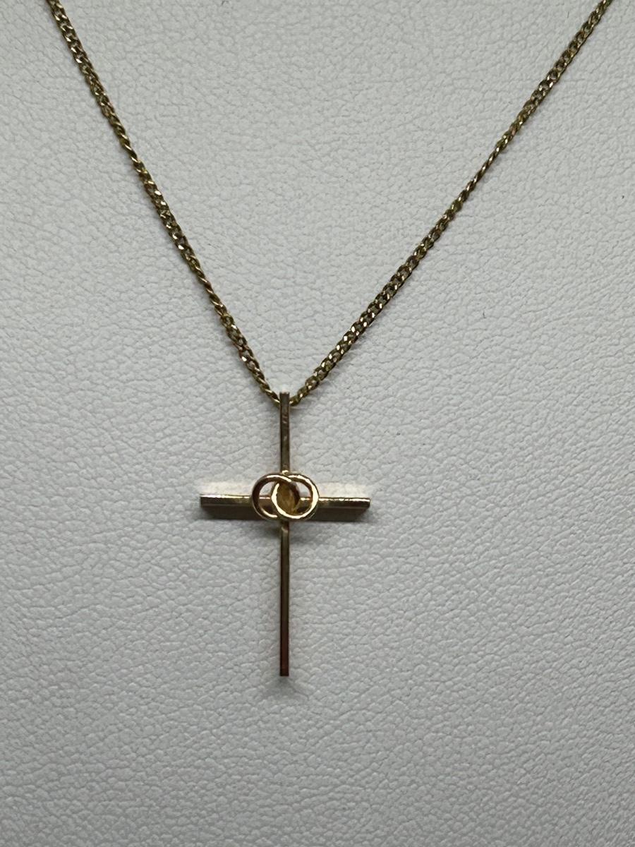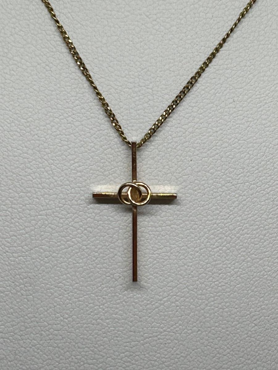 LOT 82: Gold Cross Necklace: 12 KT, Tw. 1.58, 18" Chain