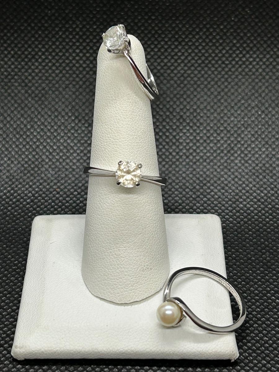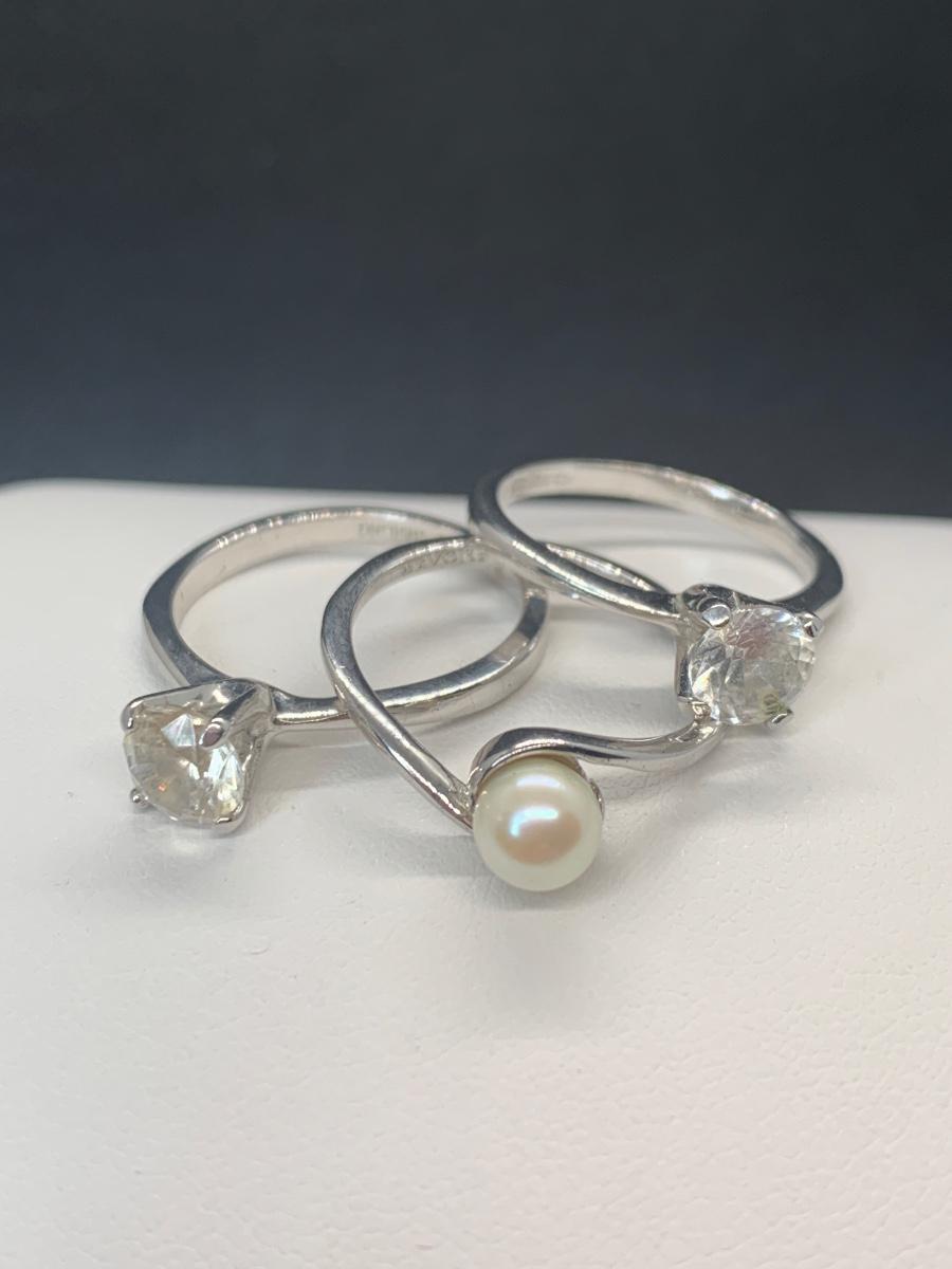 LOT 87: Three Avon Sterling Silver Rings with Pearl & Rhinestones