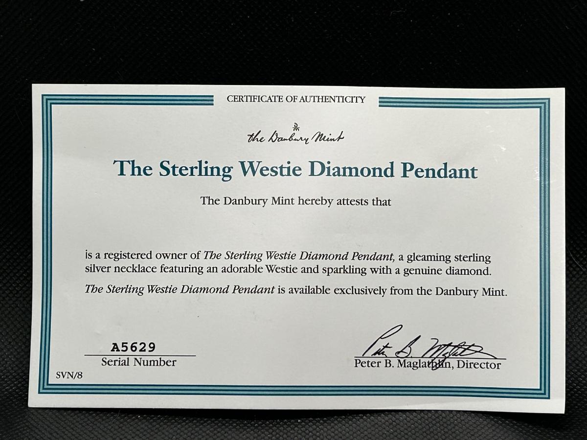LOT 88: The Danbury Mint Sterling Silver Westie Pendant with Certificate of Authenticity