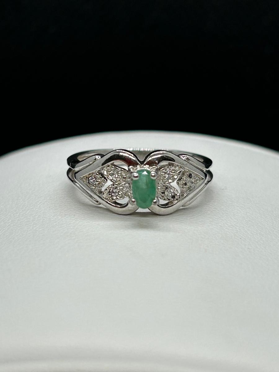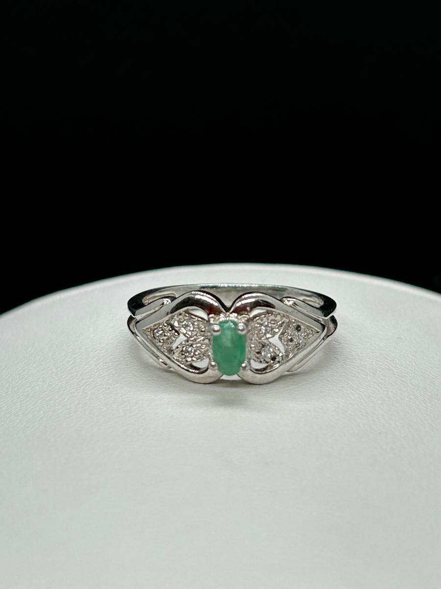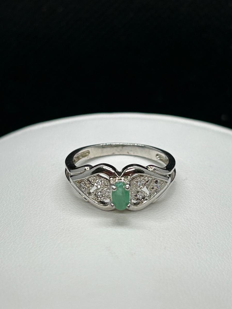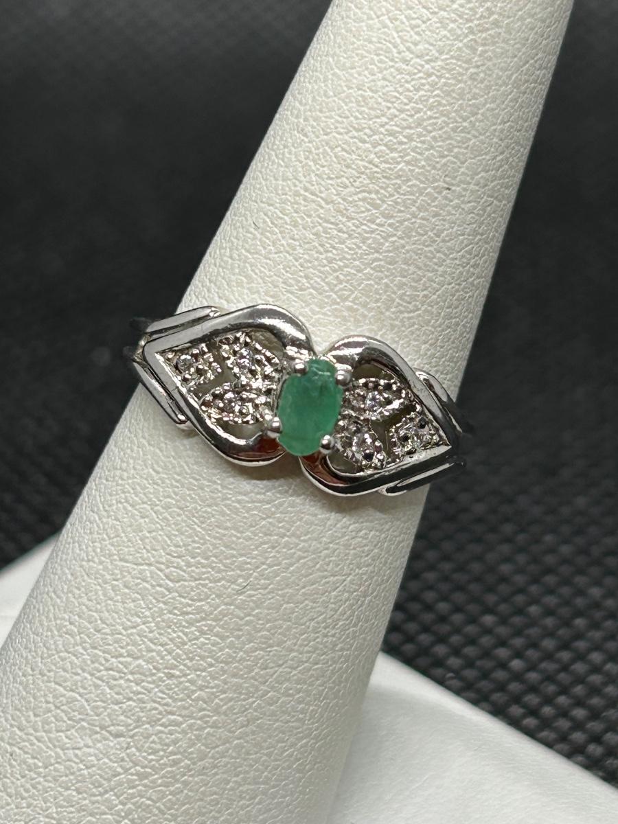 LOT 94: Sterling Silver Simulated Emerald (925) Ring Size 7