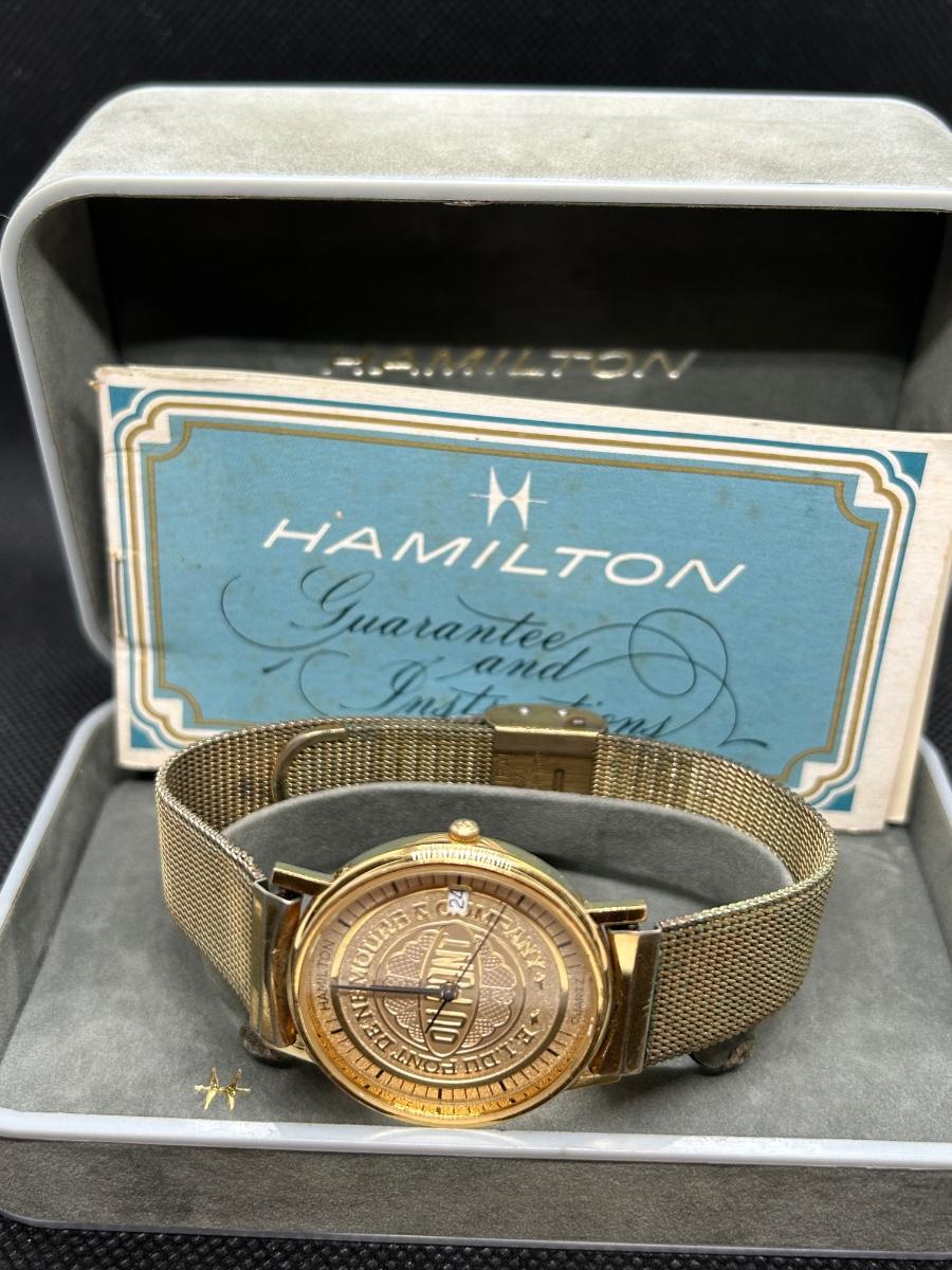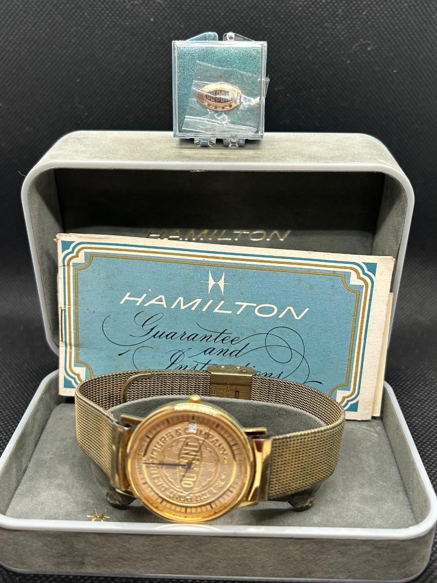 LOT 96: Hamilton 1/40- 10KT-R.G.P. Gold Dupont Watch & Gold Dupont Pin