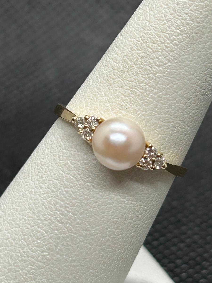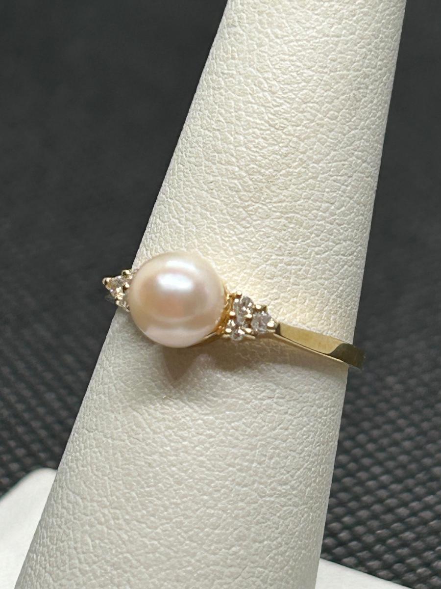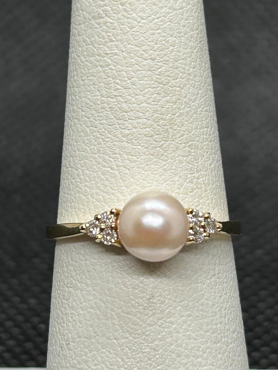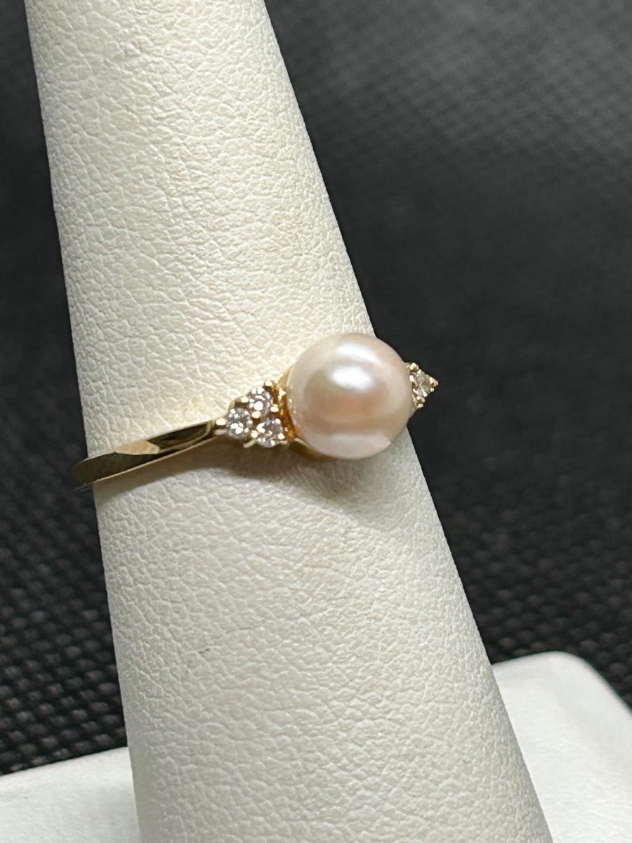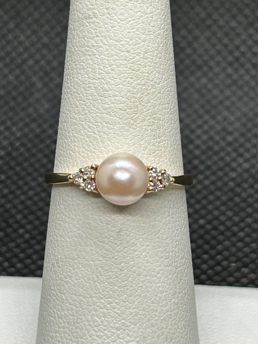 LOT 98: Gold 10k Pearl & Diamond Ring: Tw. 2g, Sz 6.5