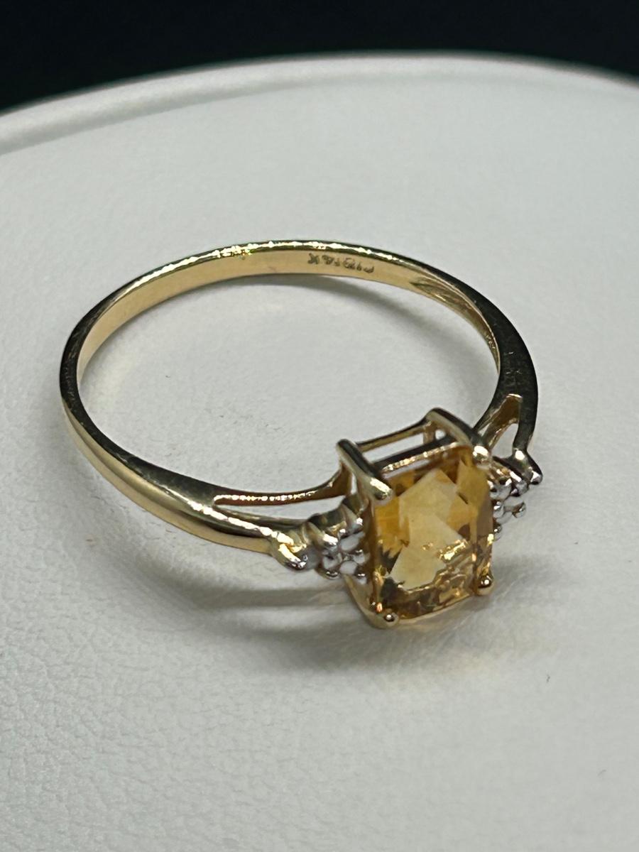 LOT 101: Citrine & Diamond Gold Ring 14k Gold, Sz. 7, Tw 1.47gr