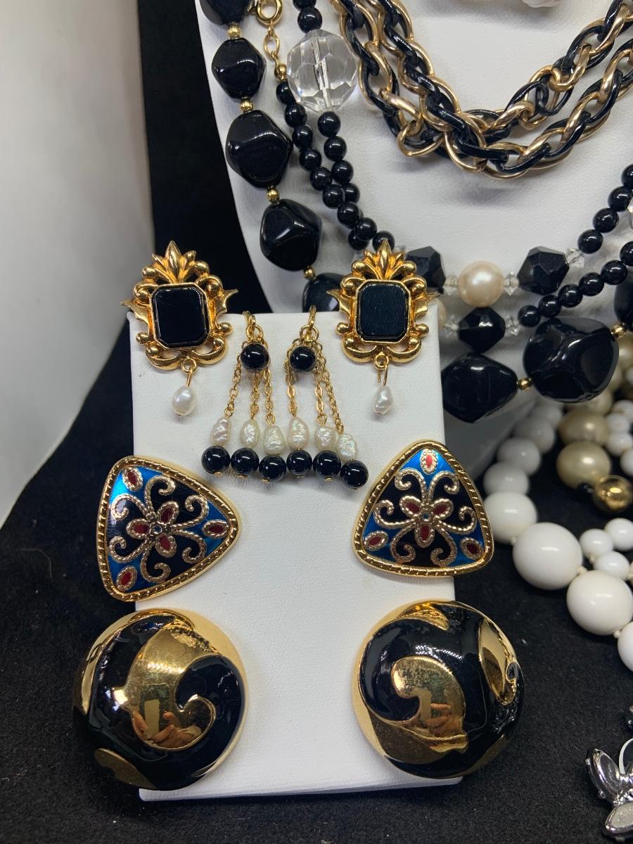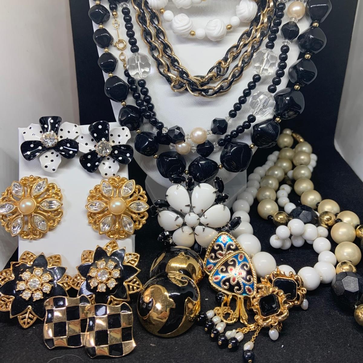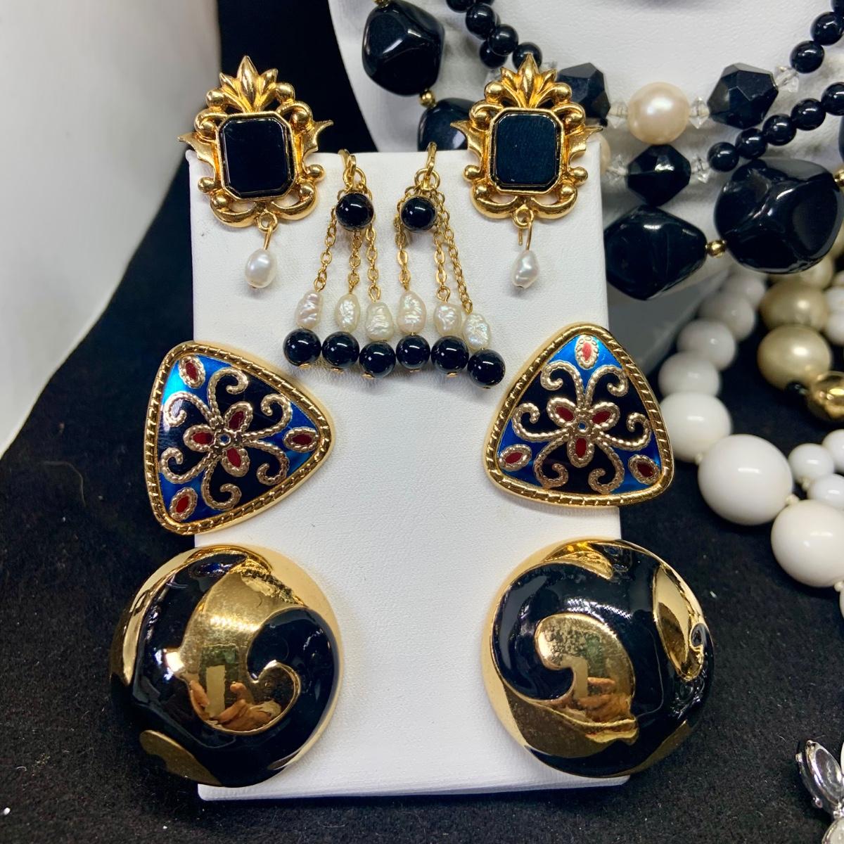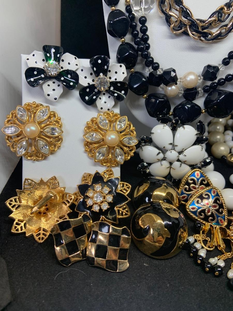 LOT:115: Vintage Black and Gold Fashon Jewelry - Clip-on Earrings, Pins and Necklaces