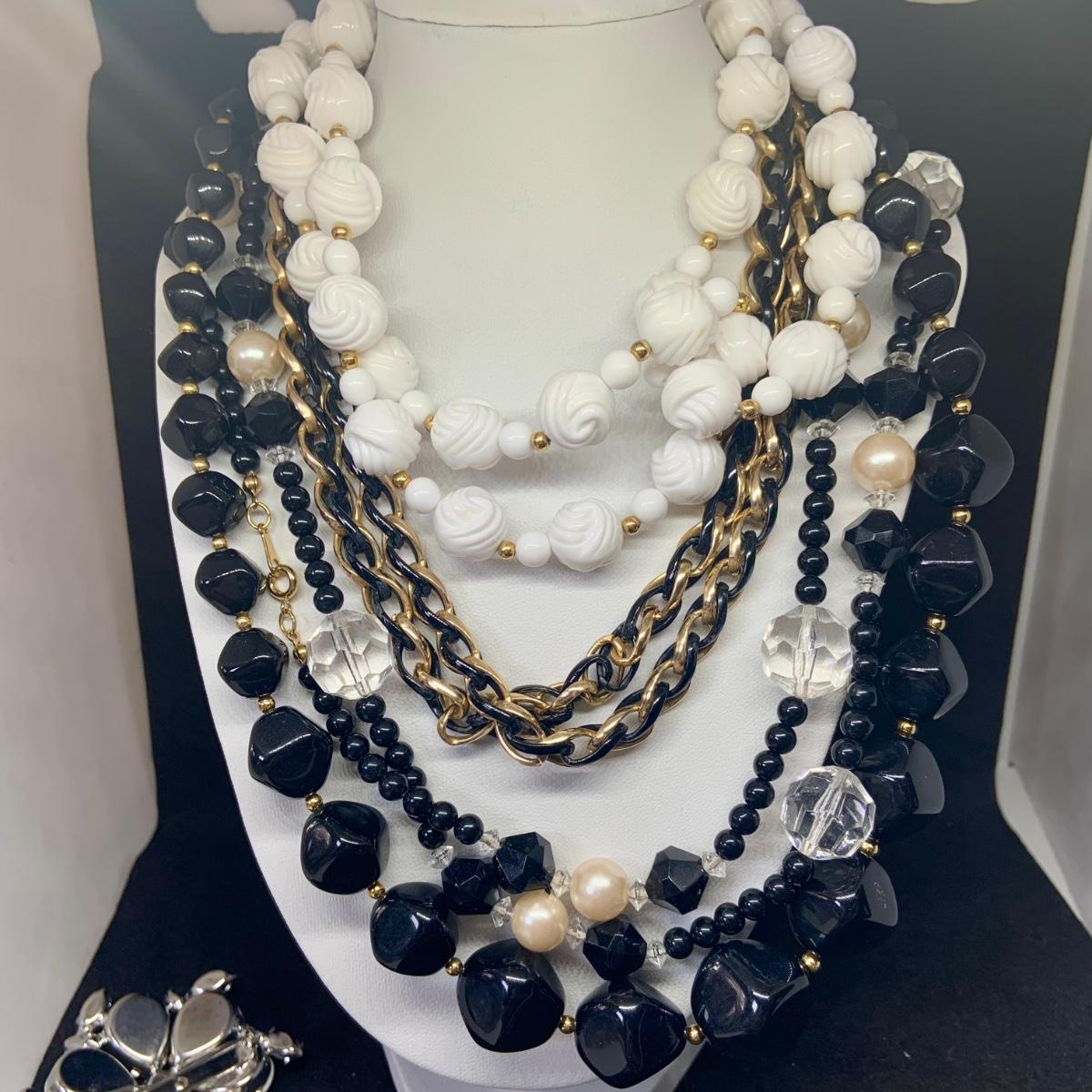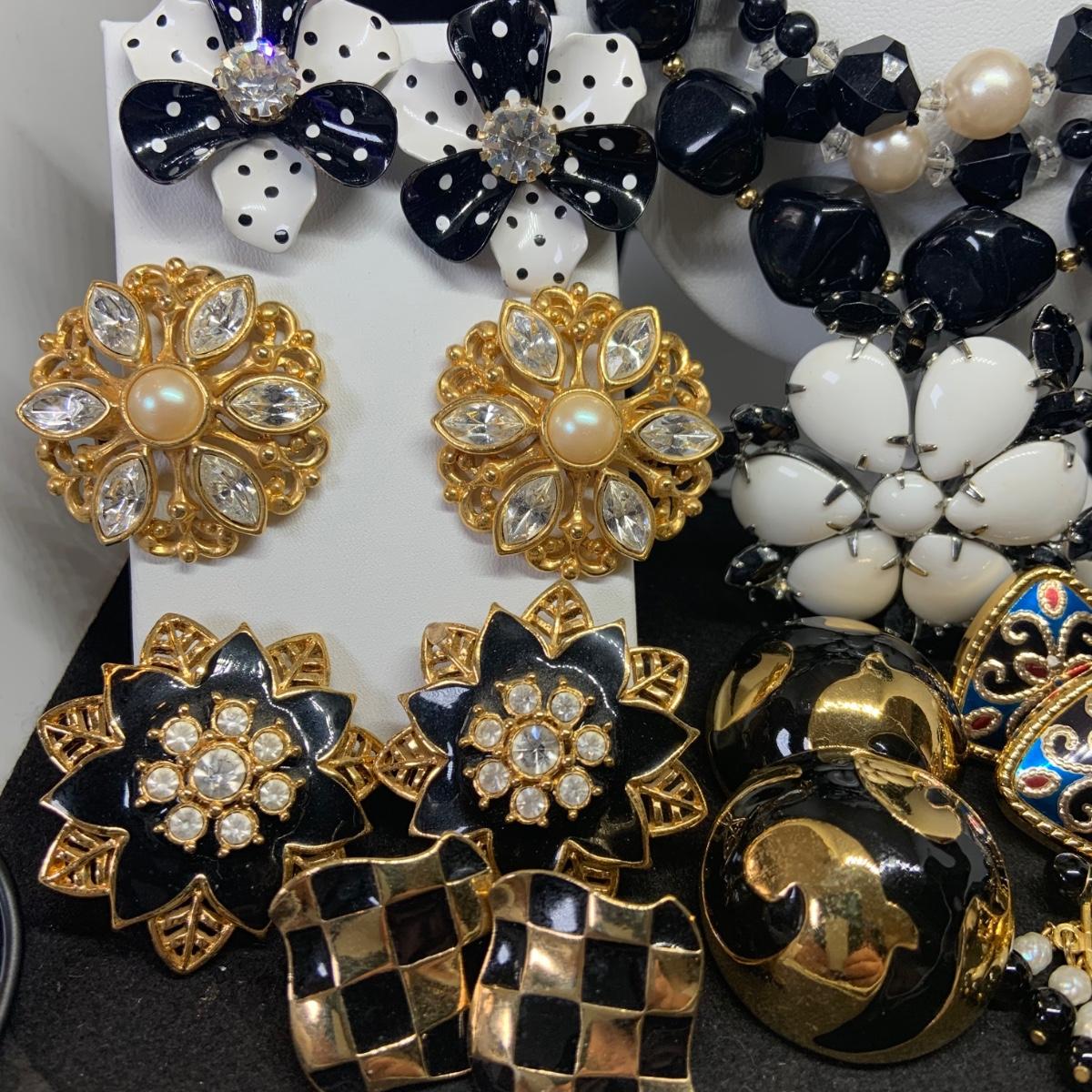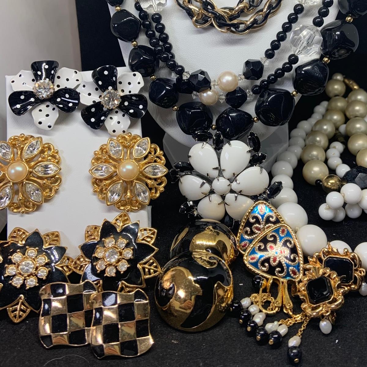 LOT:115: Vintage Black and Gold Fashon Jewelry - Clip-on Earrings, Pins and Necklaces