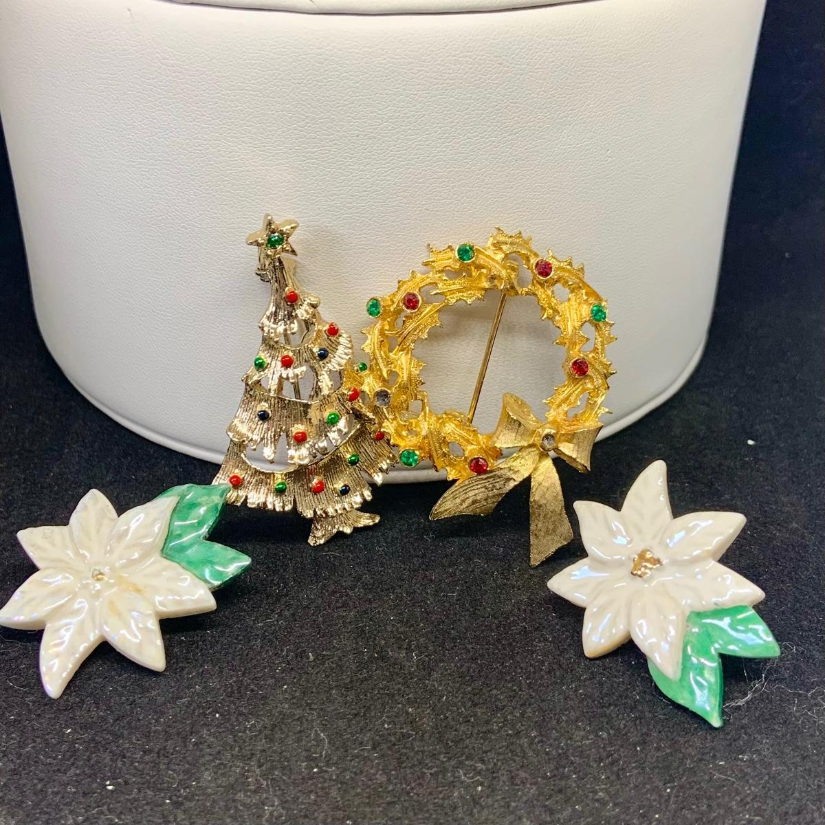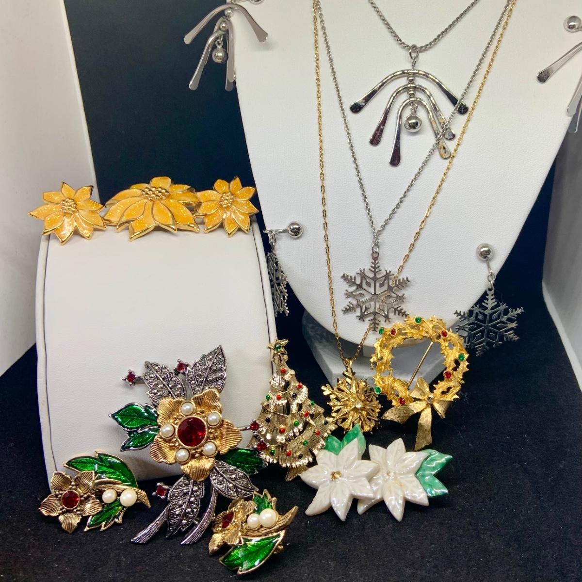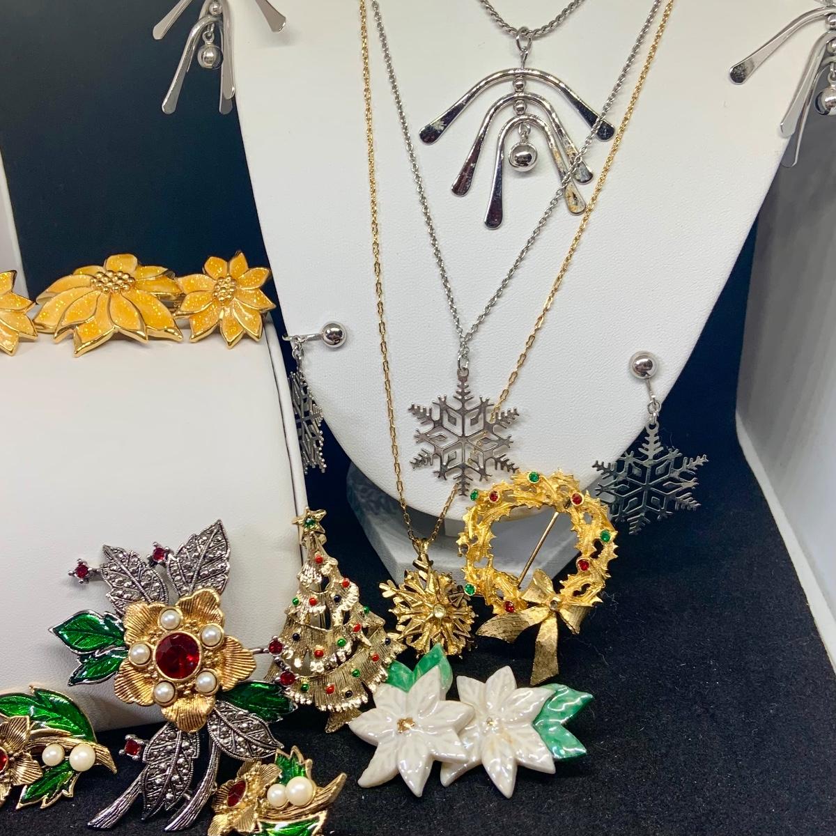 LOT:117: Assortment of Avon Holiday Jewerly Including Pins Clip-on Earrings Necklaces and More