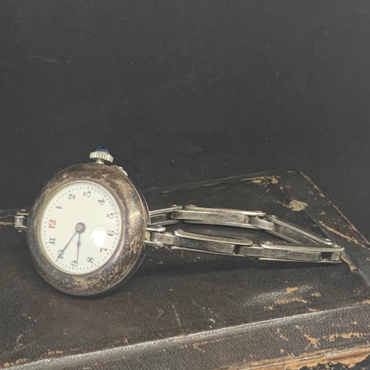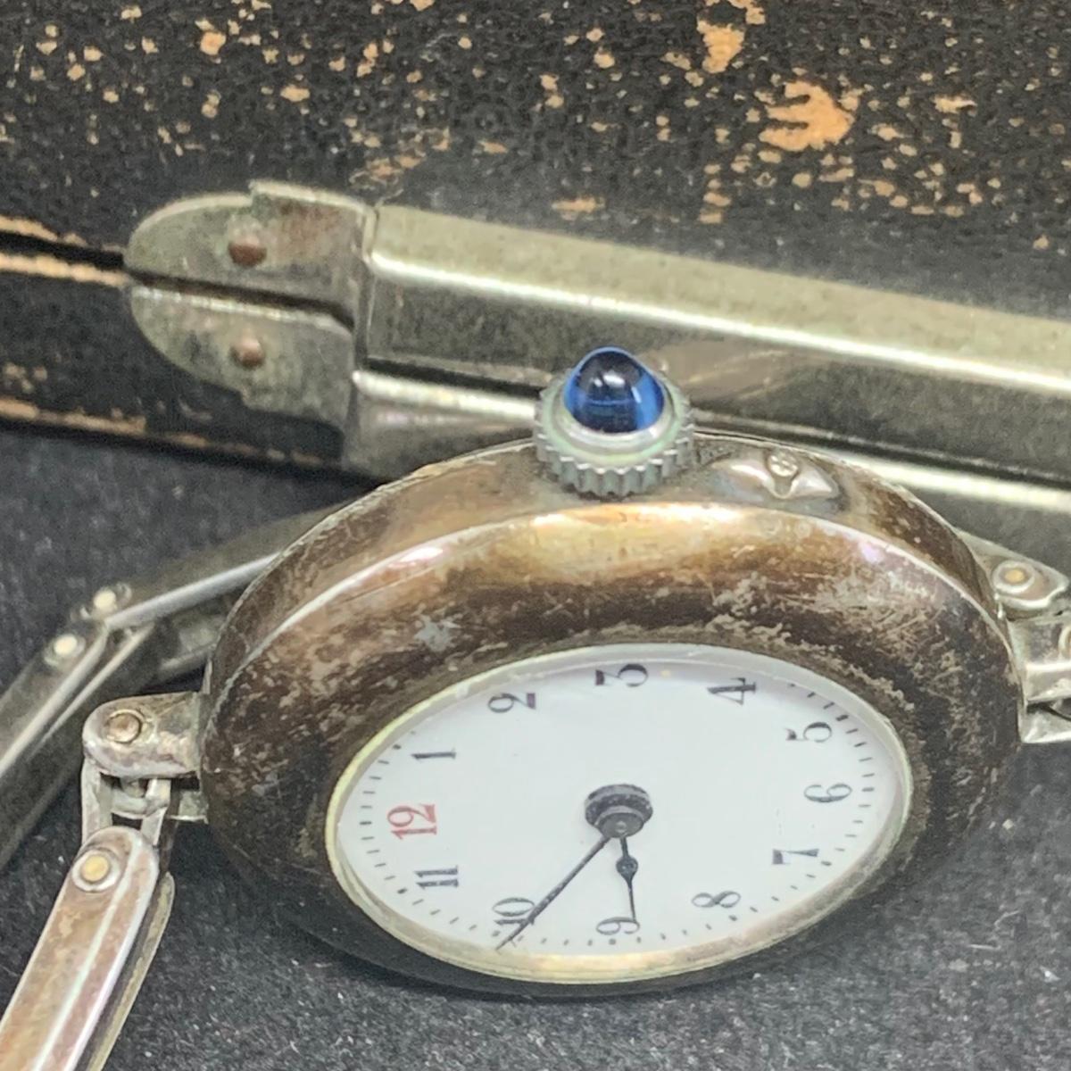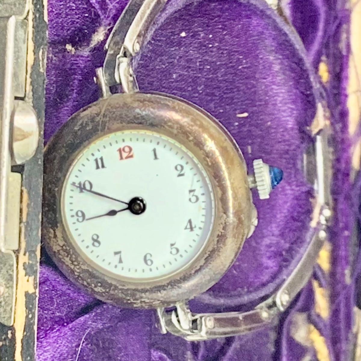 LOT 118: Antique 800 Silver Wristwatch in Antique Box - Works- Genuine Sapphire !