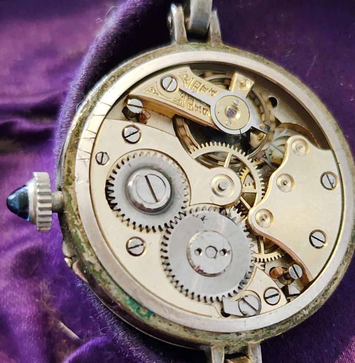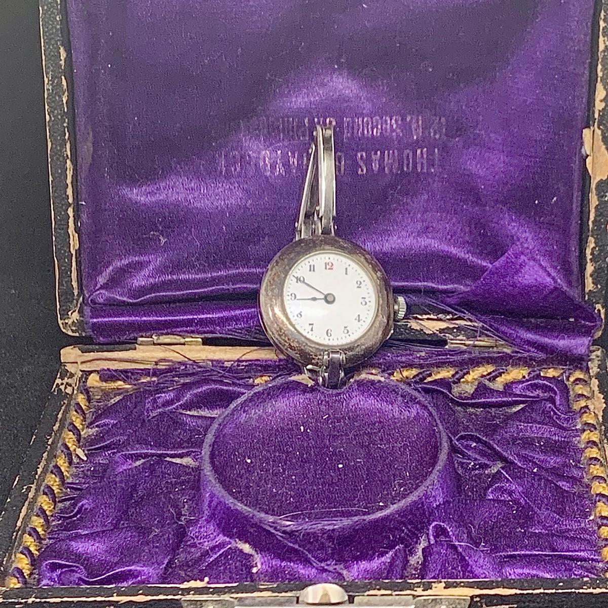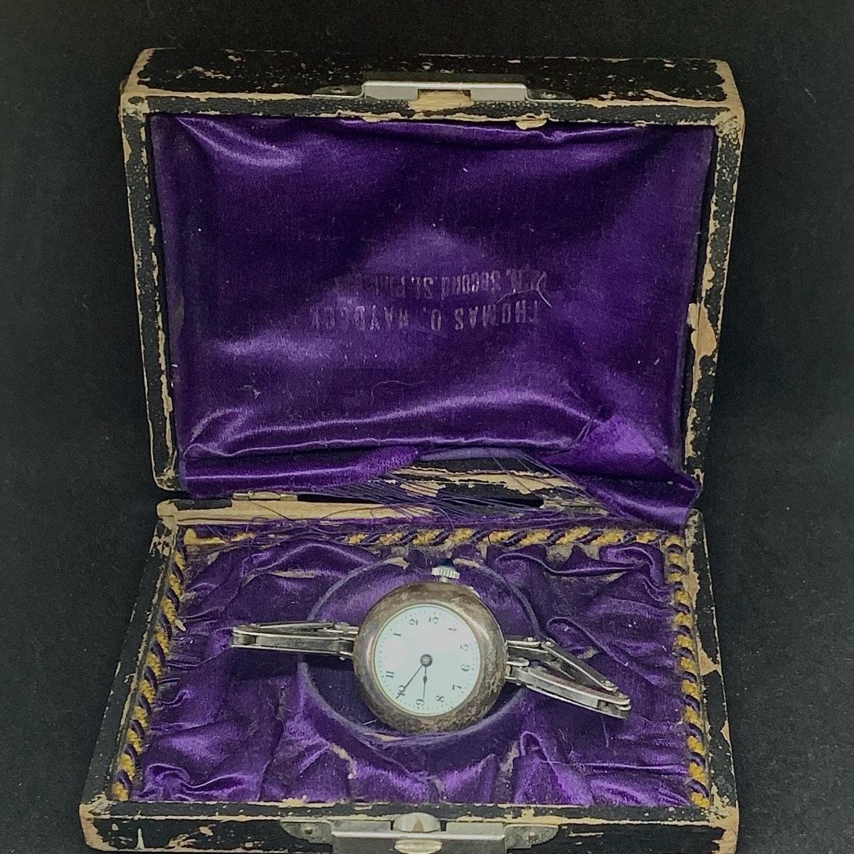 LOT 118: Antique 800 Silver Wristwatch in Antique Box - Works- Genuine Sapphire !