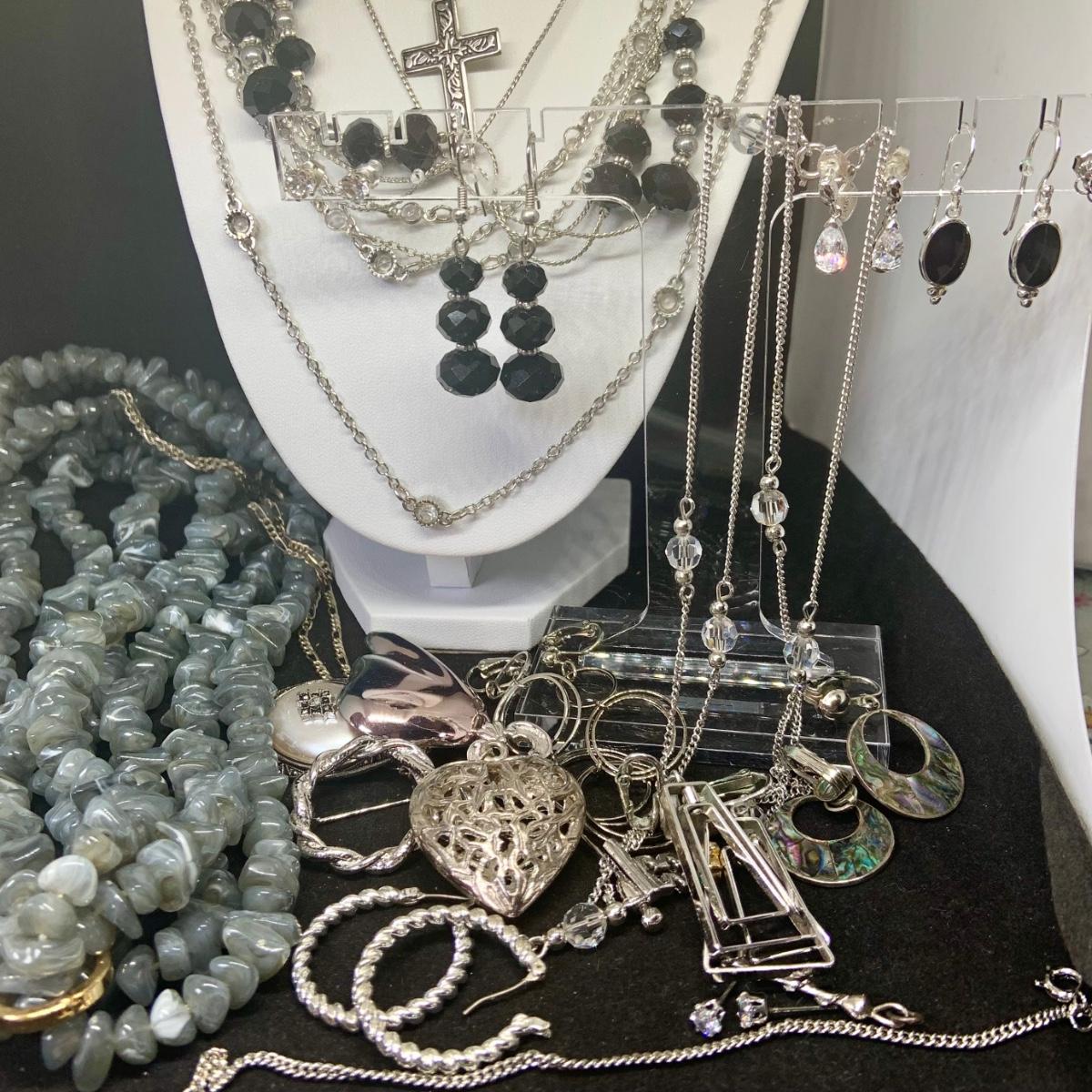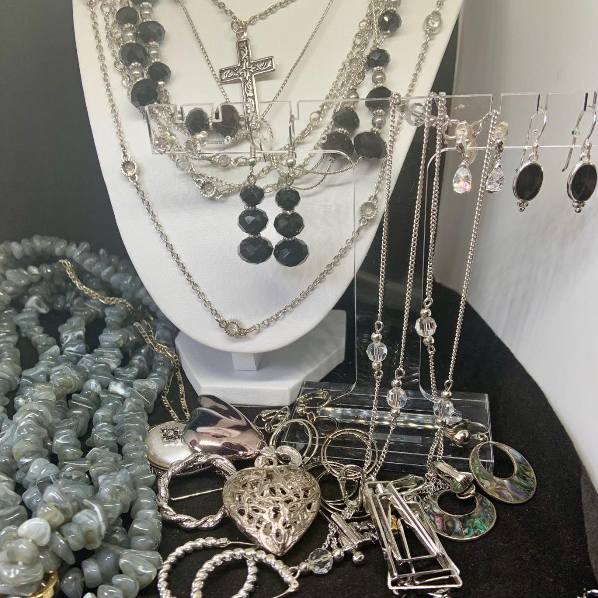 LOT:125: Black and Silver Fashon Jewelry Collection by Avon and More