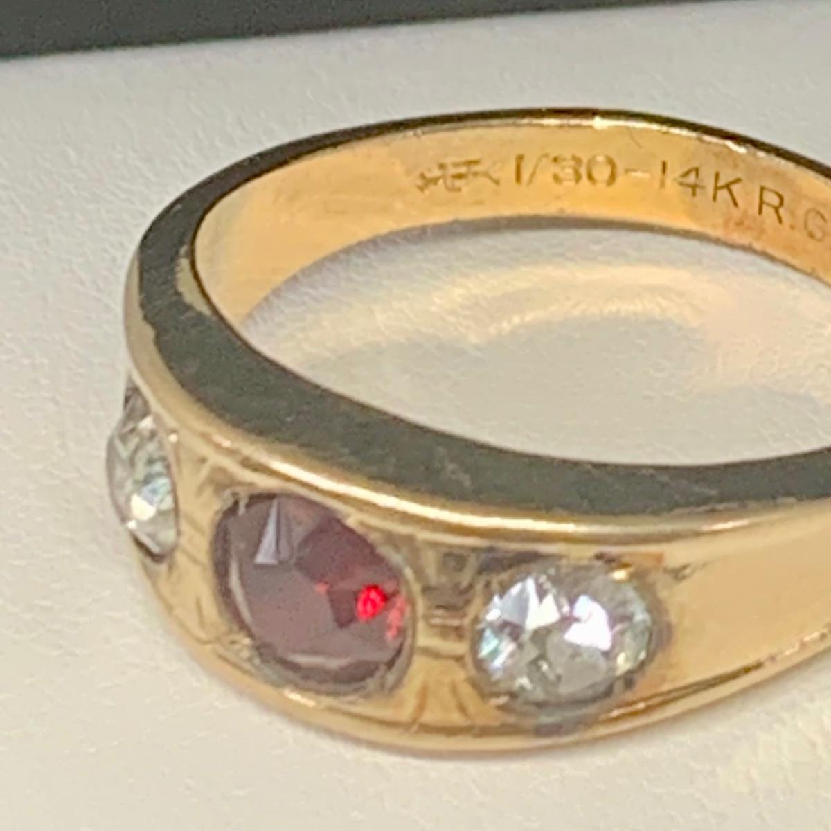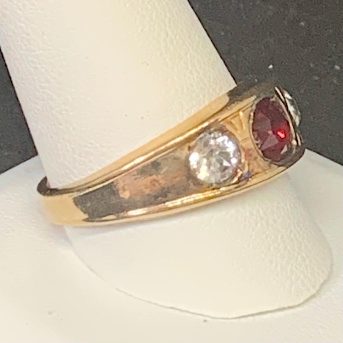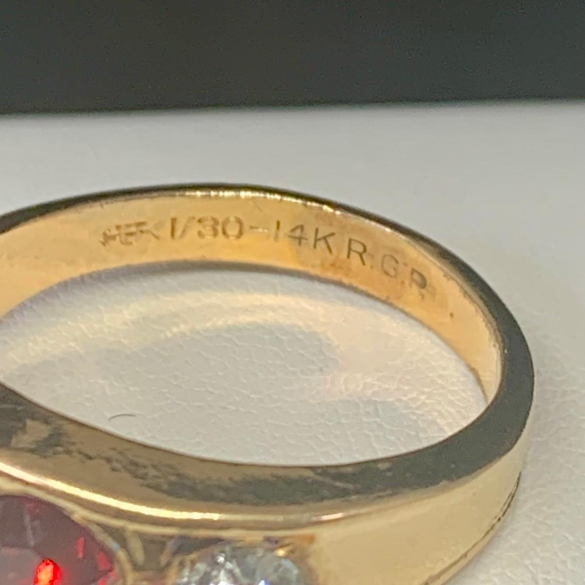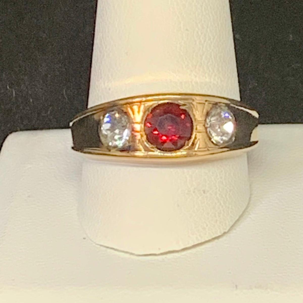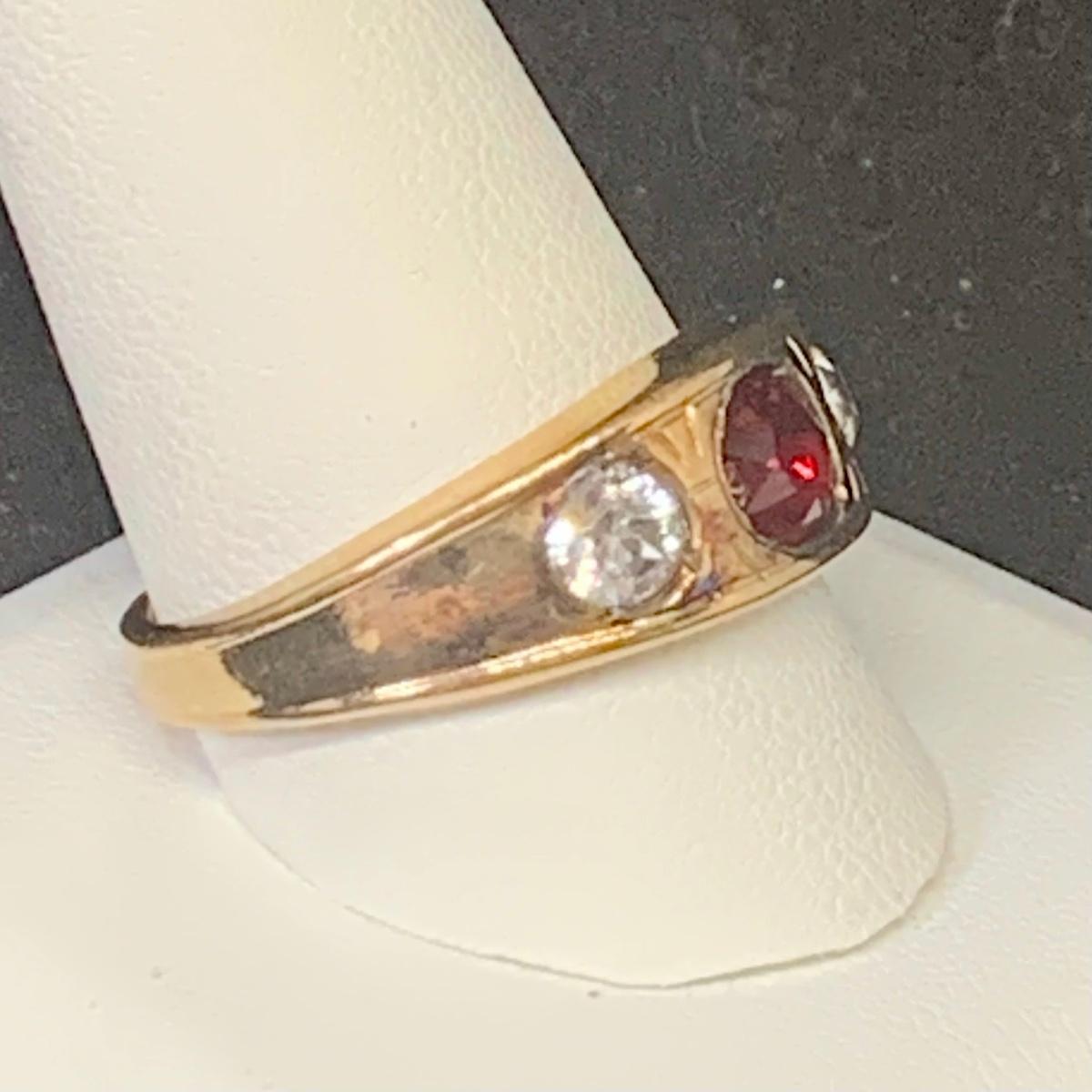 LOT 129: RGR Red and White Paste Stone Ring: 1/30-14k RGP : Size 12- 7.04g
