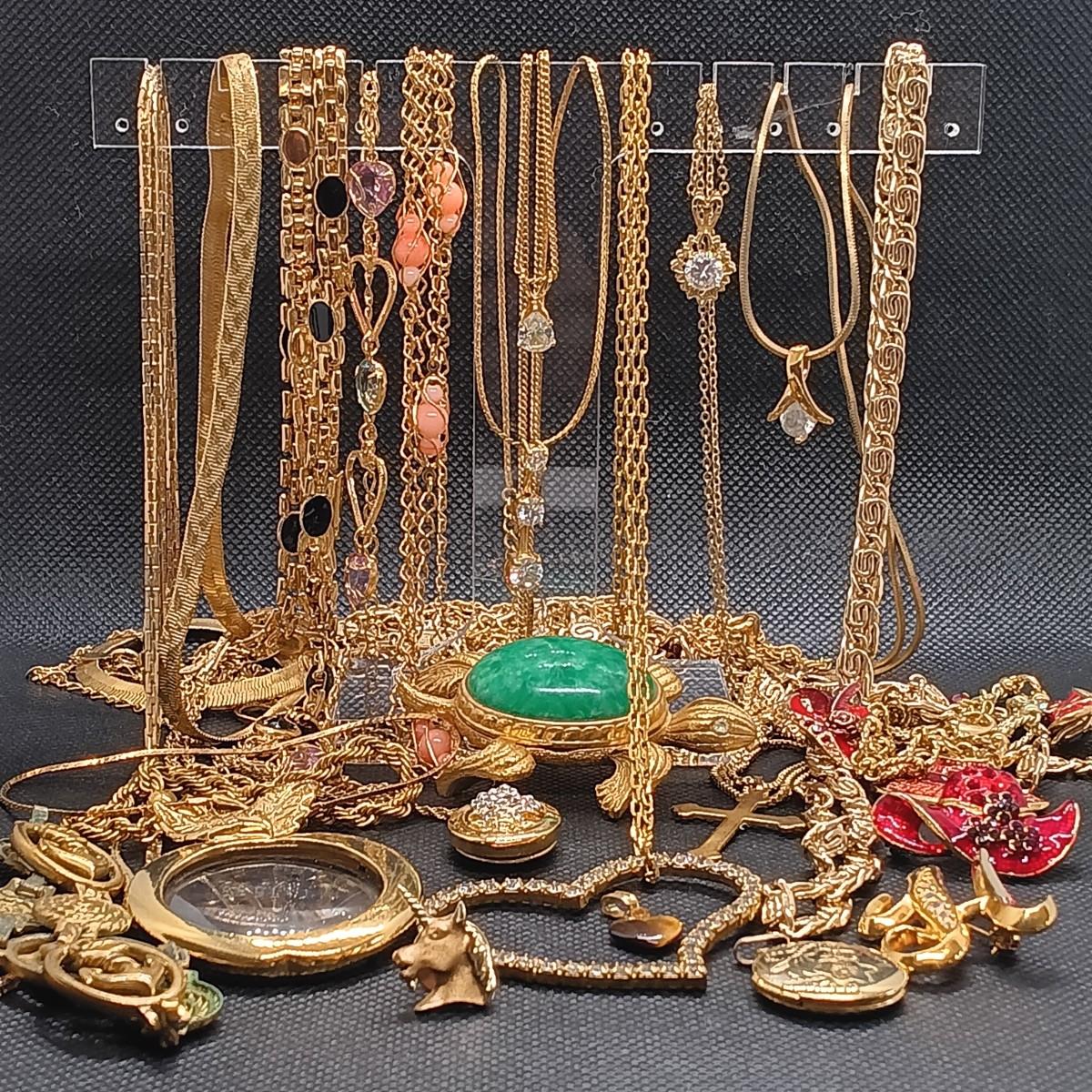 LOT 144: Vintage Lot of Gold-Tone Necklaces, Lockets, Bracelets & More