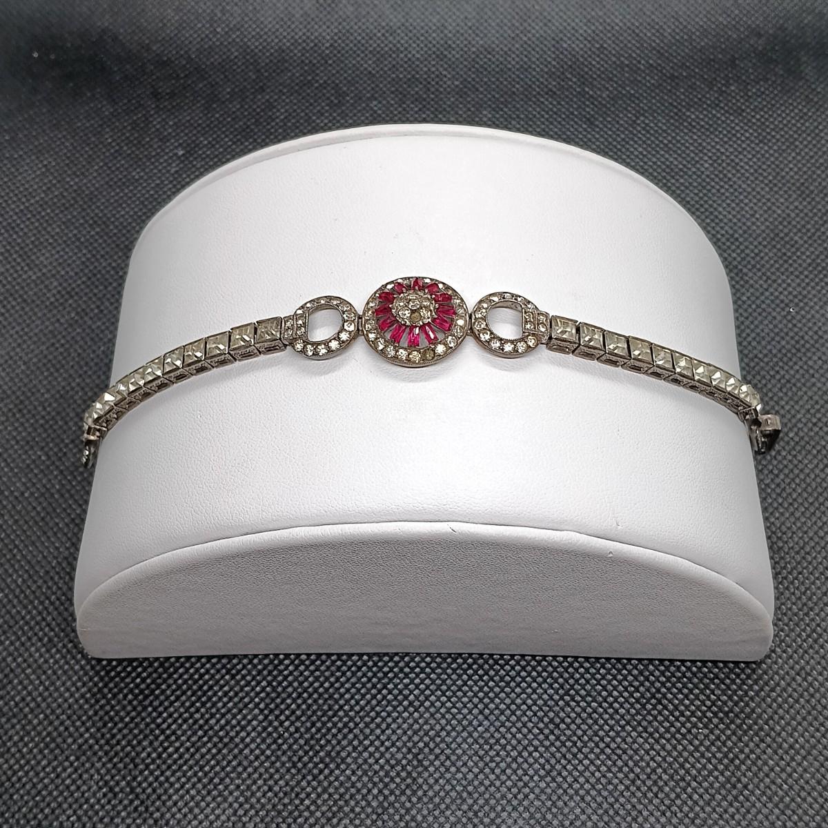 LOT 149: Vintage Otis Sterling Art Deco Paste Rhinestone Bracelet