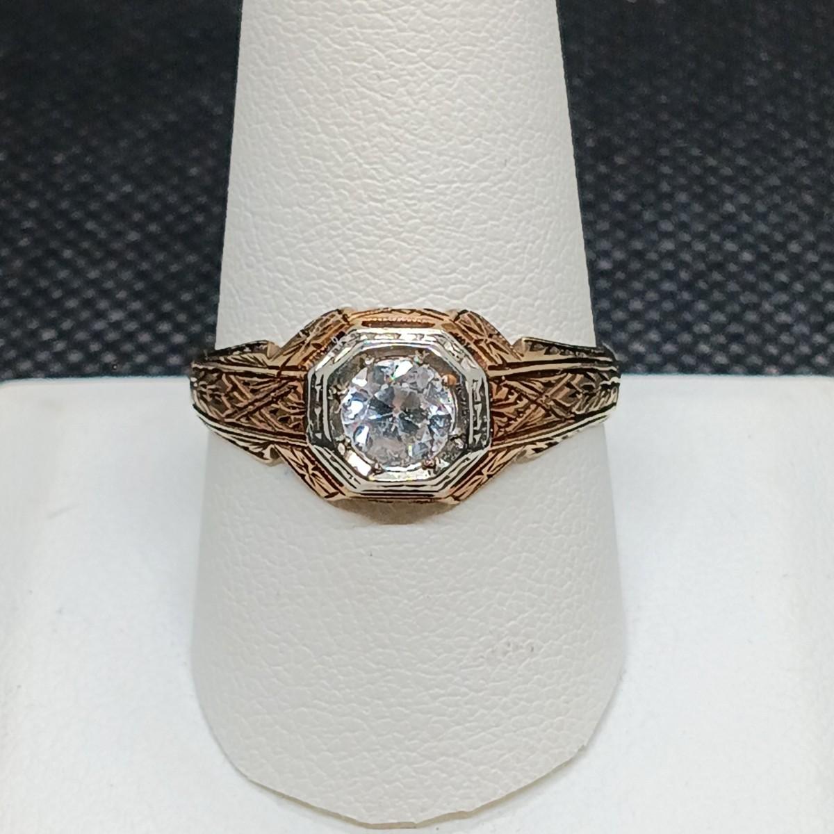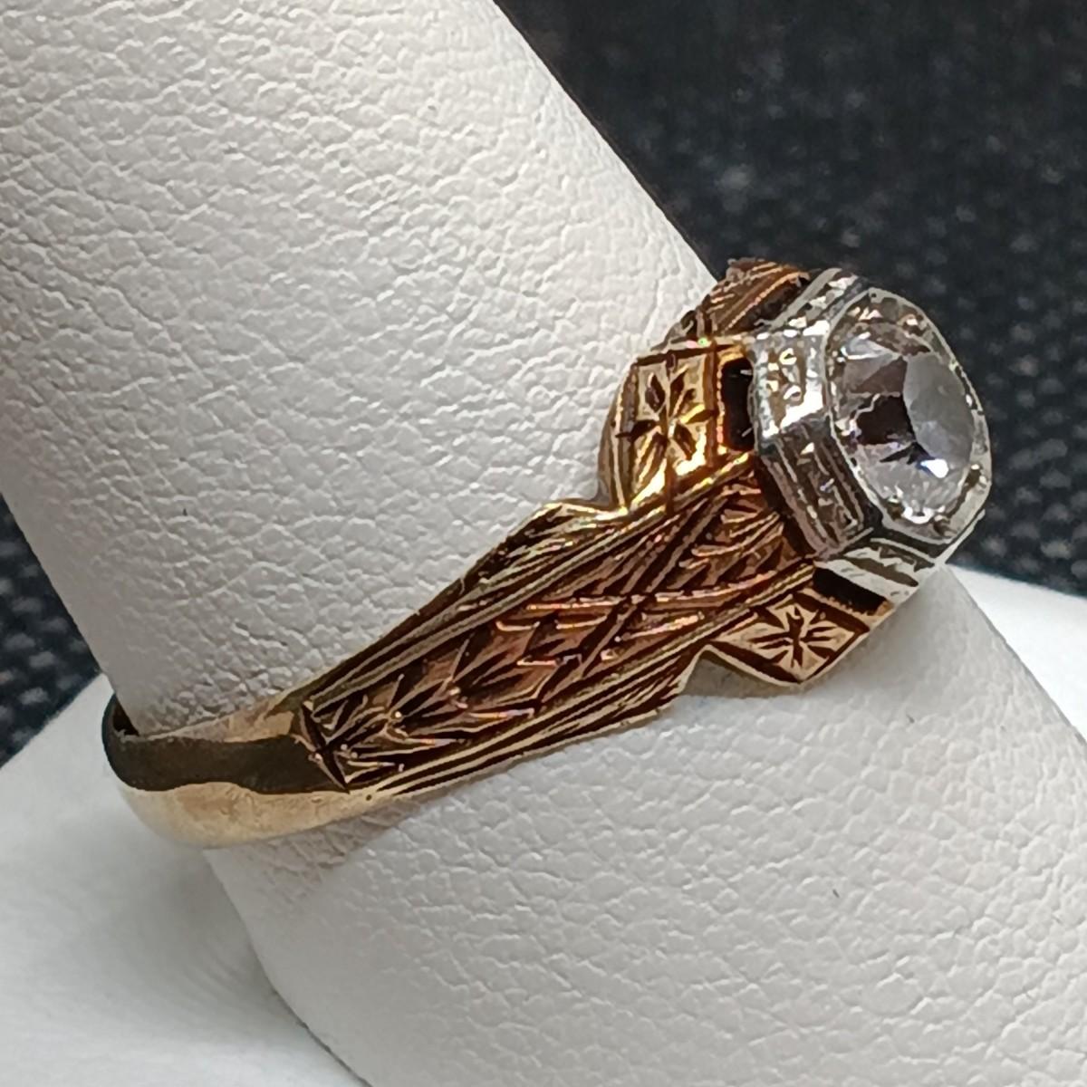 LOT 150: Antique 14k Diamond Ring: Sz 11: Tw 5g