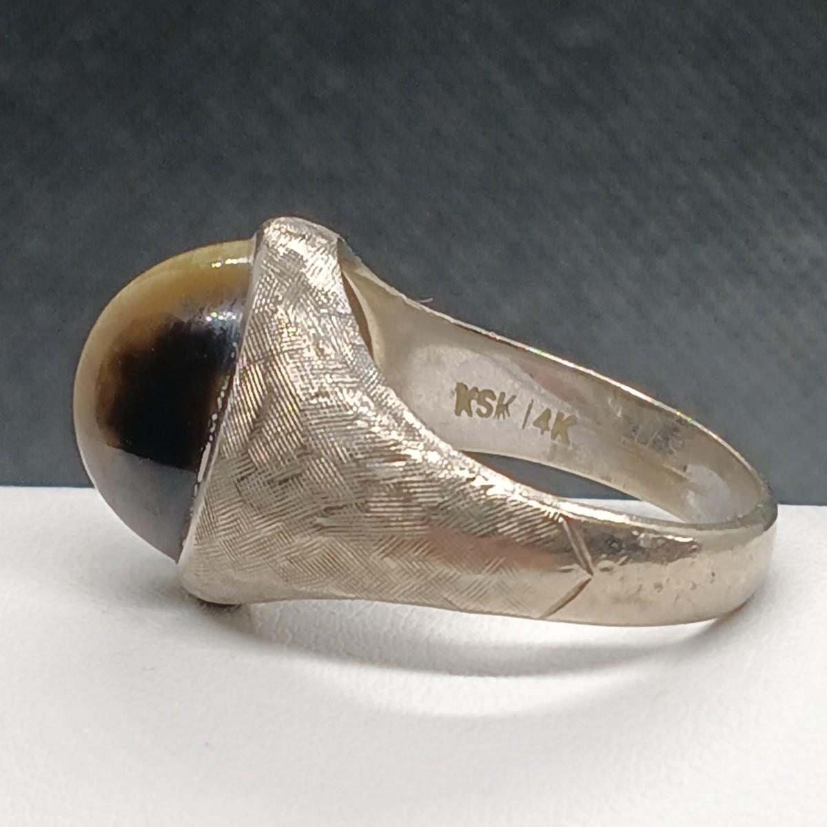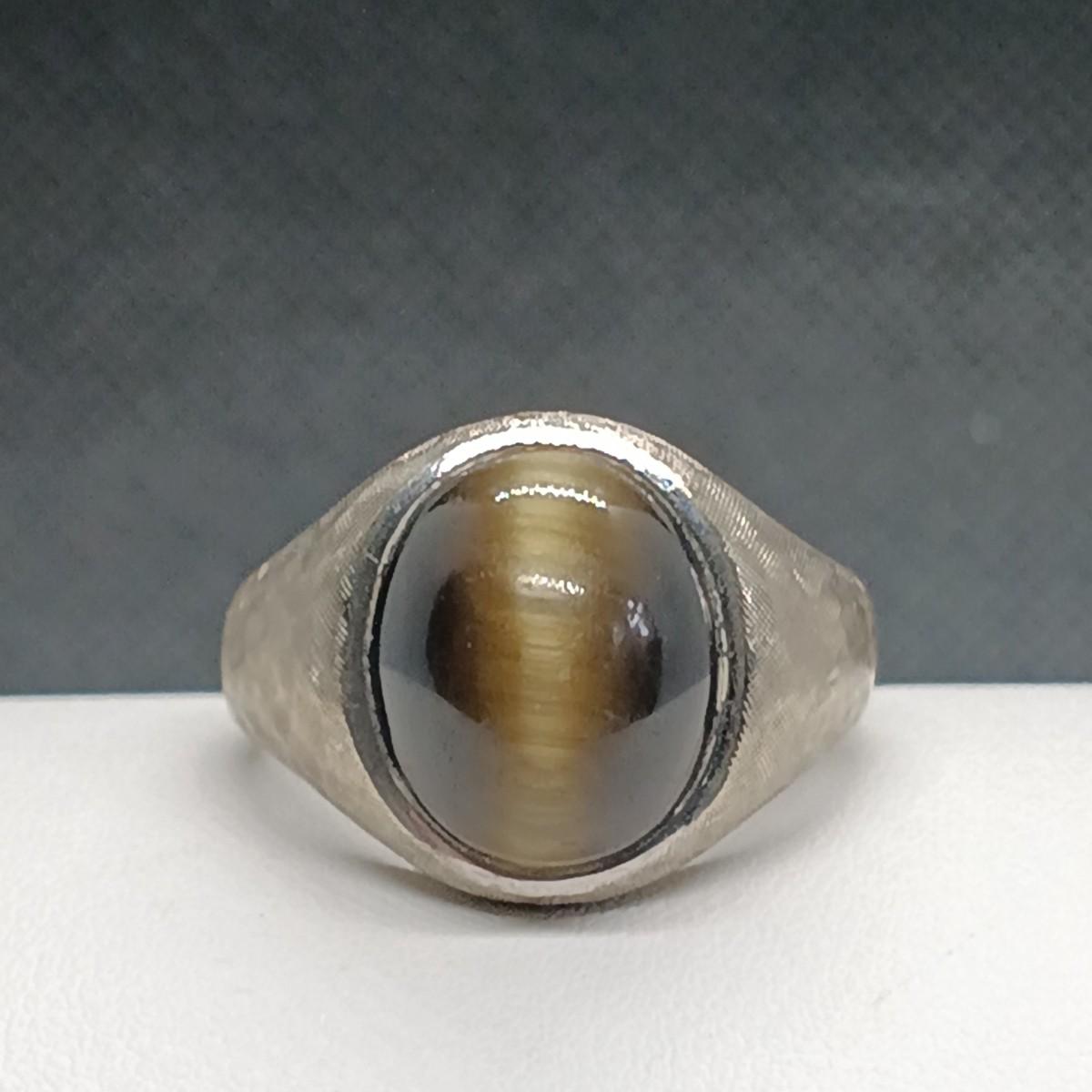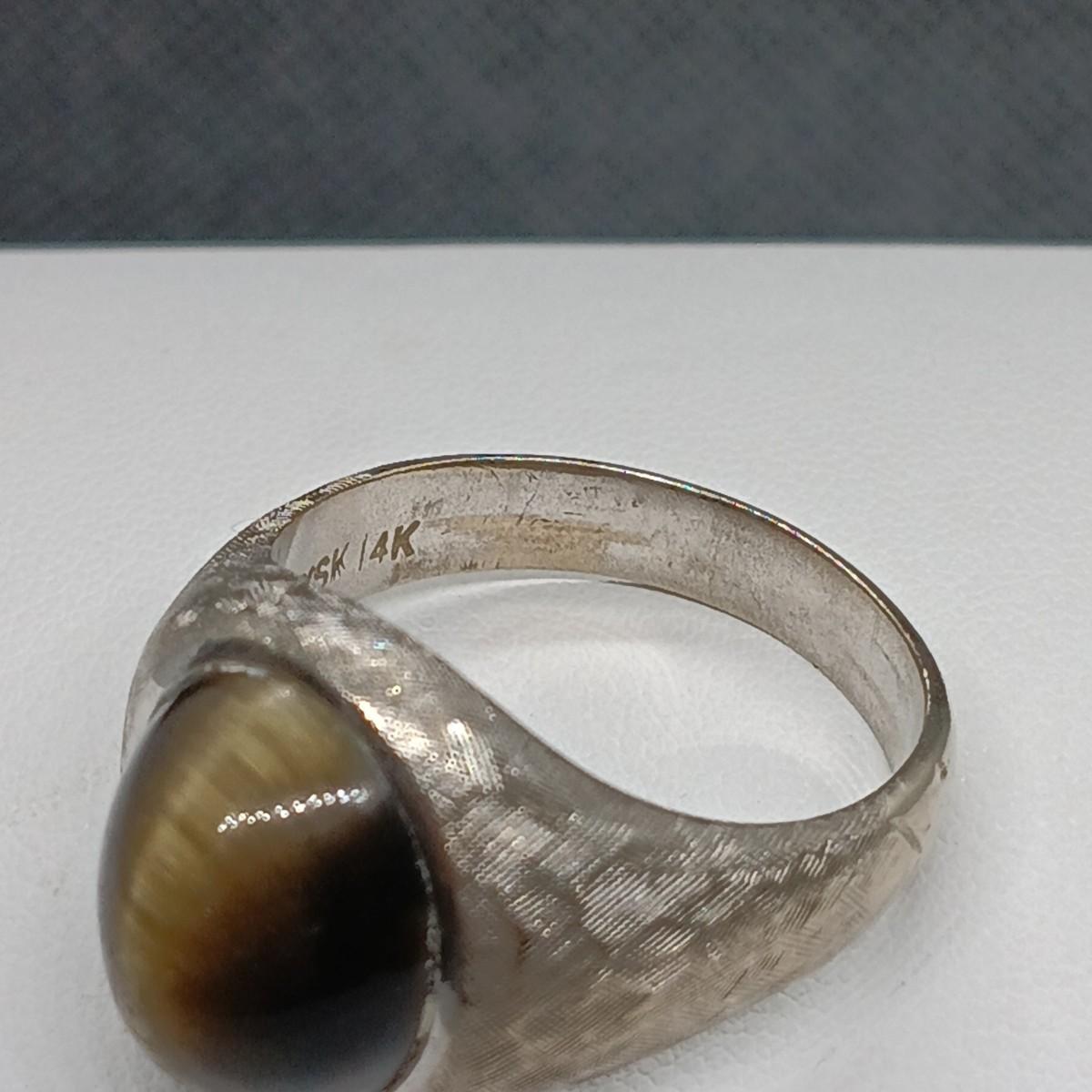 LOT 152: KSK 14K White Gold Tigerseye Ring Sz 9.5 8.8gtw