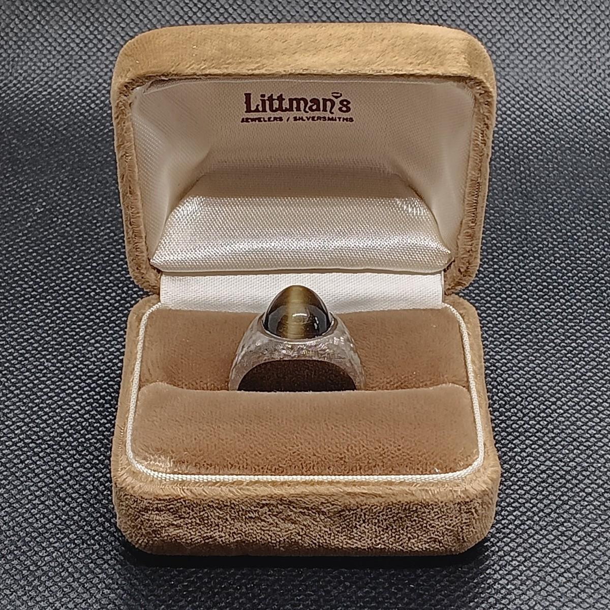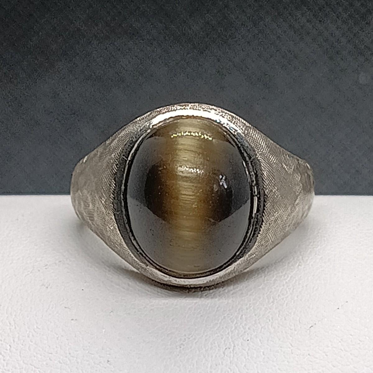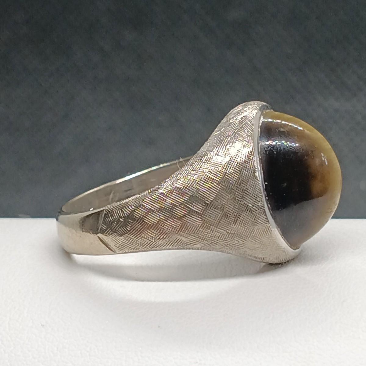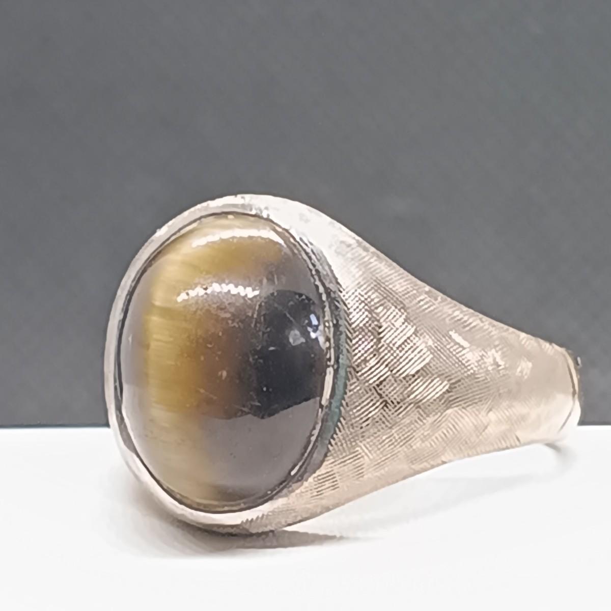 LOT 152: KSK 14K White Gold Tigerseye Ring Sz 9.5 8.8gtw