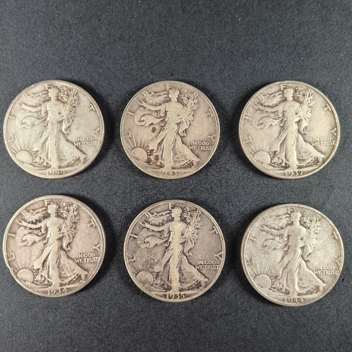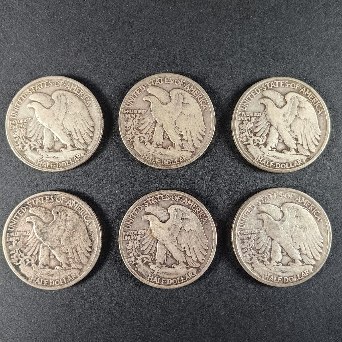 LOT 155: Set of (6) Liberty Walker Half-Dollar Coins