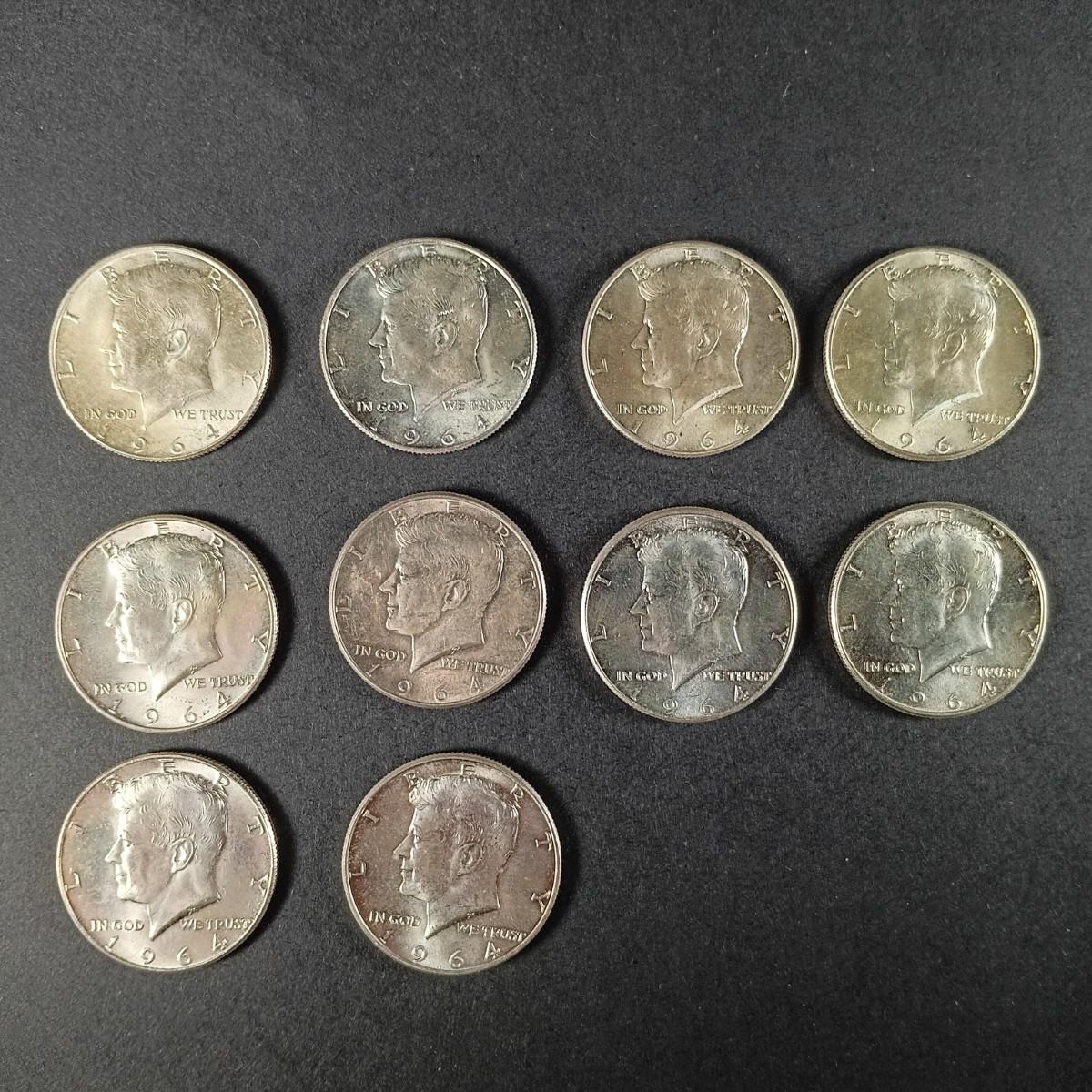 LOT 156: Set of (10) 1964 Kennedy Half-Dollar Coins