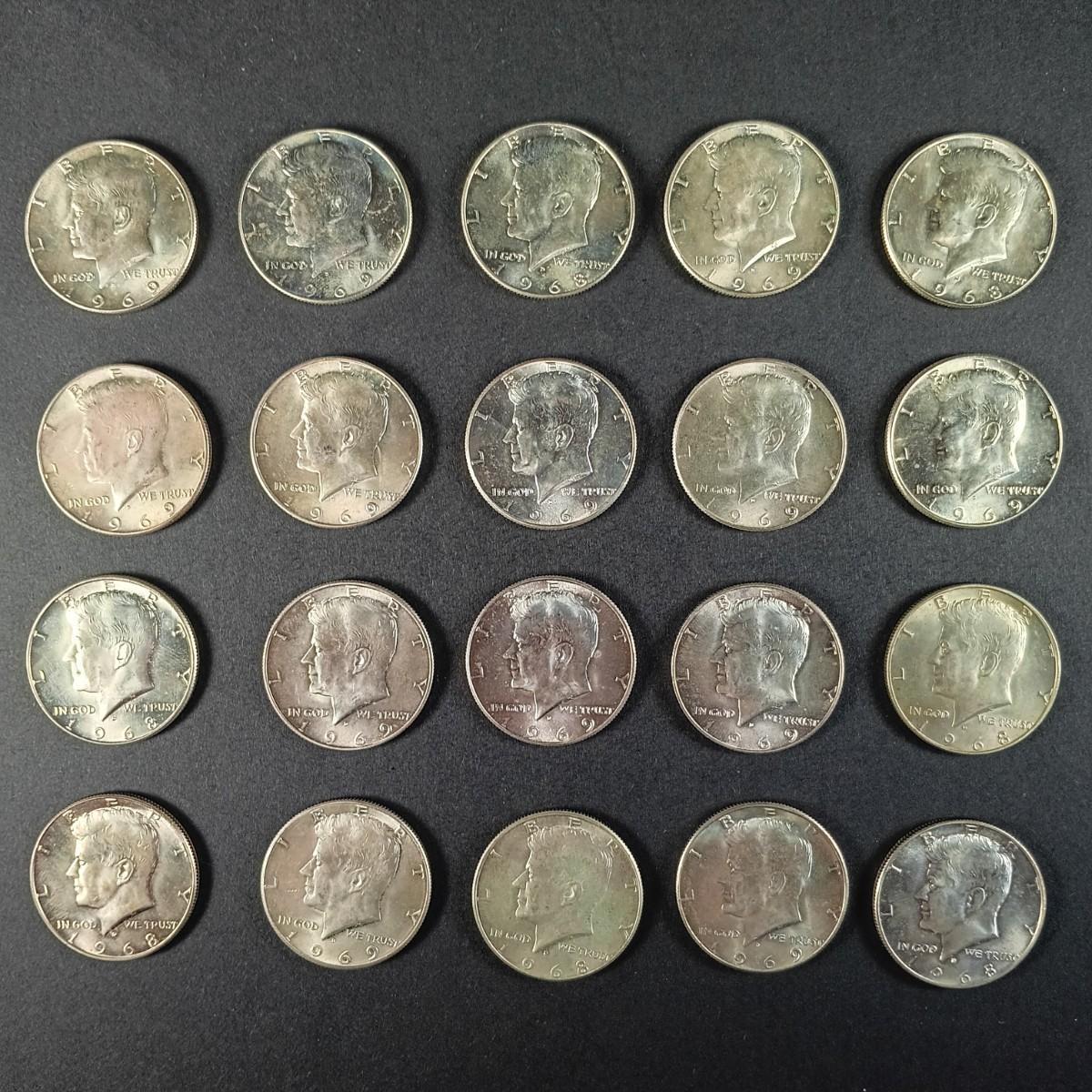 LOT 160: Set of (20) 1968-1969 Kennedy Half-Dollar Coins