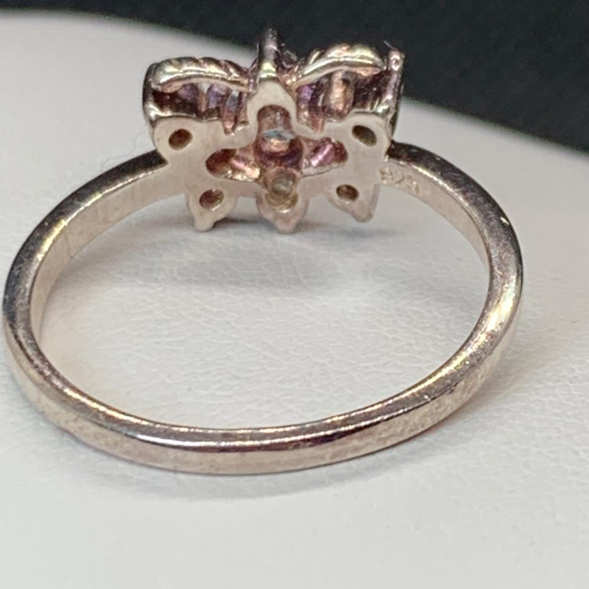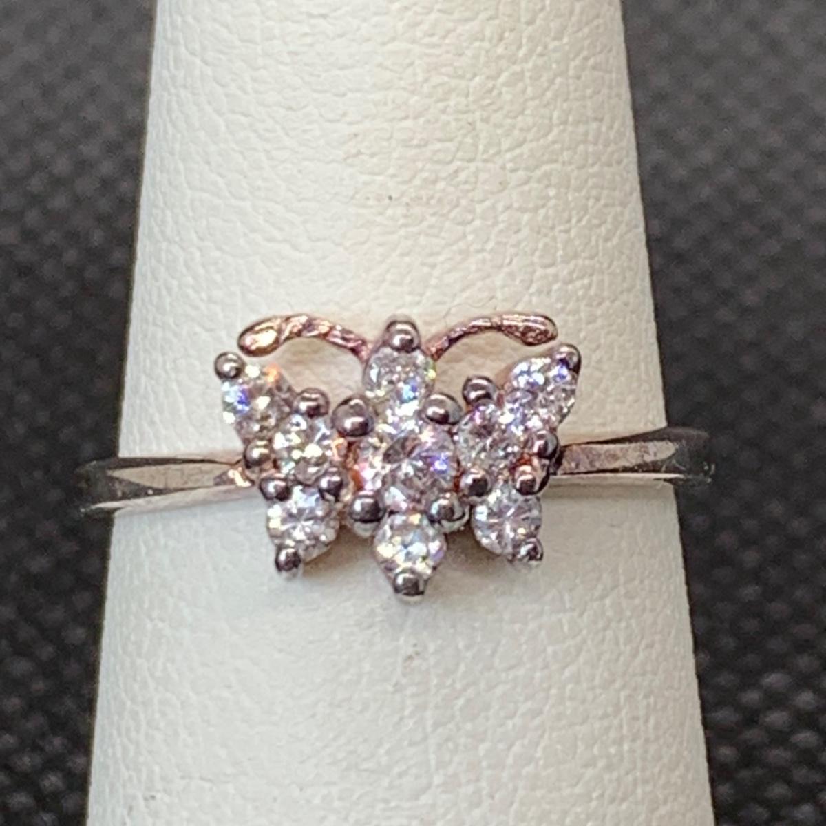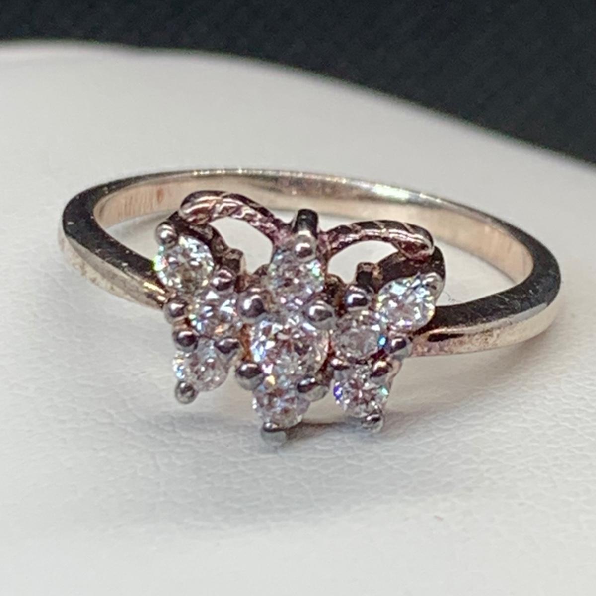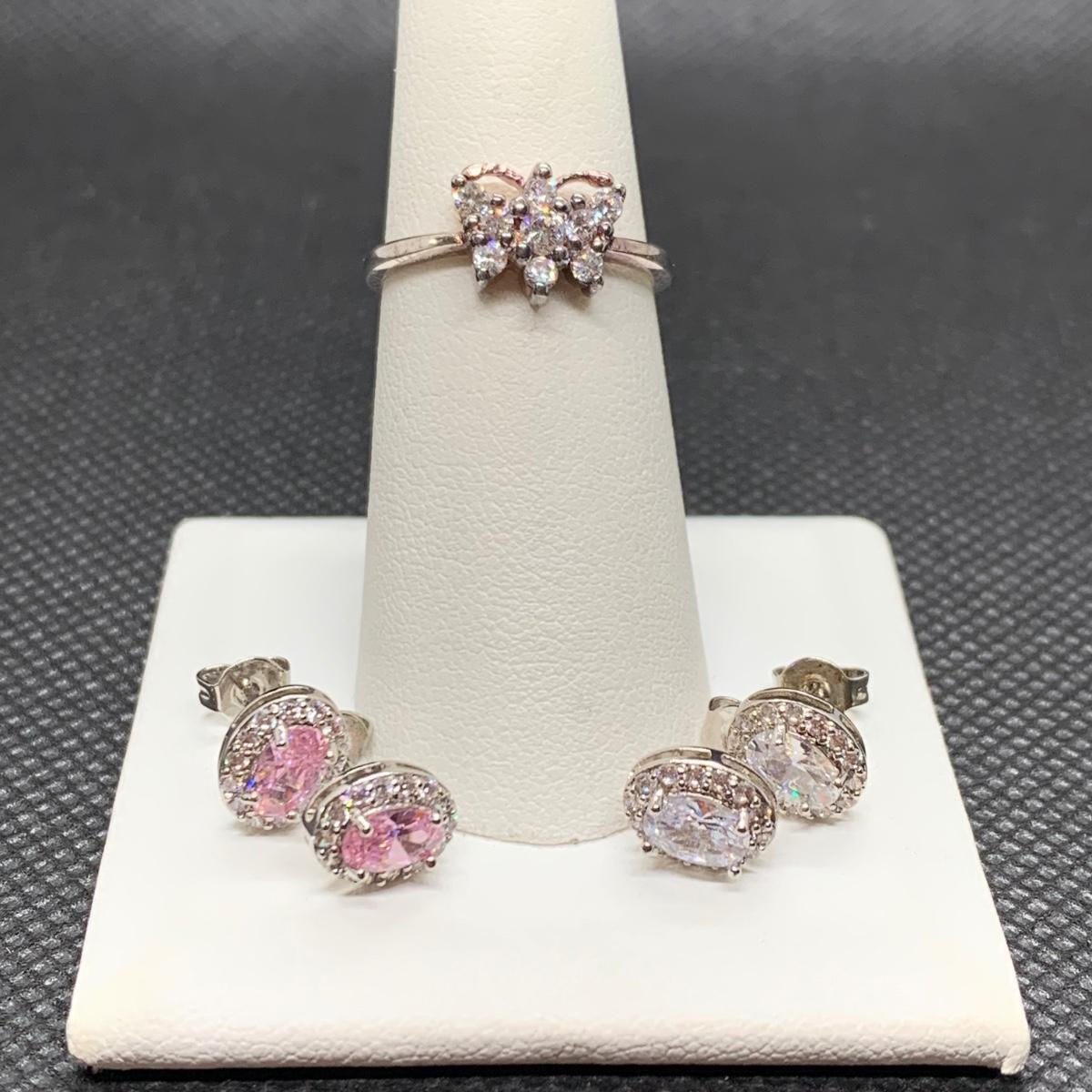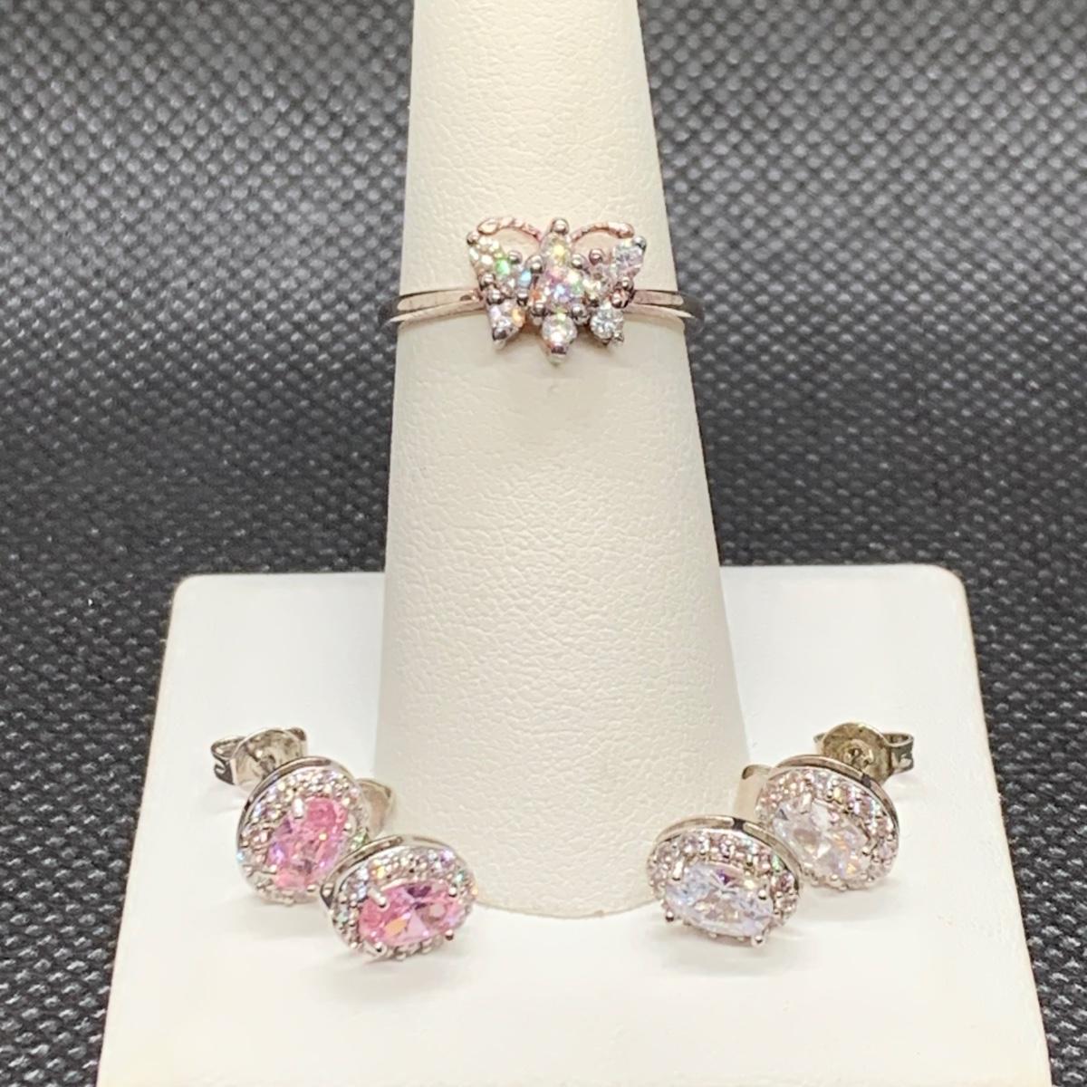 LOT 165: CZ Sterling Silver (925) Butterfly Ring: Sz 7, Simulated Gemstone Pierced Earrings by DBJ. Sz7