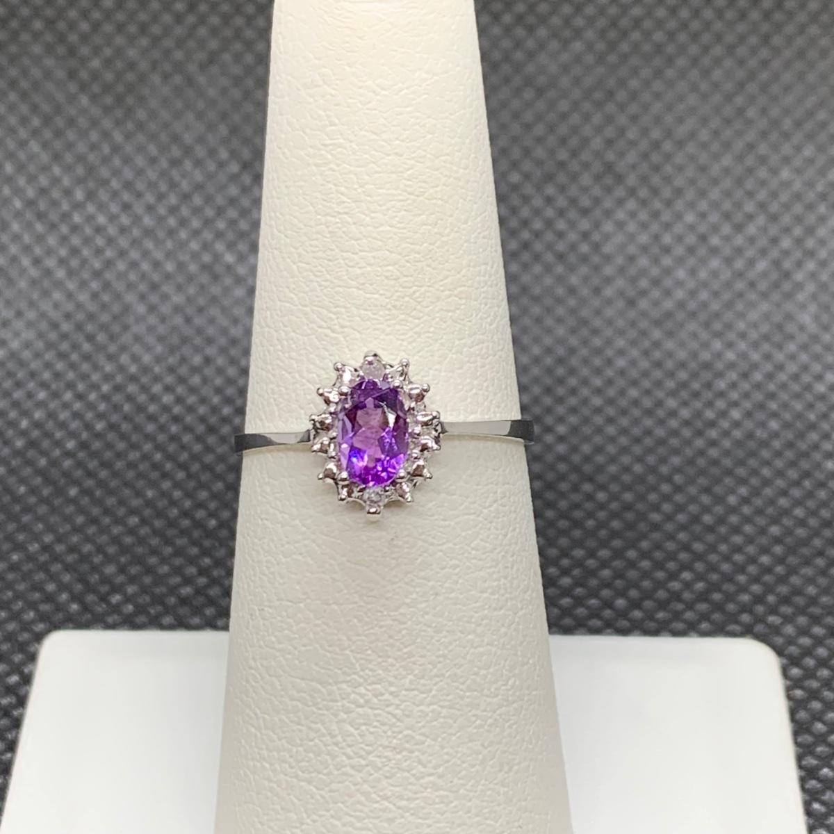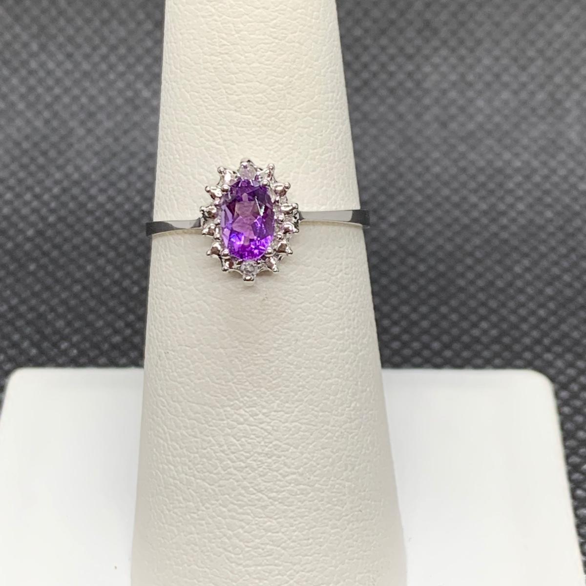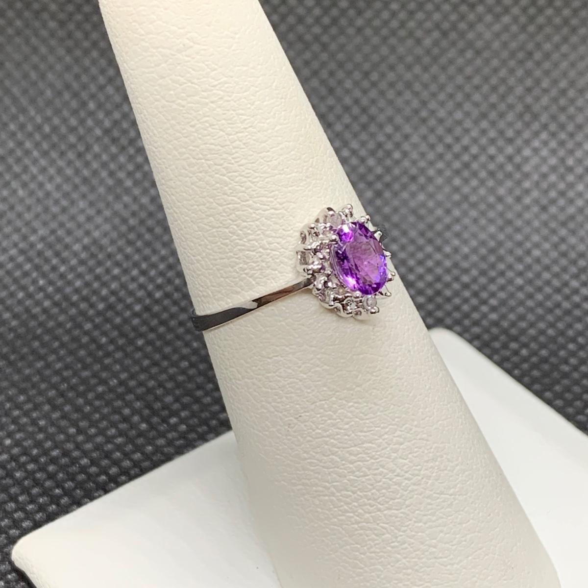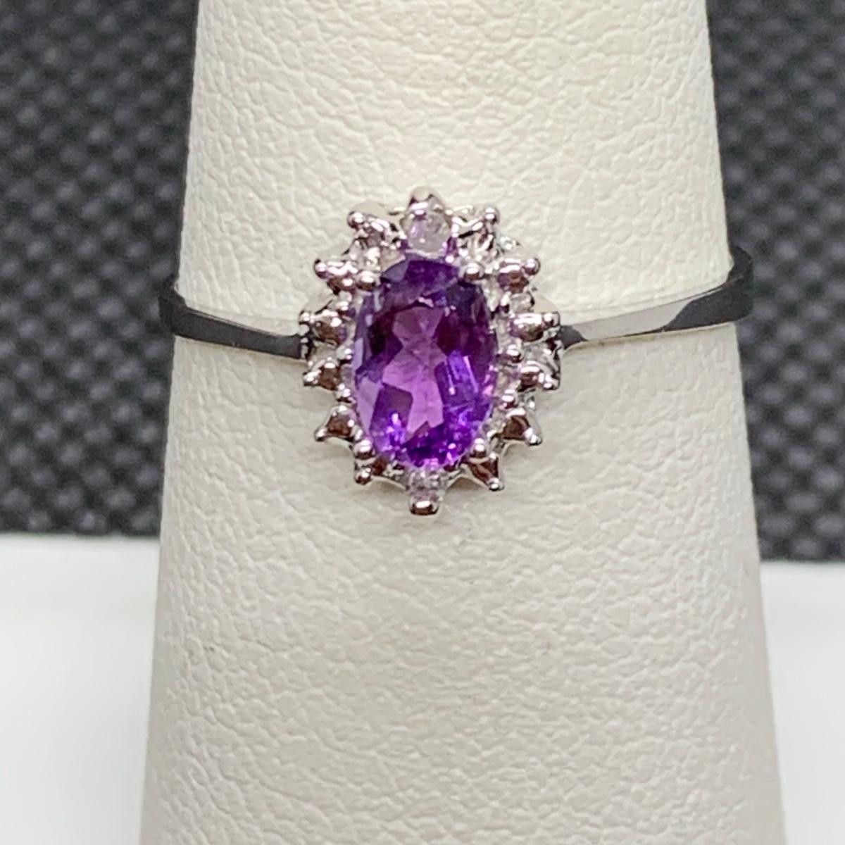 LOT 167: JOL 10K Oval Amethyst w/Diamond Accent Ring: Sz. 7, Tw 1.2g