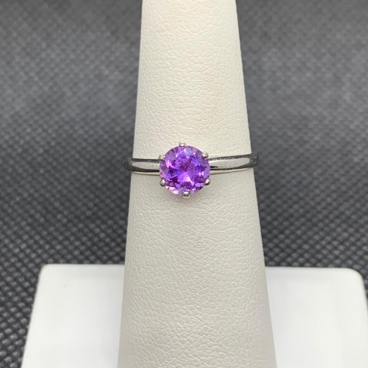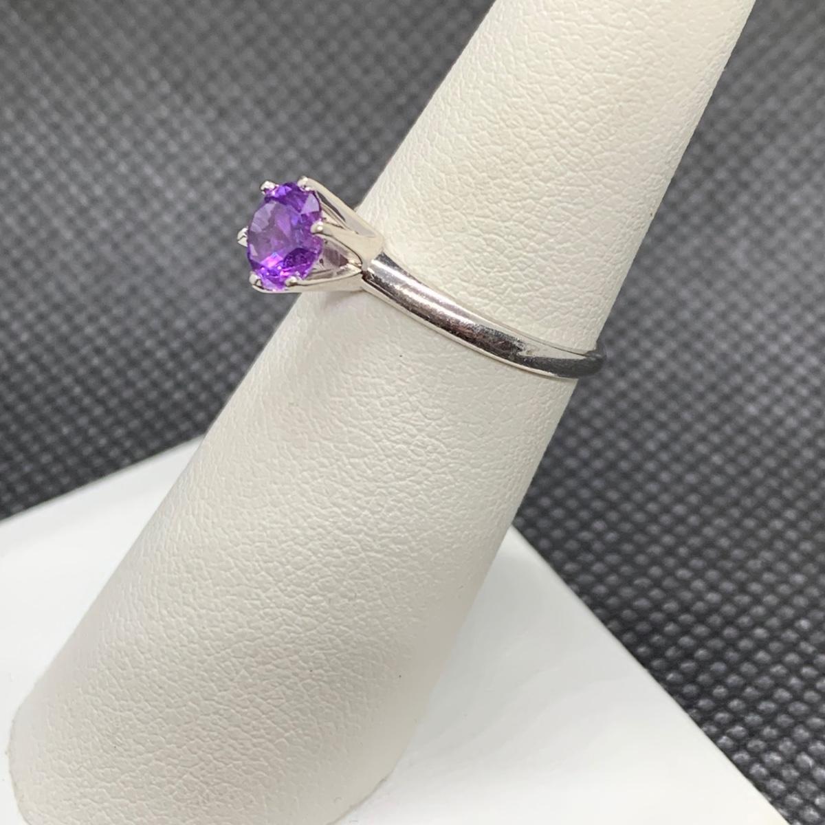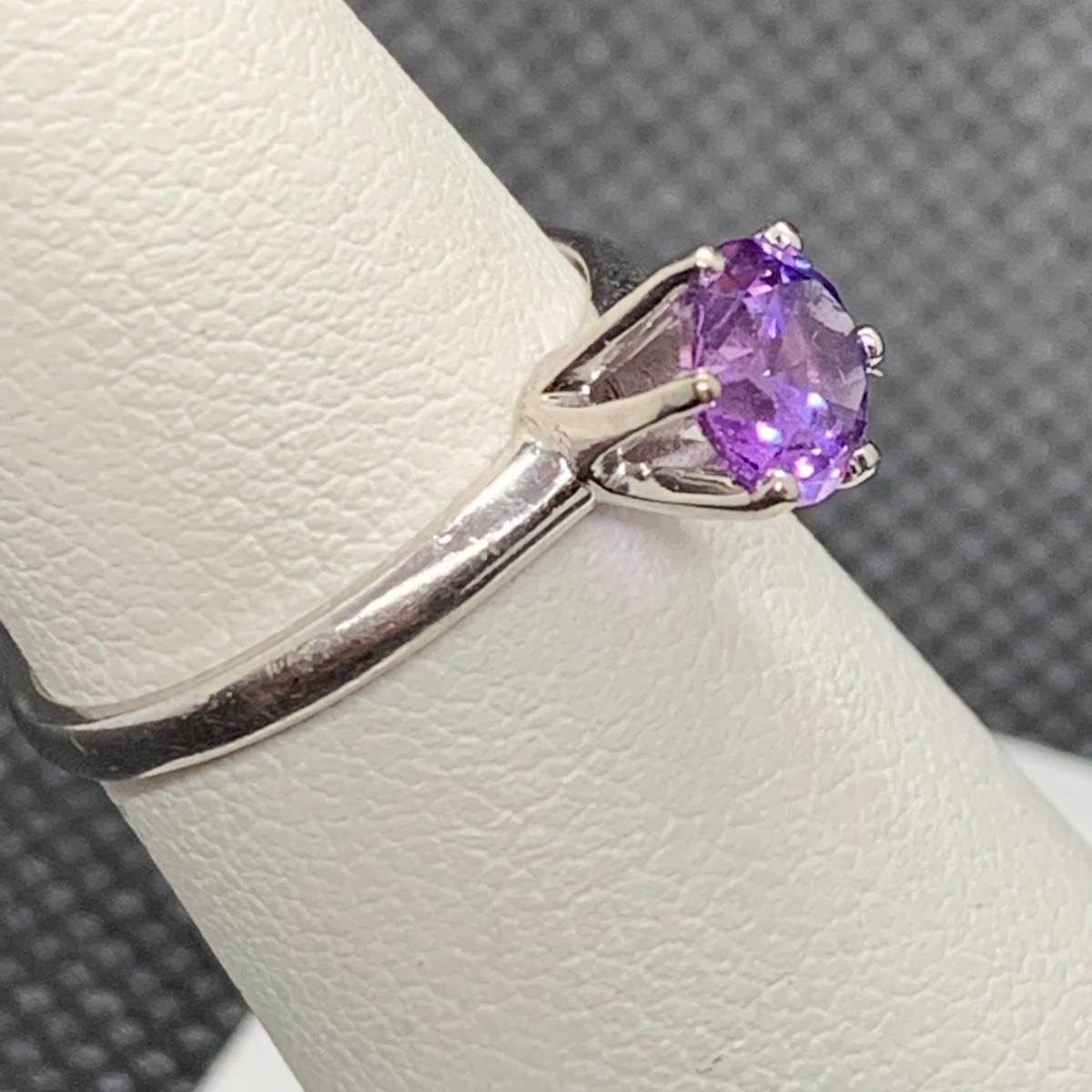 LOT 172: Amethyst Solitaire Set in 10k White Gold, Tw 1.7g, Sz 6