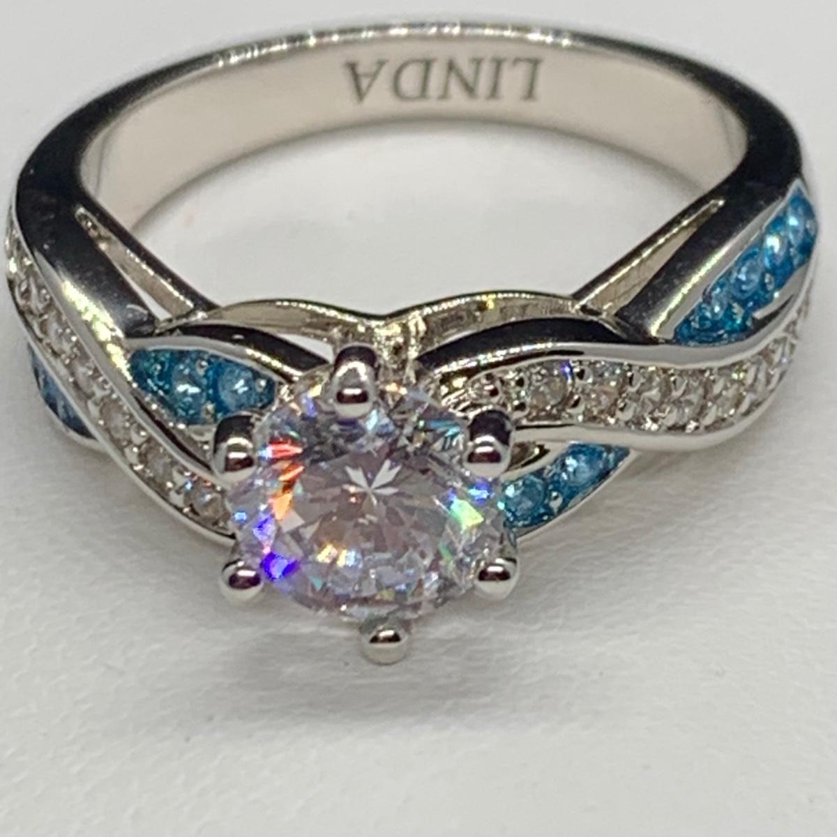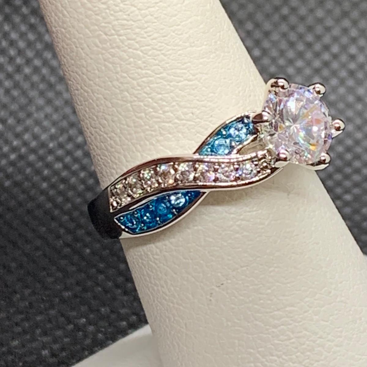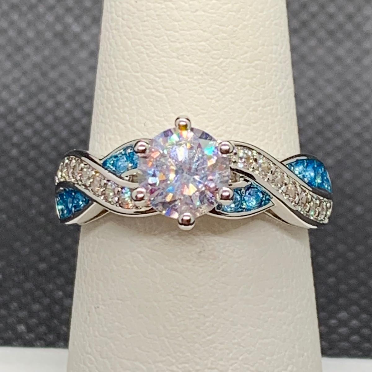 LOT 179: Danbury Mint 1 Carat Simulated Diamond Birthstone Ring, Sz 5
