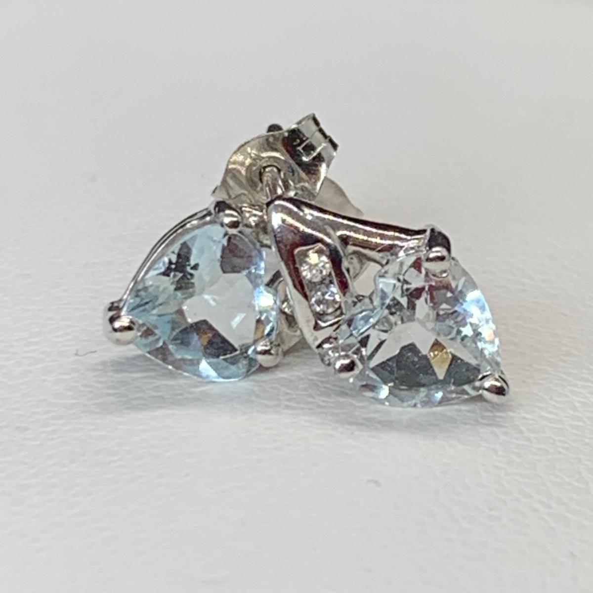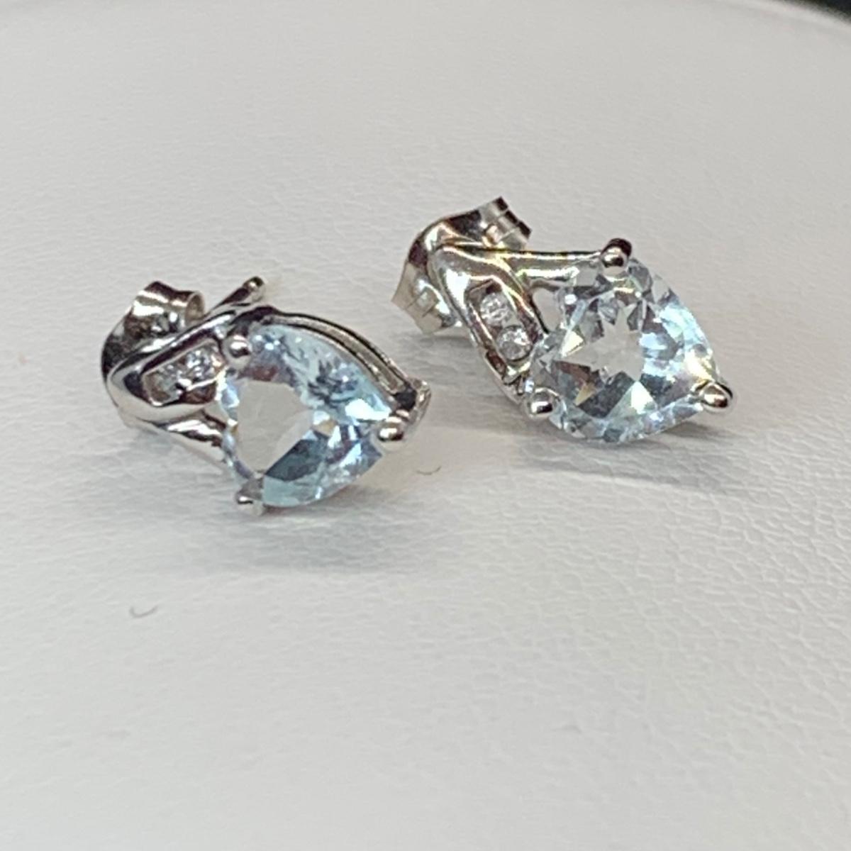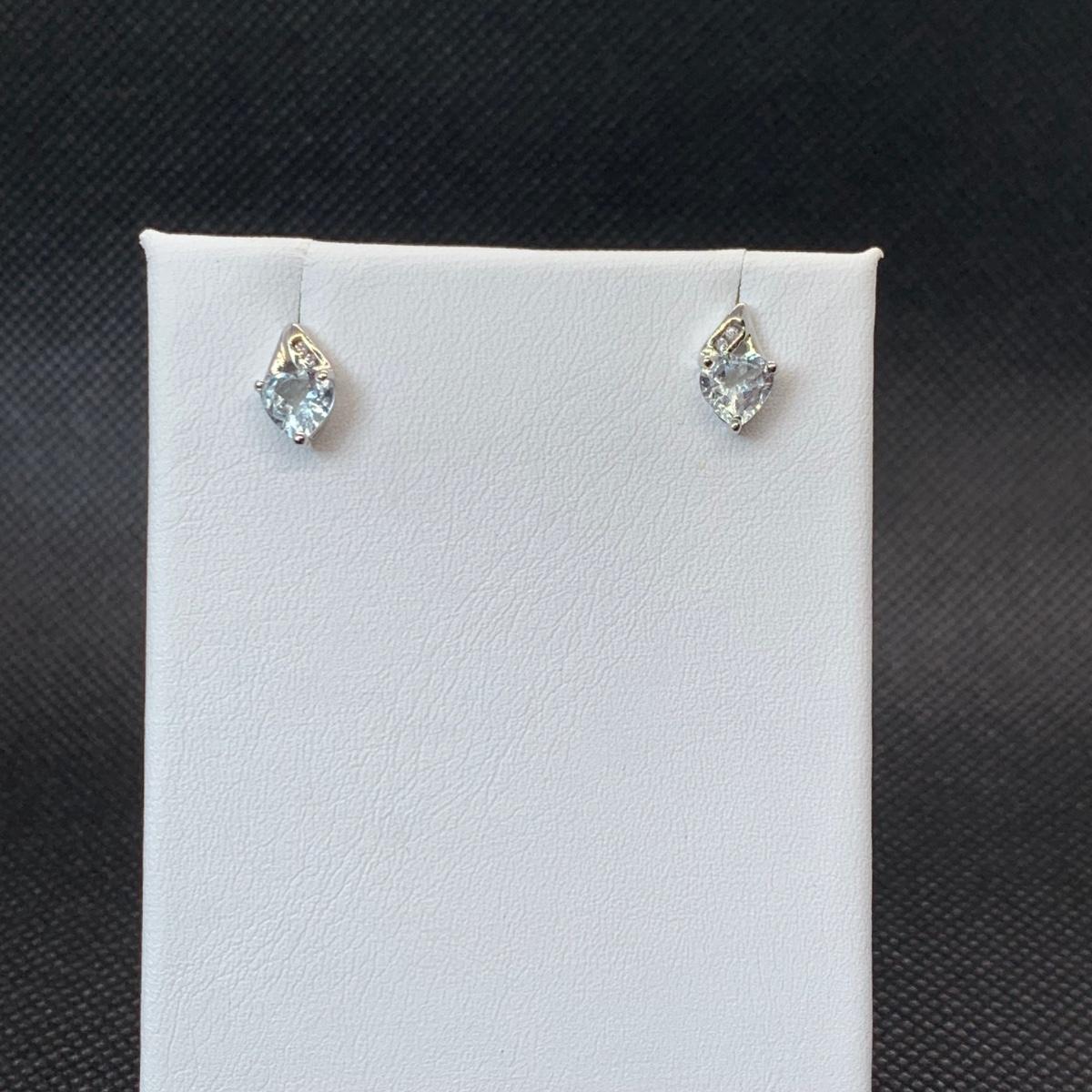 LOT 182: Blue Topaz & CZ Heart Shaped 10K Pierced Earrings, Tw 1.4g