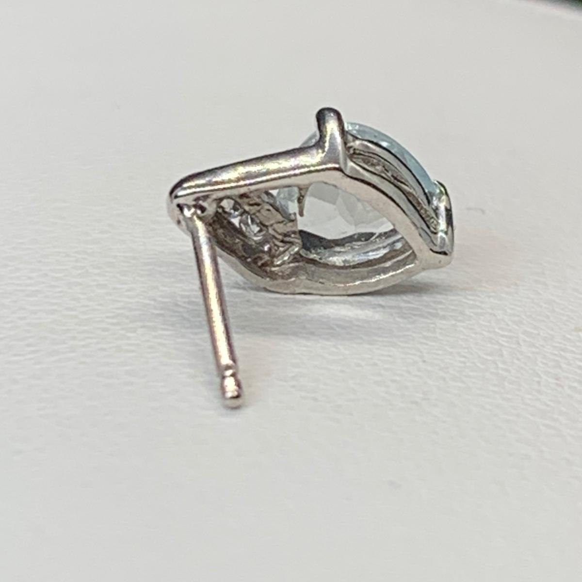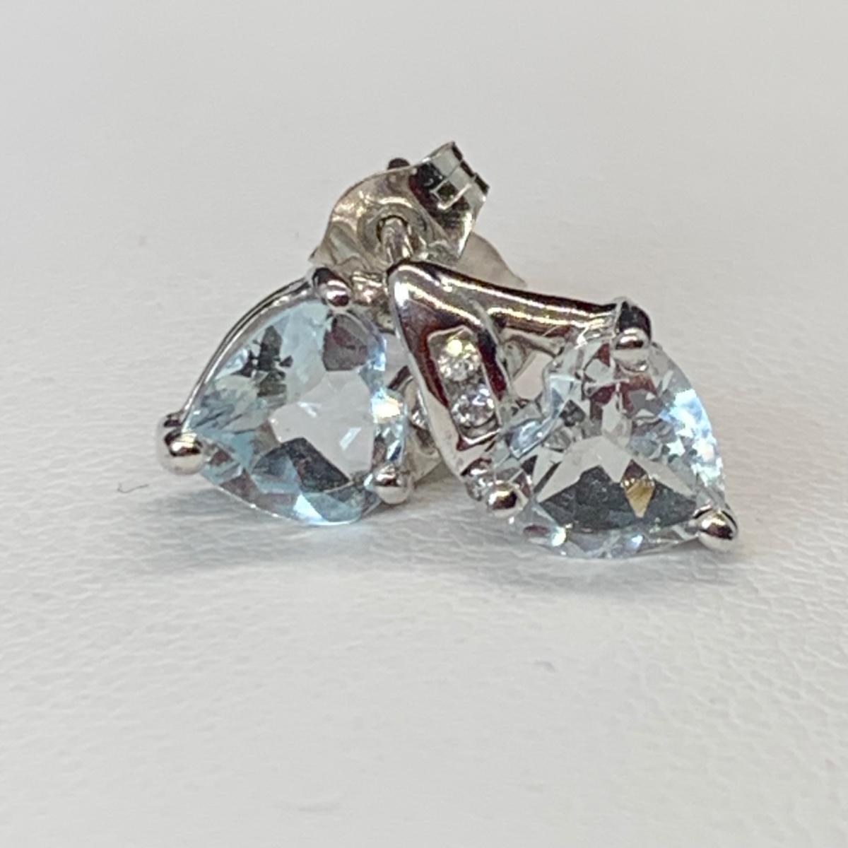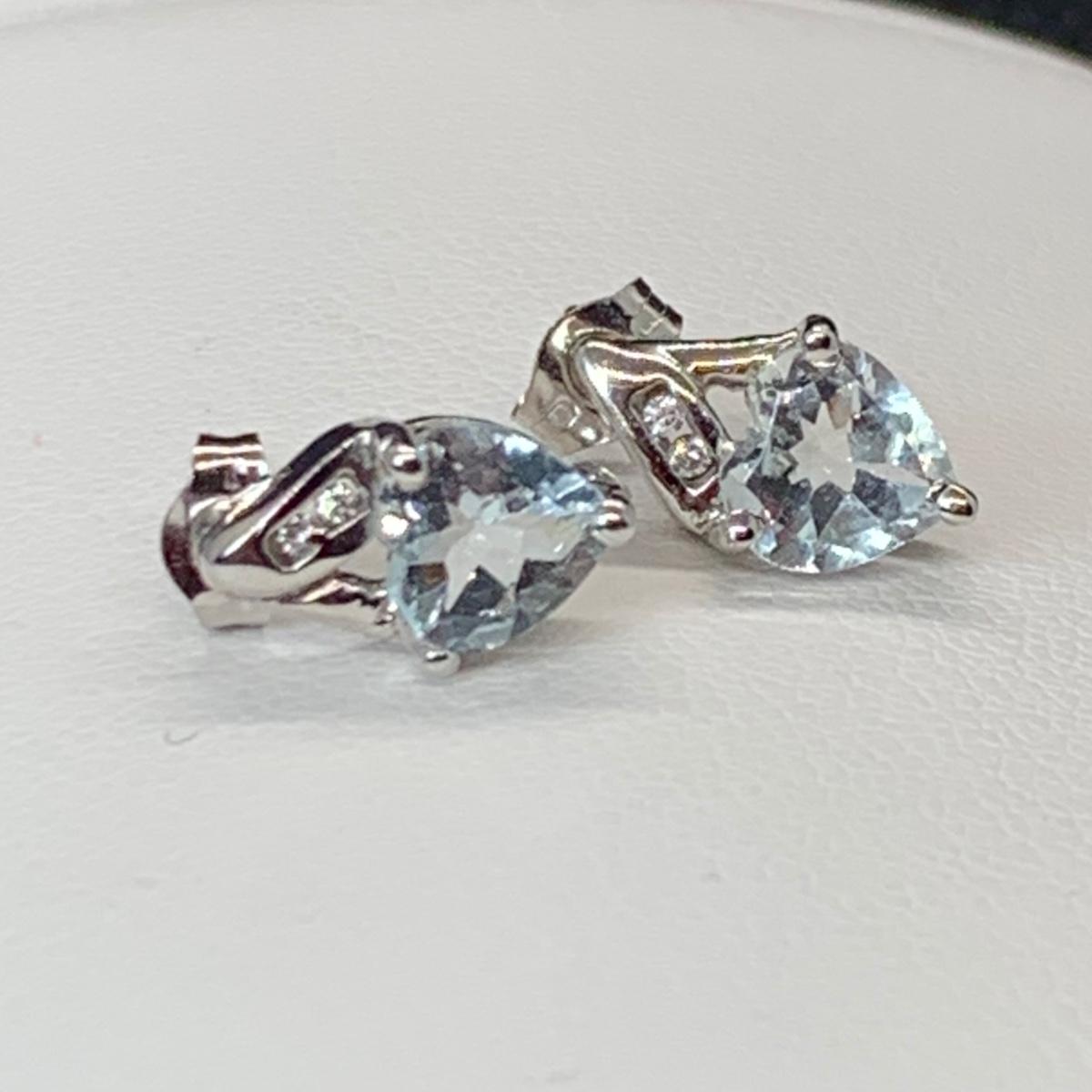 LOT 182: Blue Topaz & CZ Heart Shaped 10K Pierced Earrings, Tw 1.4g