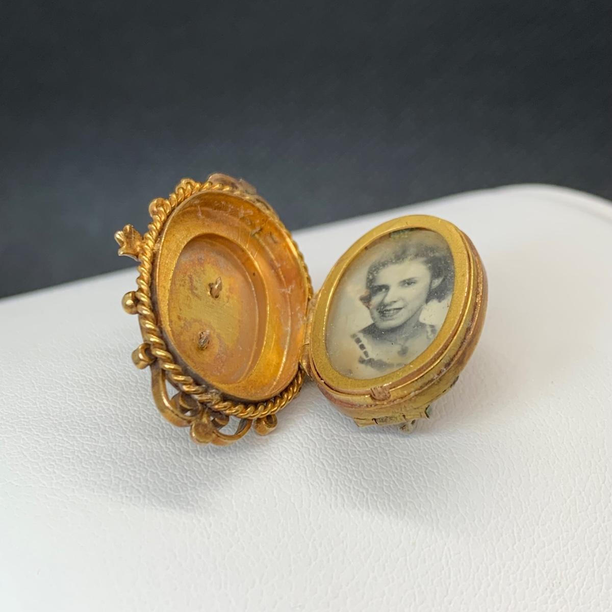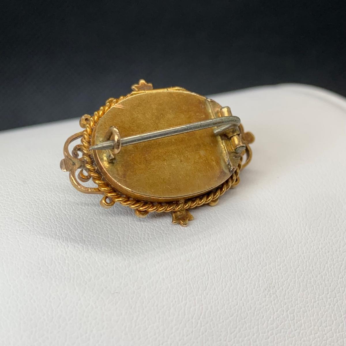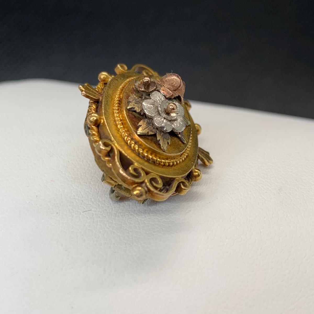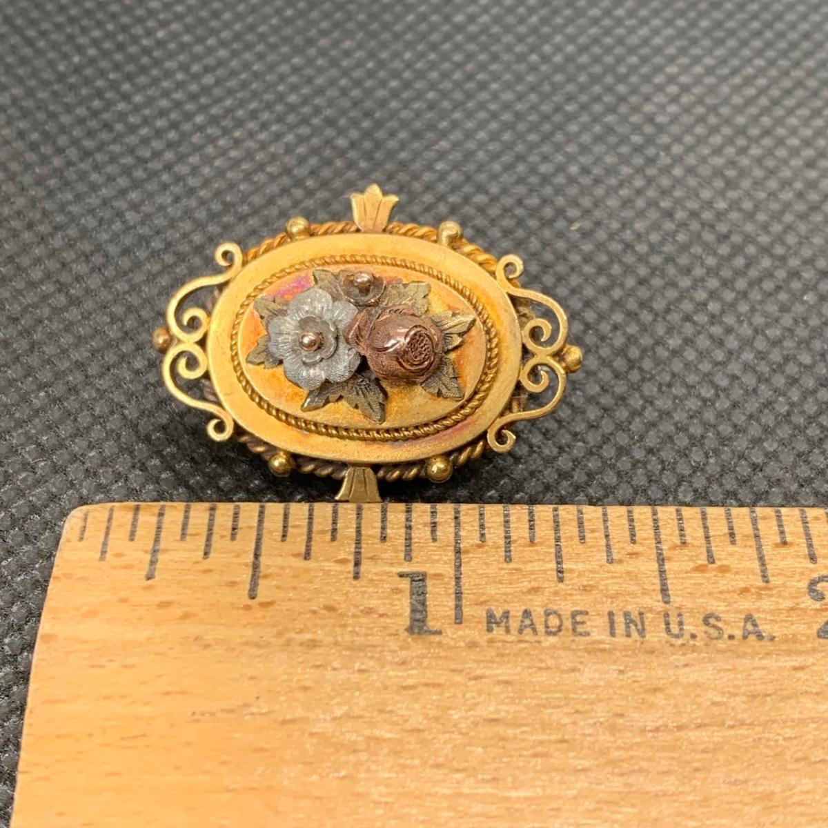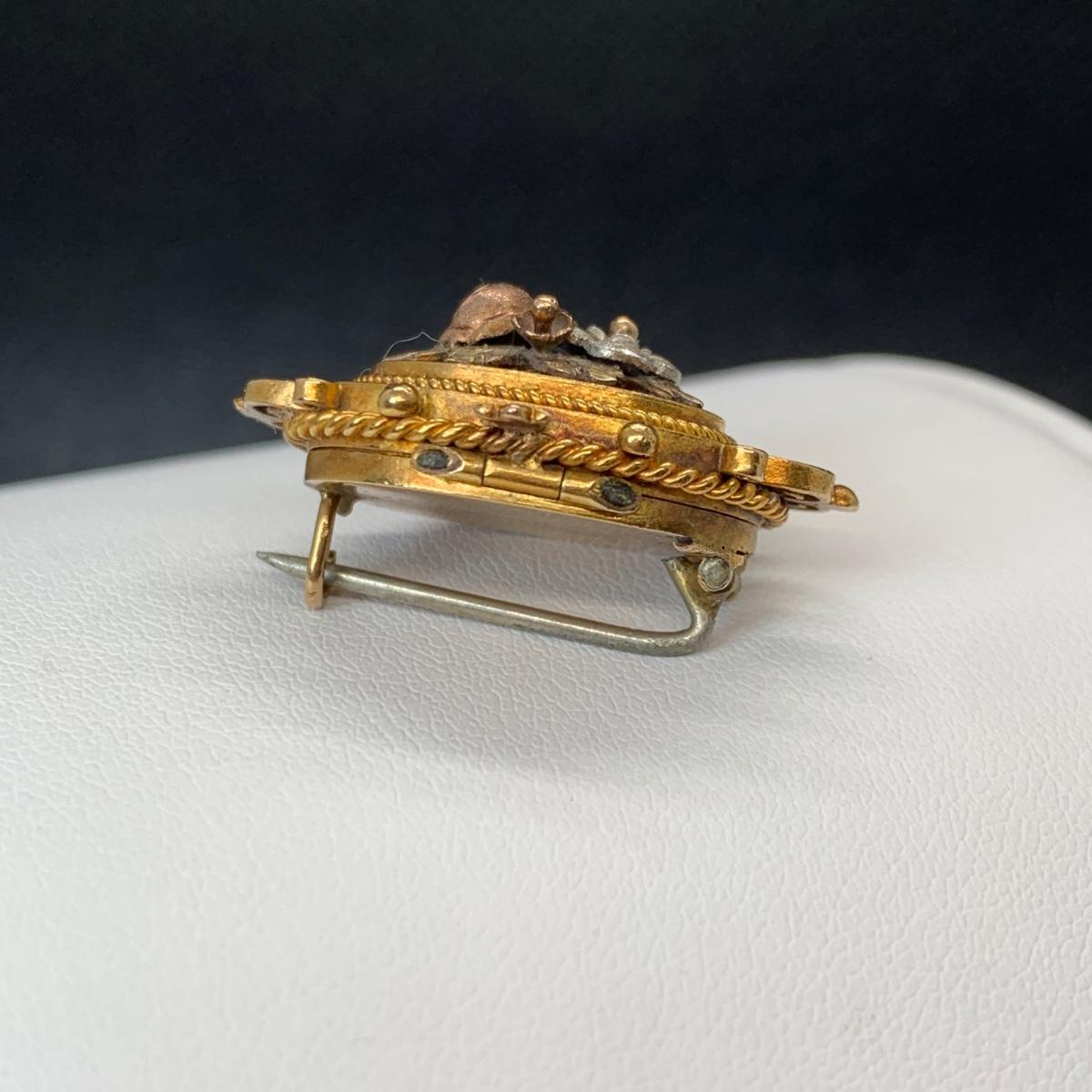 LOT 184: Antique 14K Tri Color Victorian Locket Brooch: Platinum, Rose Gold & Yellow Gold