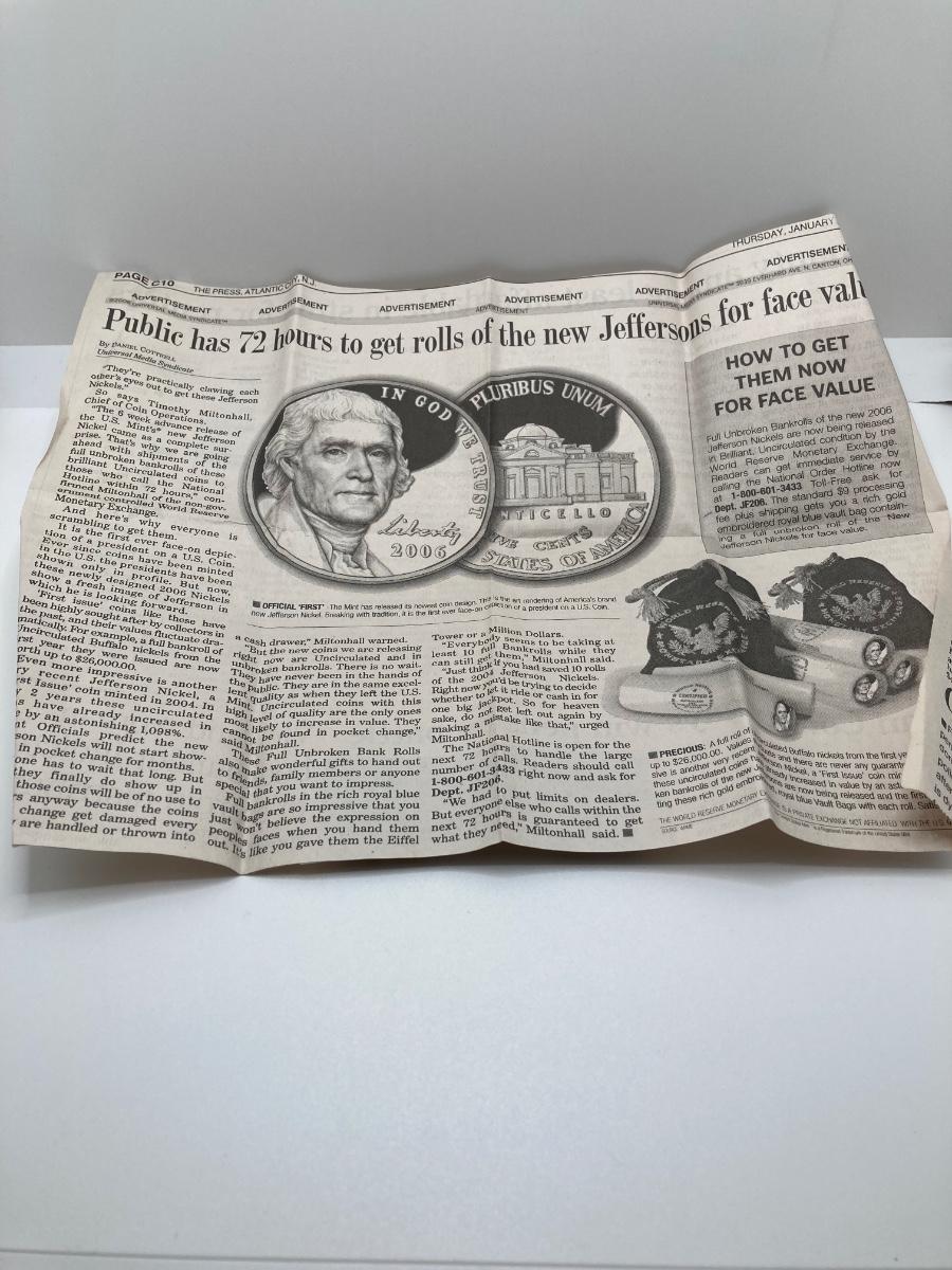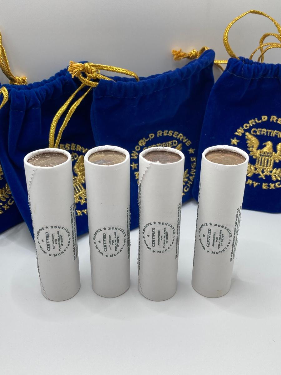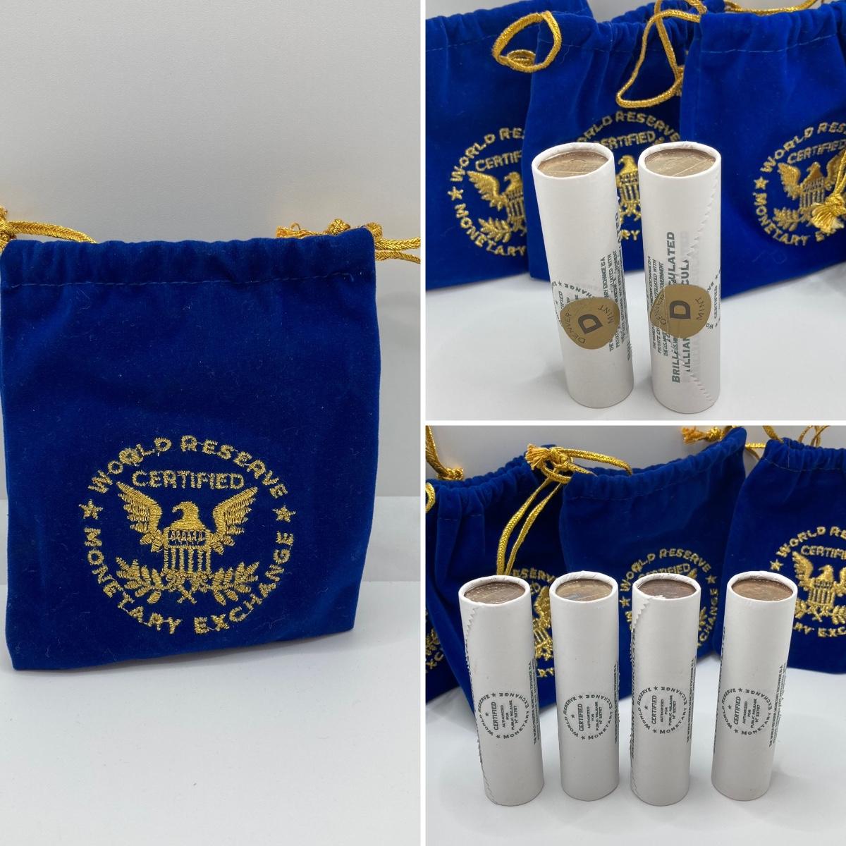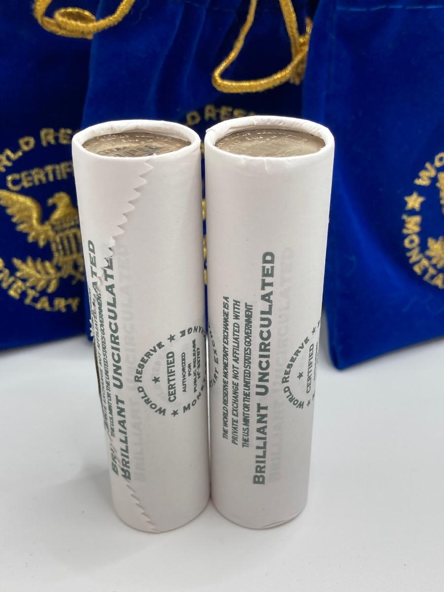 LOT 195: (Six) World Reserve Monetary Exchange 2006 Brilliant Uncirculated Nickel Rolls with Velvet Bags