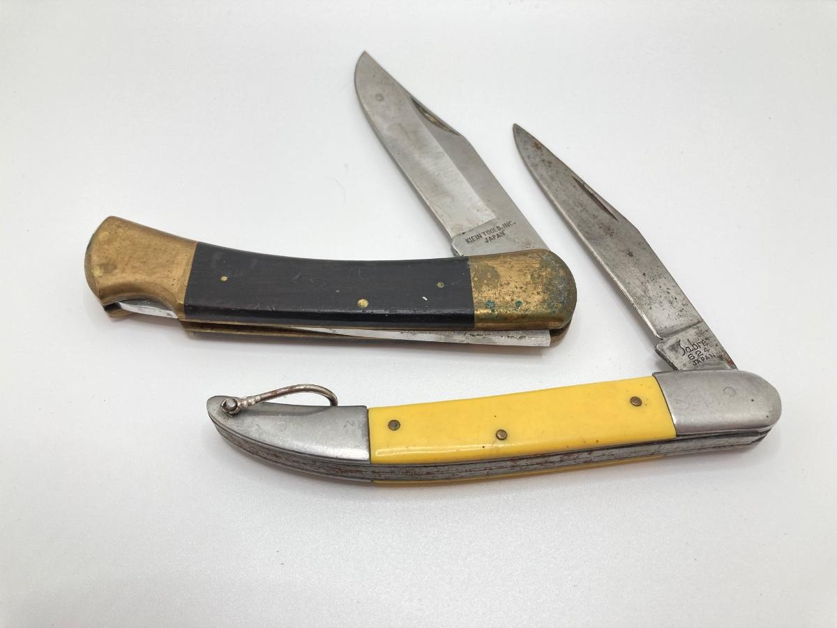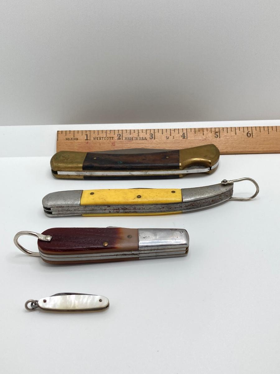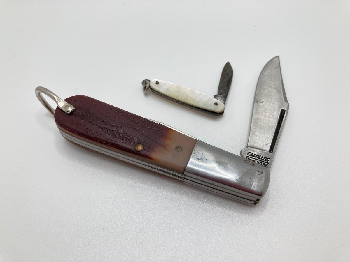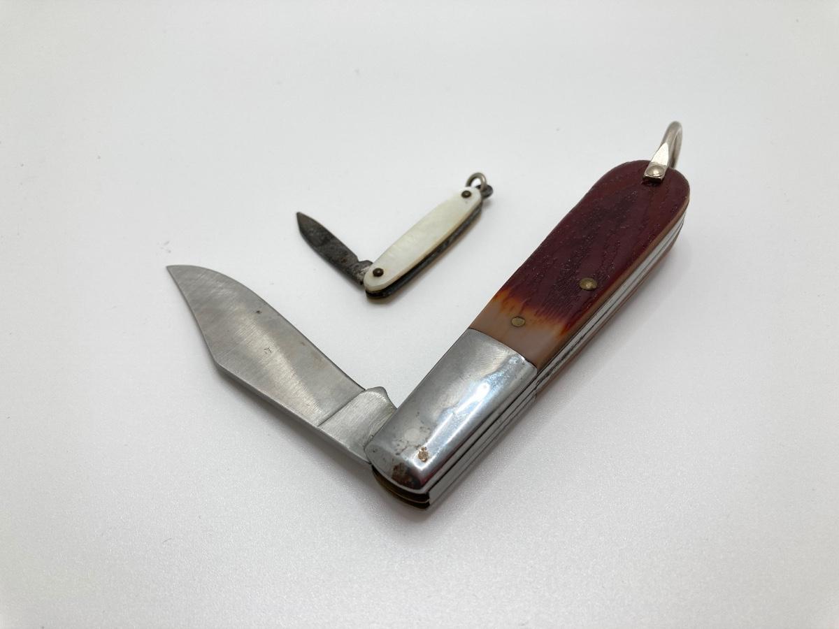 LOT 198: Vintage Collection - Pocket Knives, Dr. Edwards Olive Tablets Tin and Leather Wildwood NJ Pouch