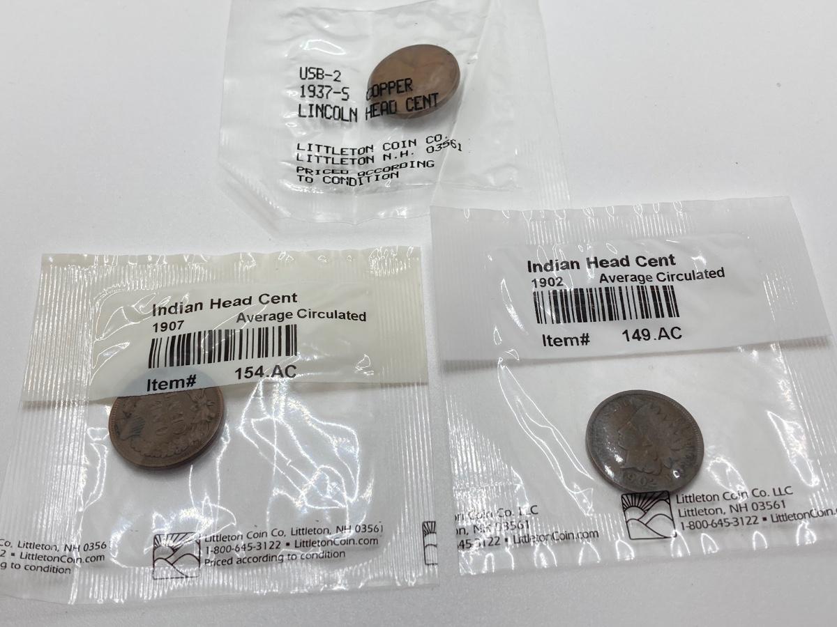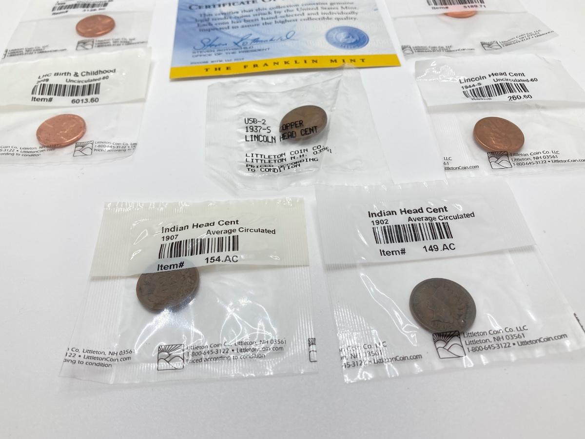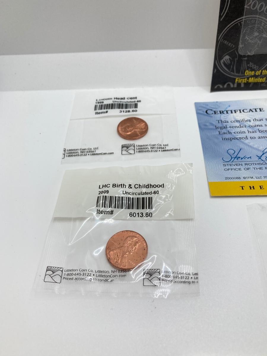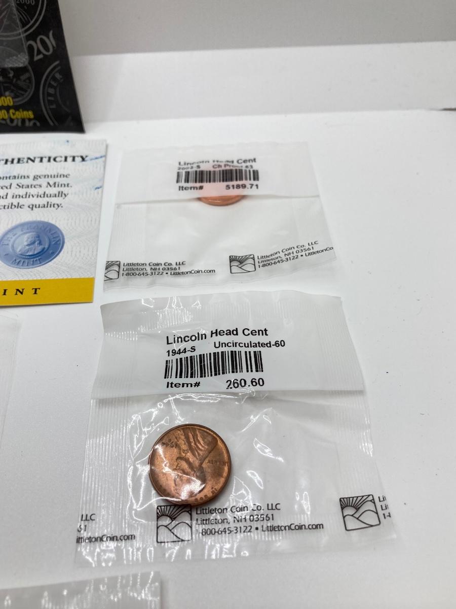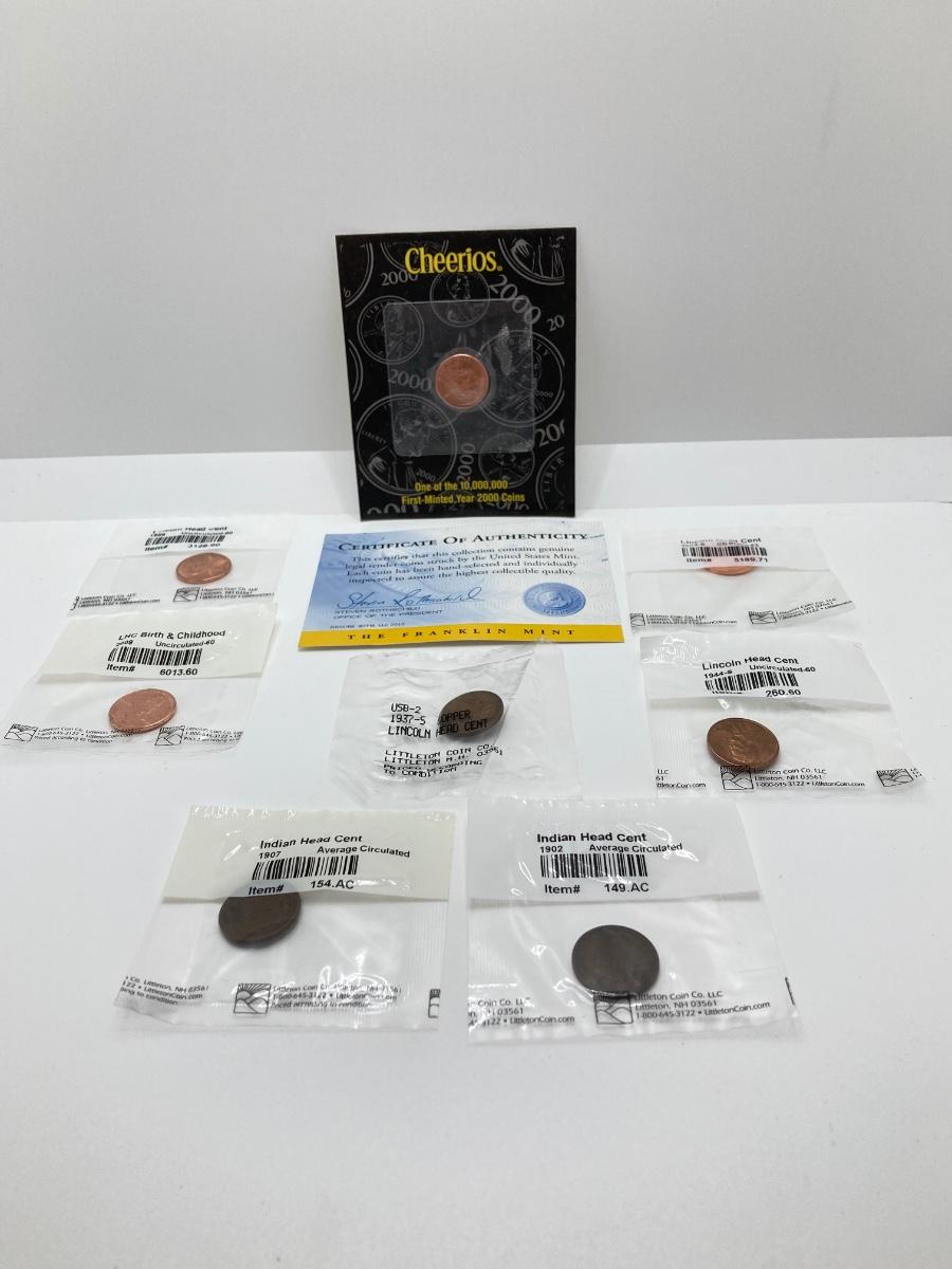 LOT 204: Penny Collection - Cherrios 2000 Uncirculated with C.O.A., 1944-S Uncirculated, Indian Head Cent and More