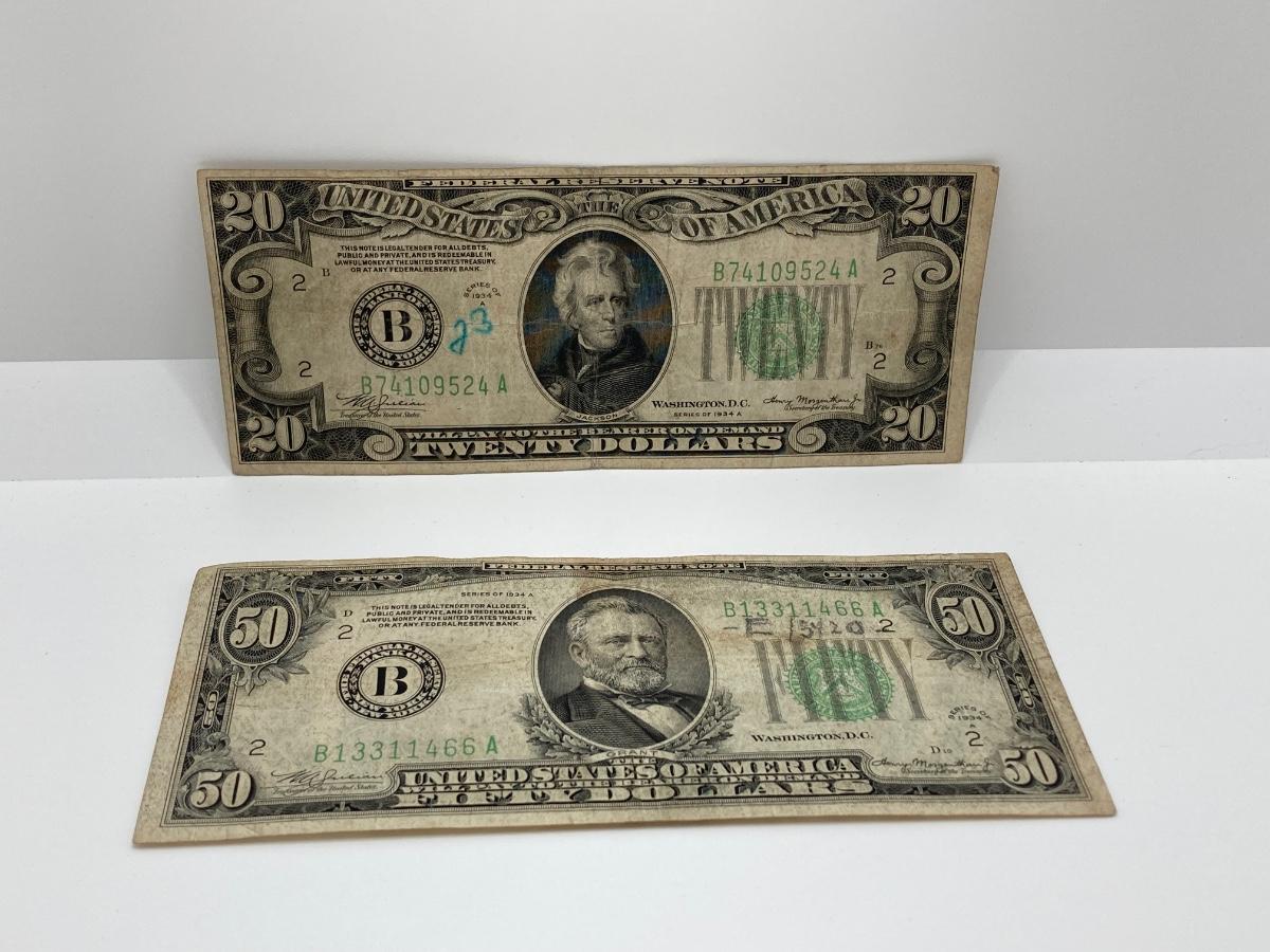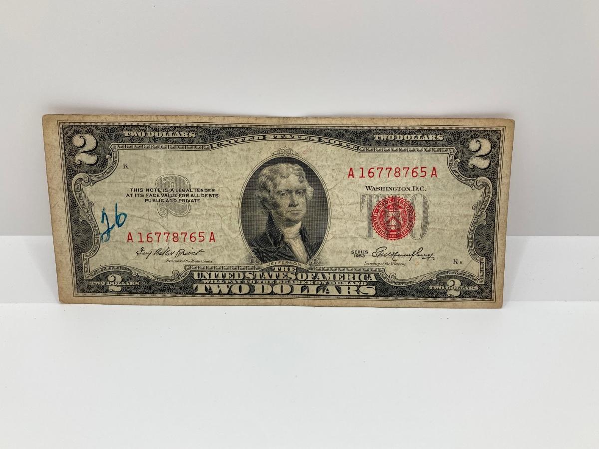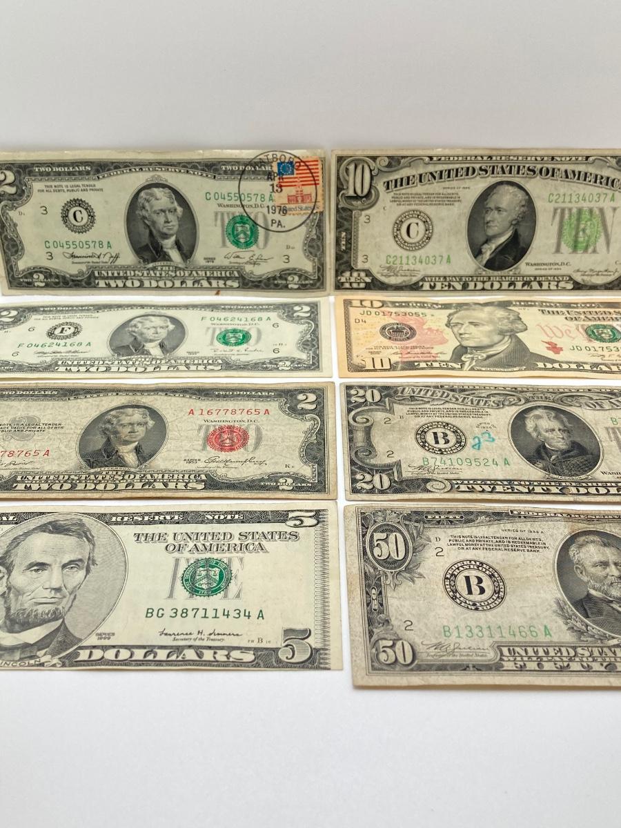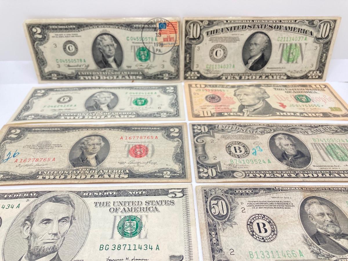 LOT 206: Collection of U.S. Currency Bills in Two, Five, Ten, Twenty and Fifty Dollar Denominations