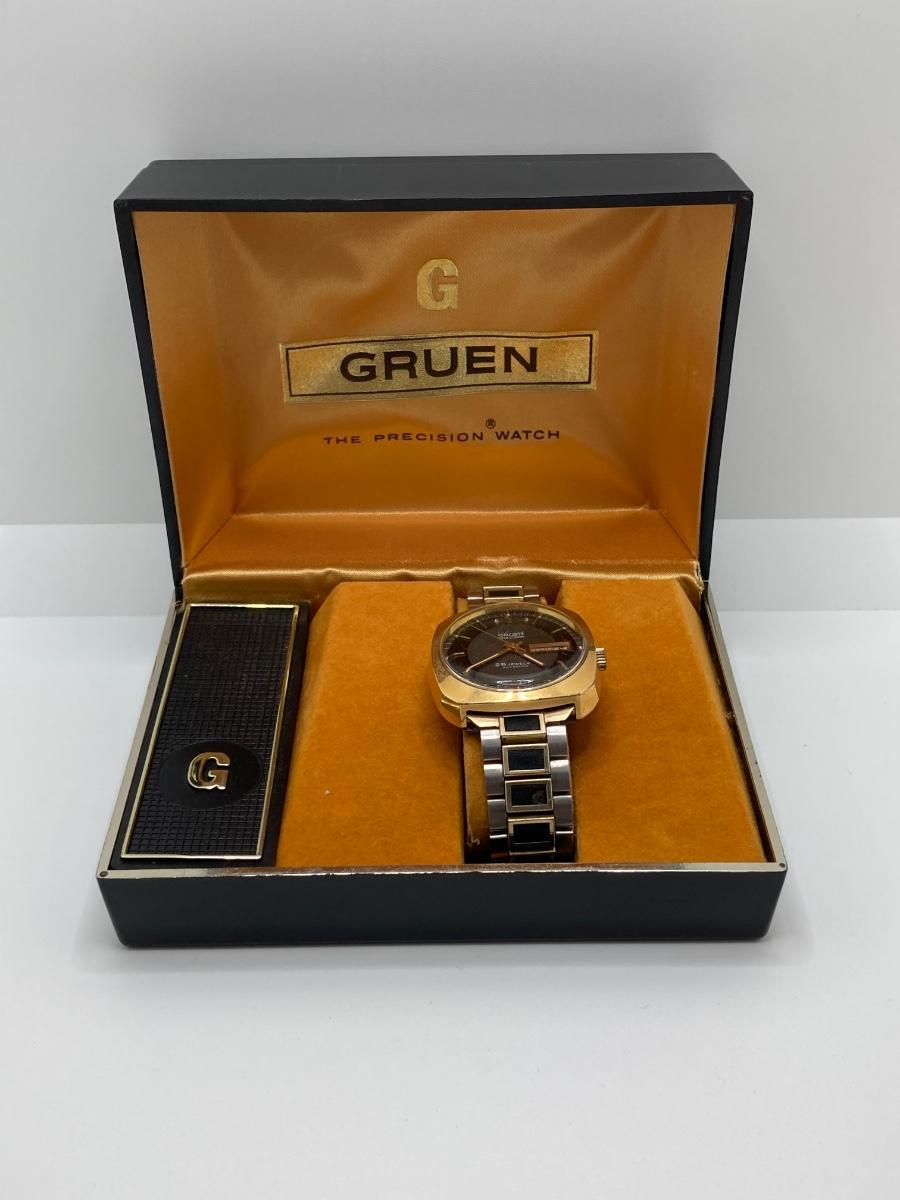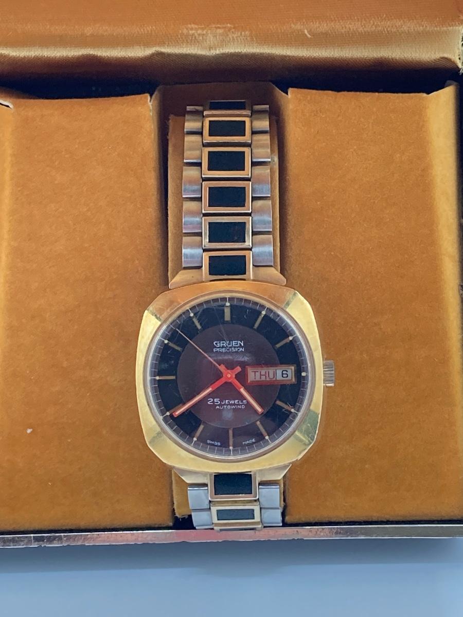 LOT 231: Gruen Swiss Made 25 Jewels Autowind Calendar Watch in Original Box