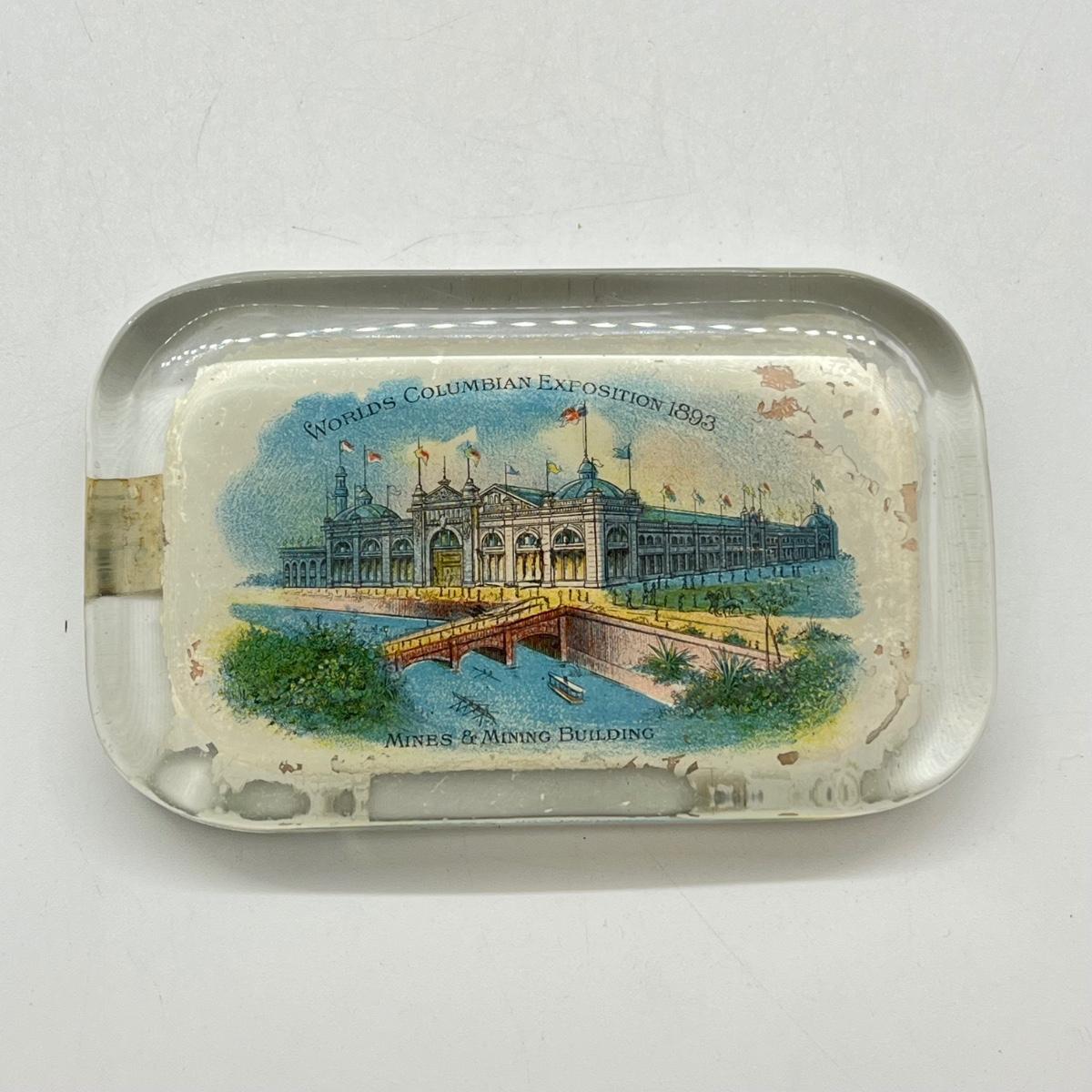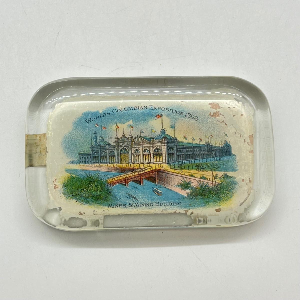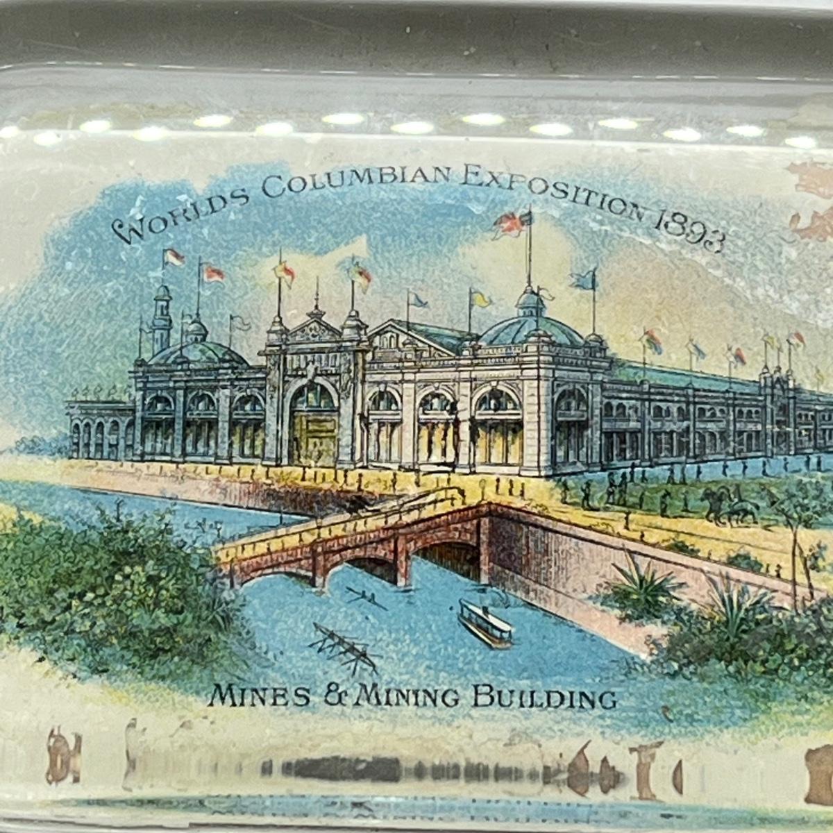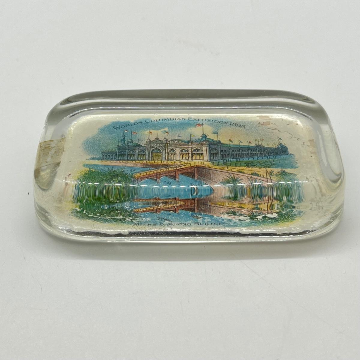 LOT 3K: Antique 1893 Chicago's World Fair Columbian Exposition Glass Paperweight - Mines & Mining Building