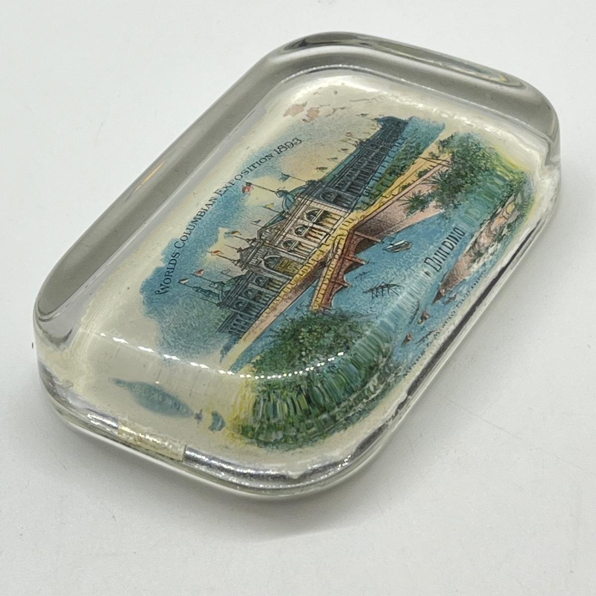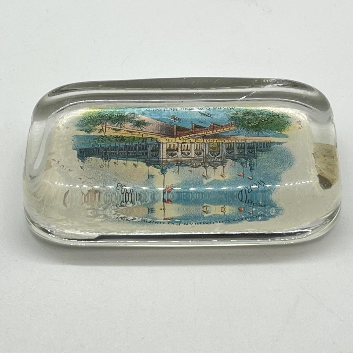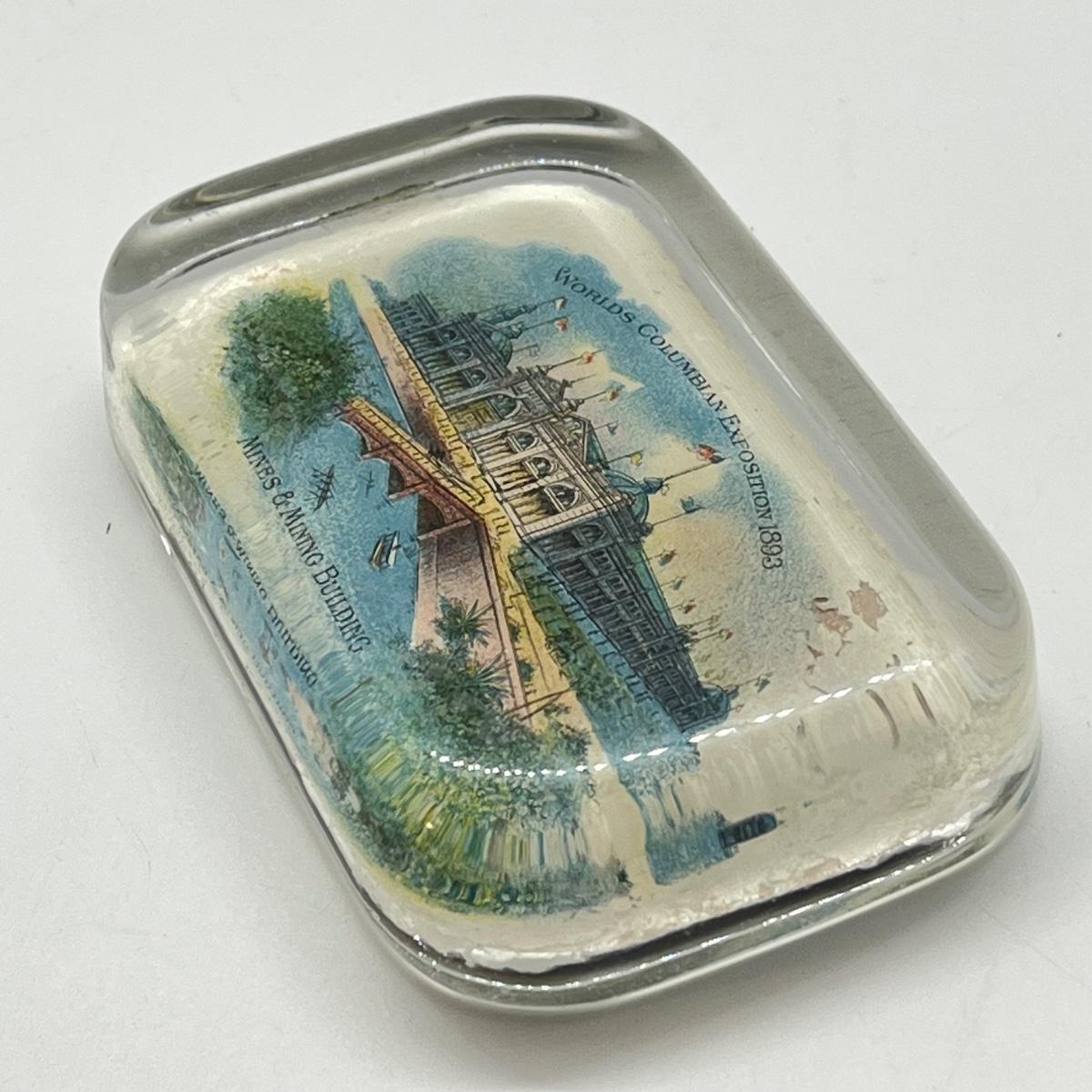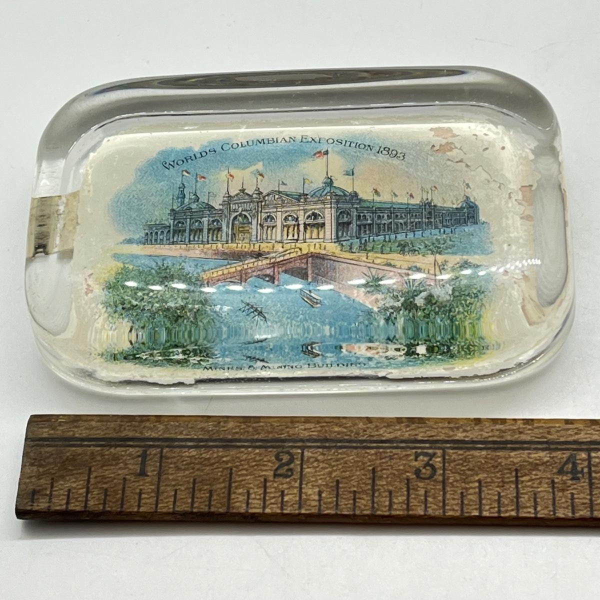 LOT 3K: Antique 1893 Chicago's World Fair Columbian Exposition Glass Paperweight - Mines & Mining Building