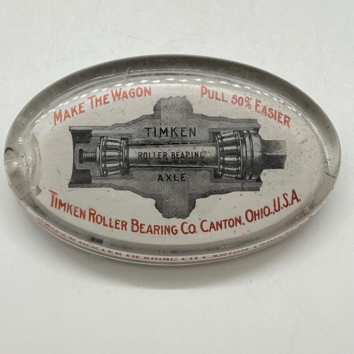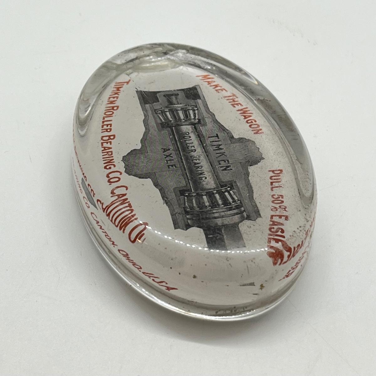 LOT 4K: Antique Glass Paperweight - Timken Roller Bearing Company Canton Ohio