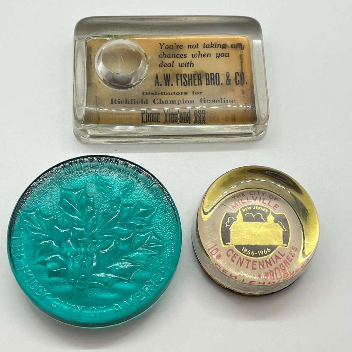LOT 5K: Vintage Local Interest Millville Vineland Glass Paperweights