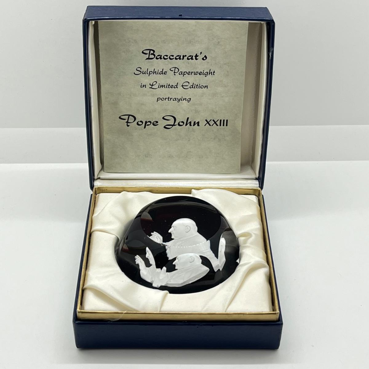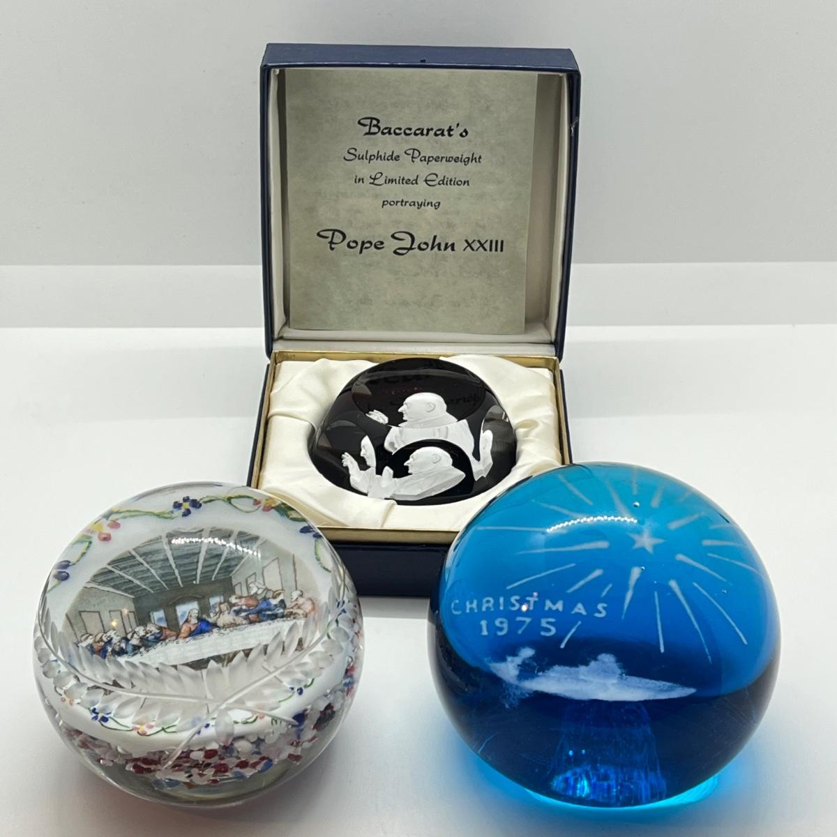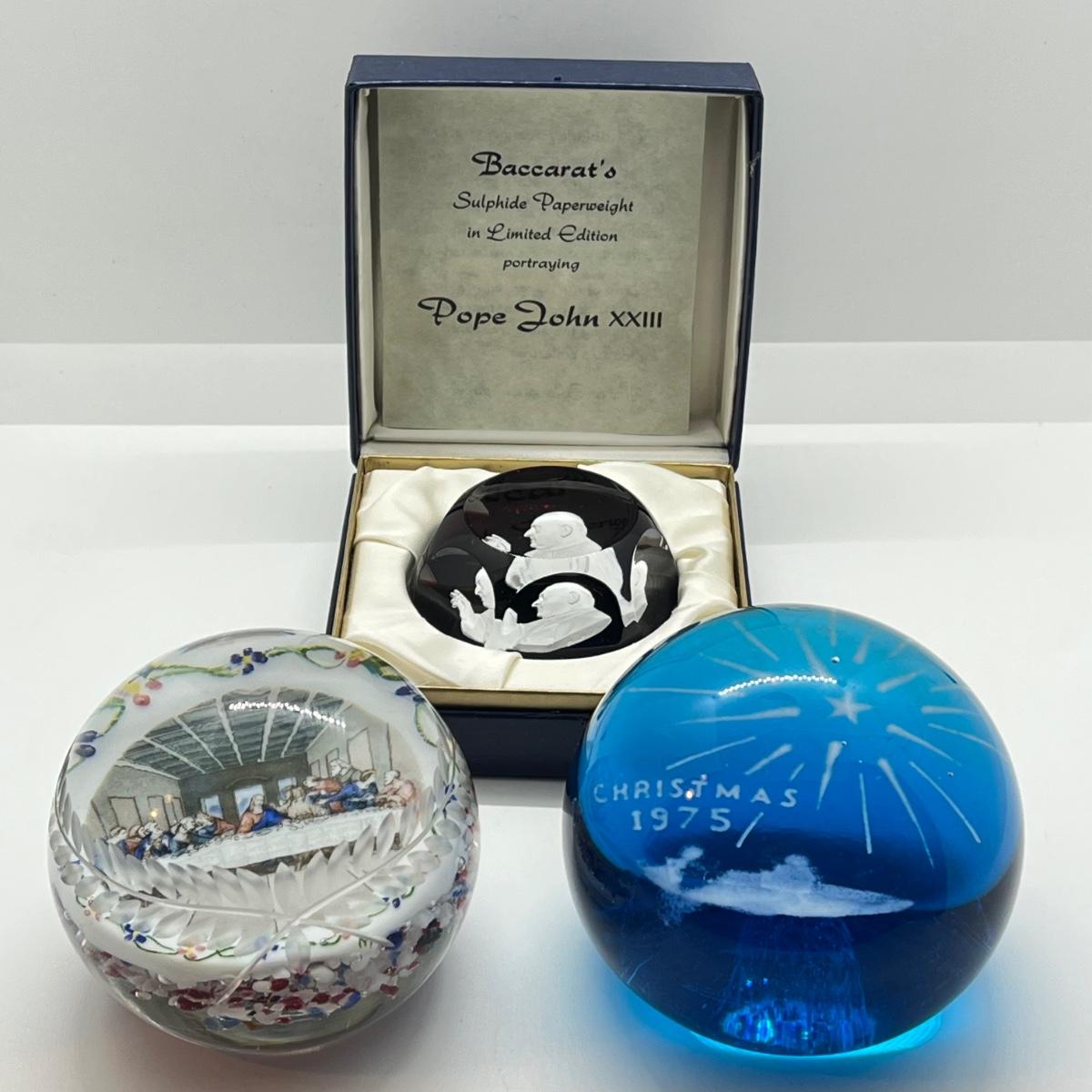 LOT 11K: Vintage 1964 Baccarat Pope John XXIII Glass and Sulfide Paperweight w/ Original Box & Other Religious Paperweights