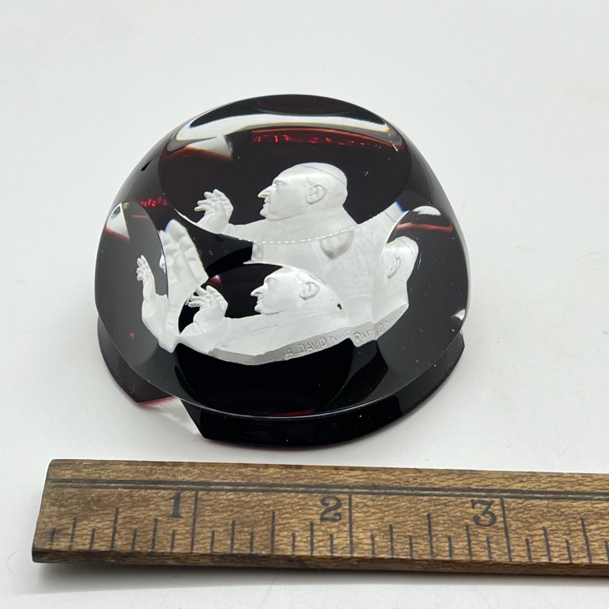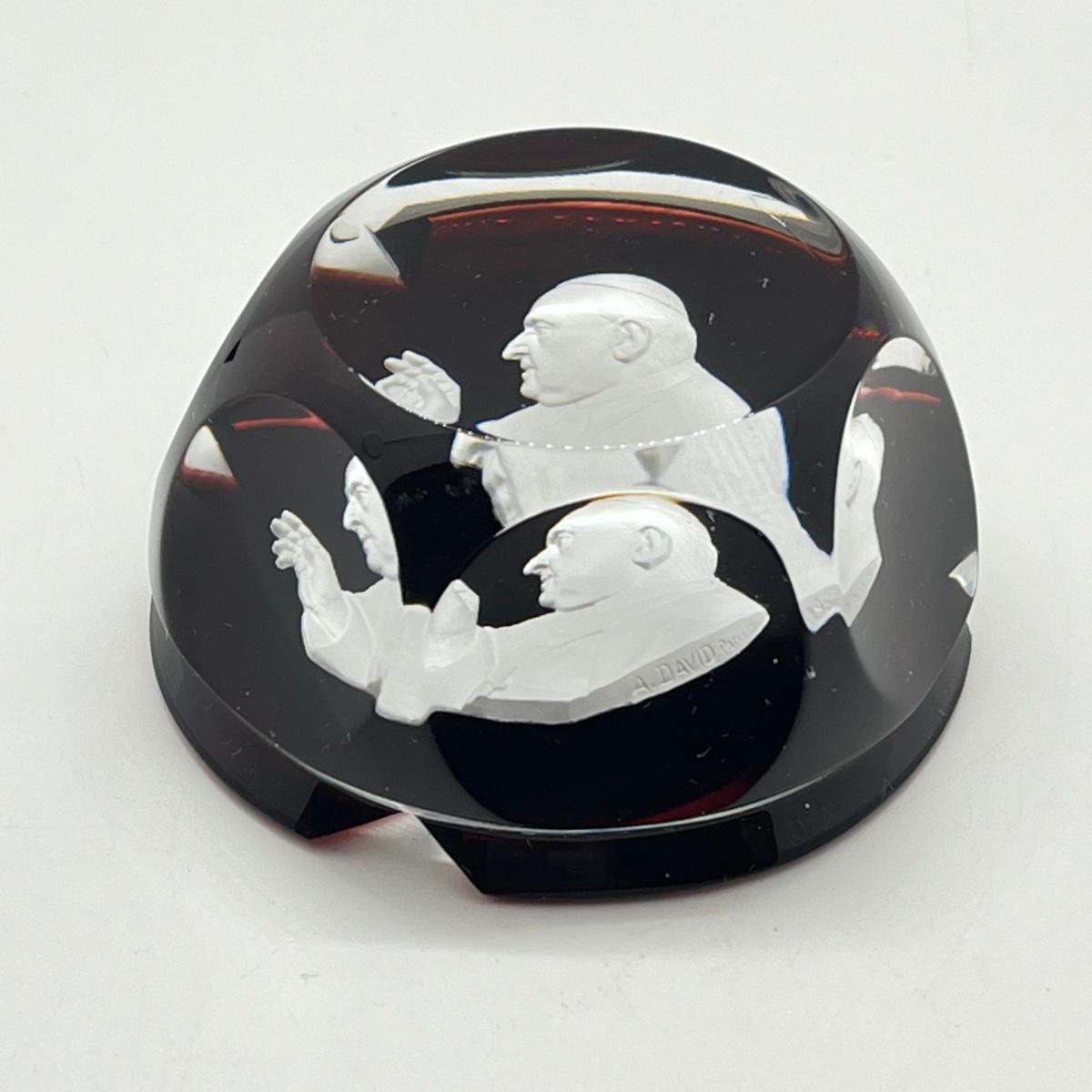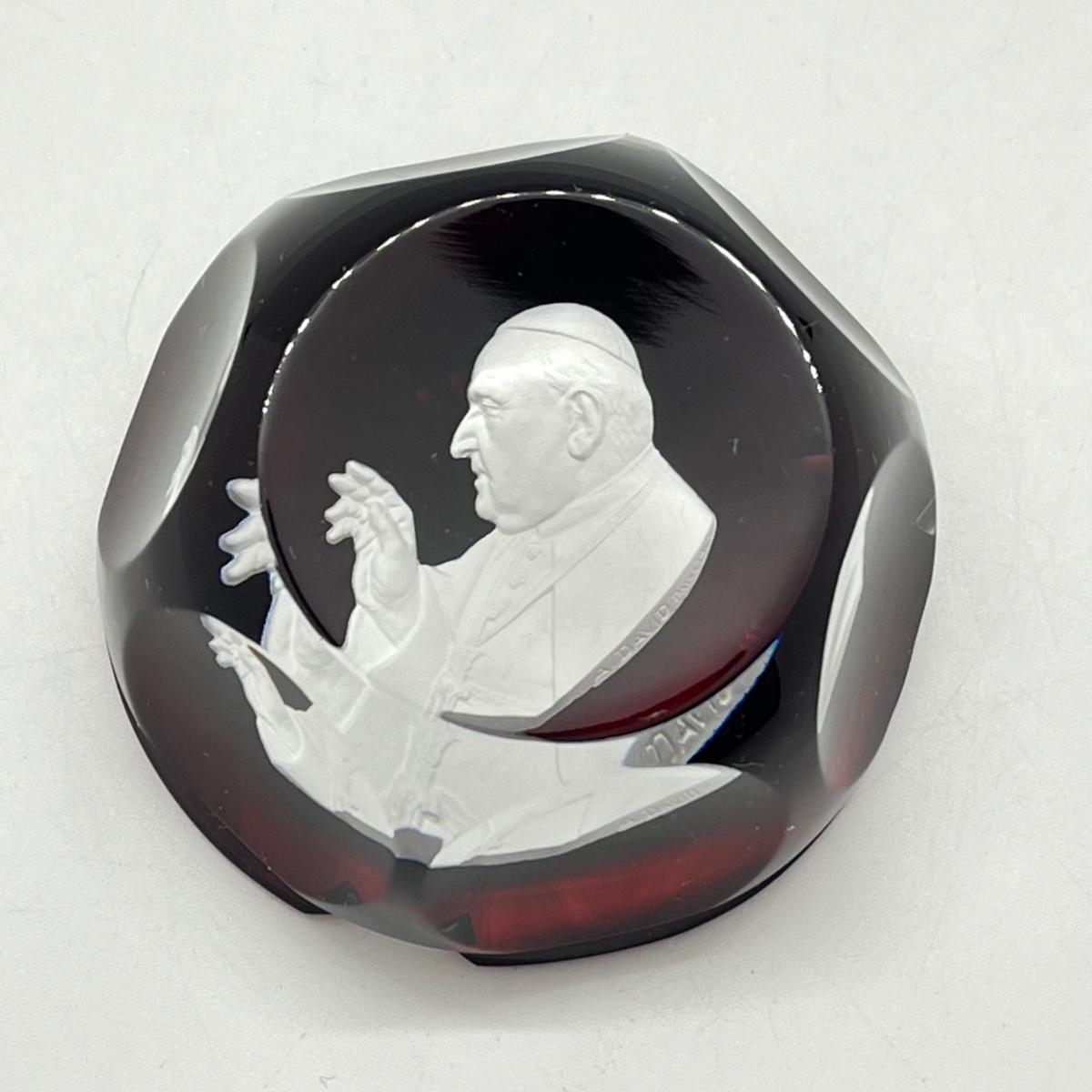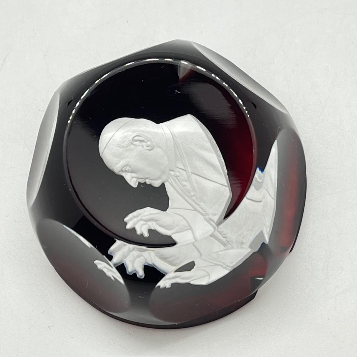 LOT 11K: Vintage 1964 Baccarat Pope John XXIII Glass and Sulfide Paperweight w/ Original Box & Other Religious Paperweights