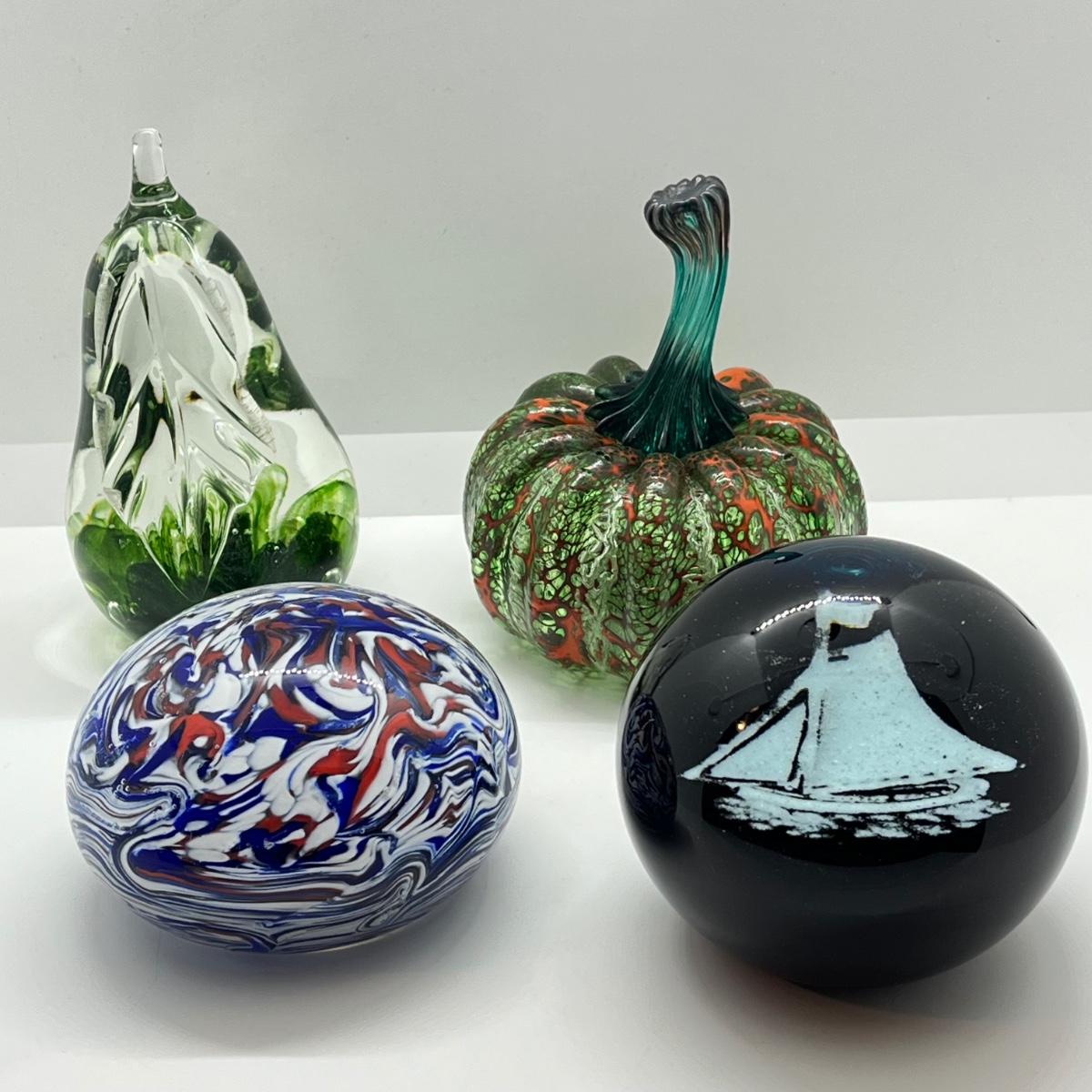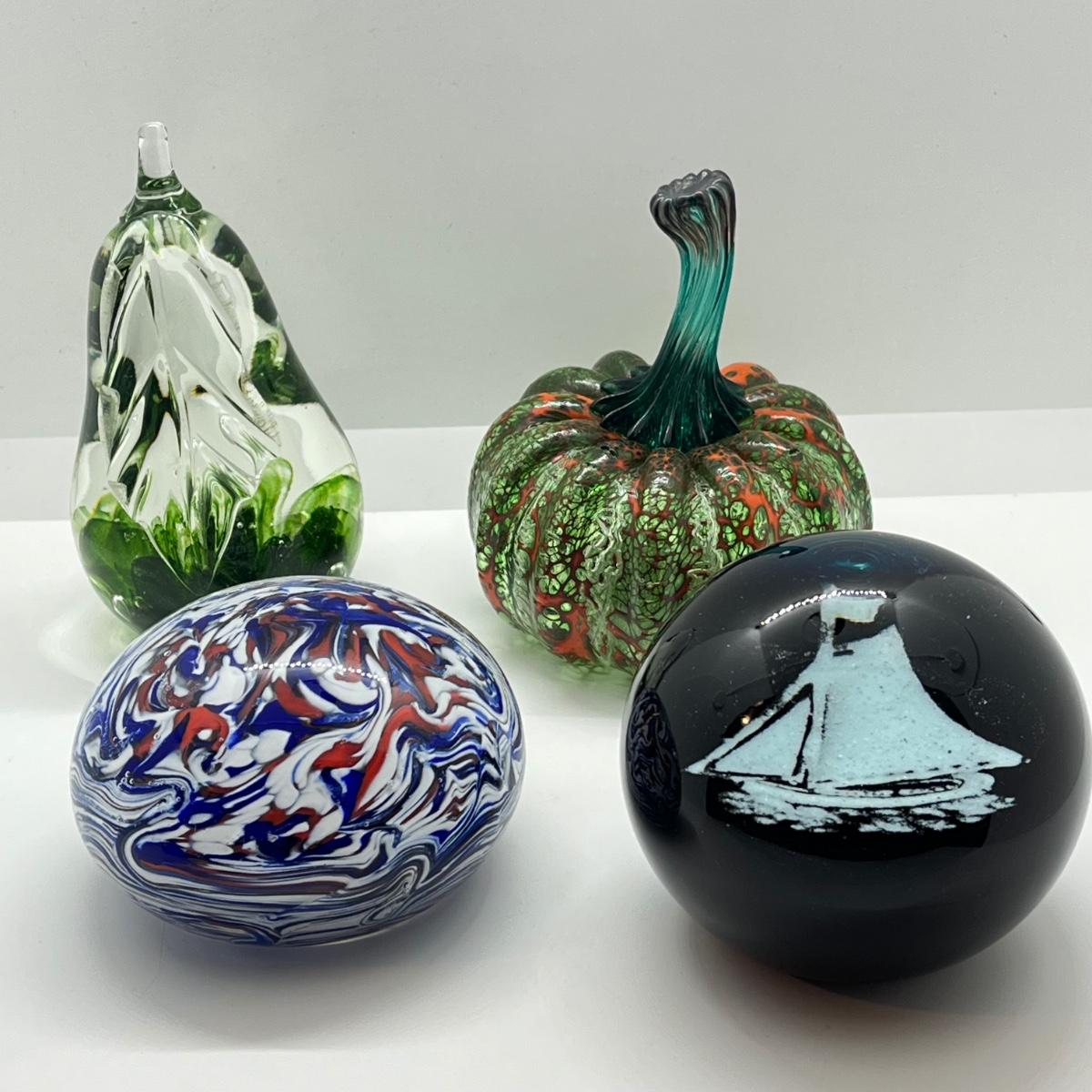 LOT 12K: Wheaton Glass Paperweights and Handblown Pumpkin