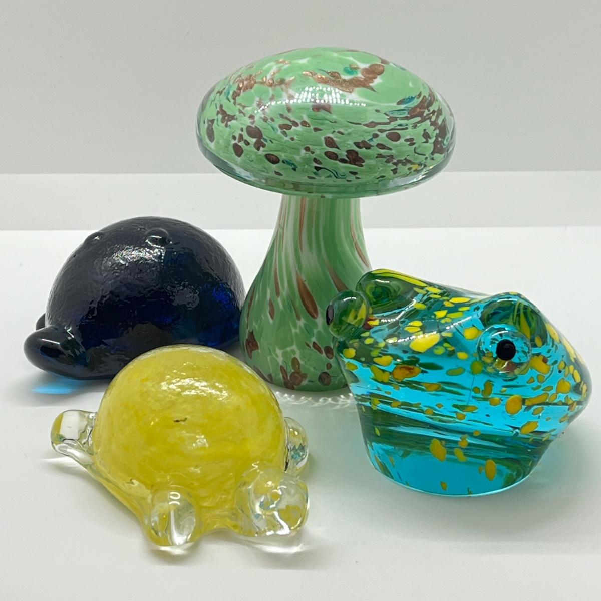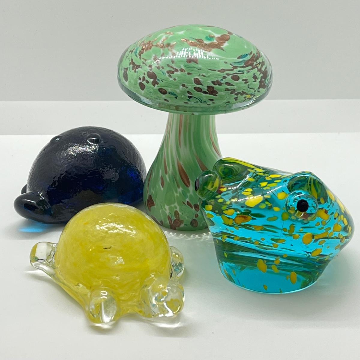 LOT 13K: Handblown Glass Paperweights - Mushroom, Frog & Turtles