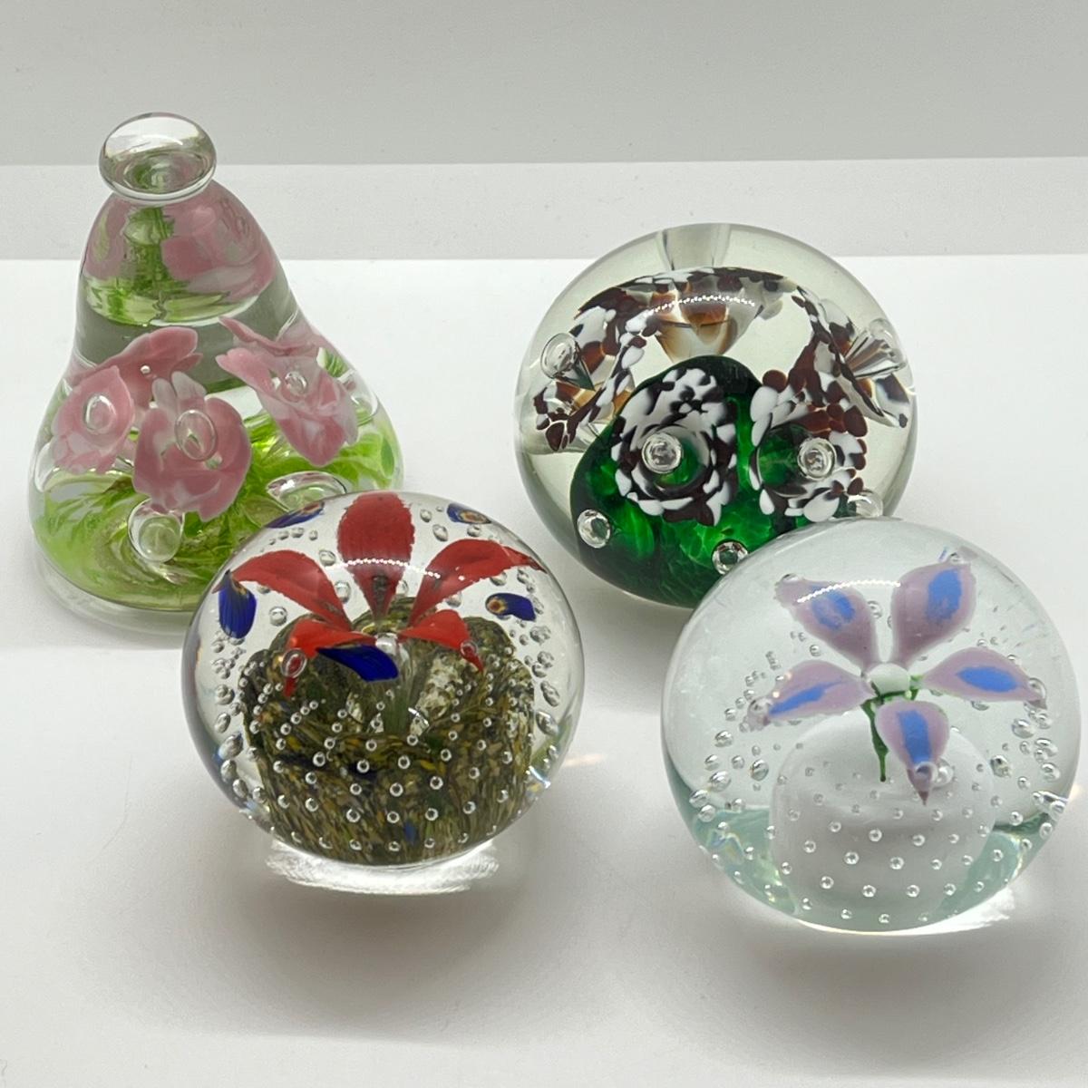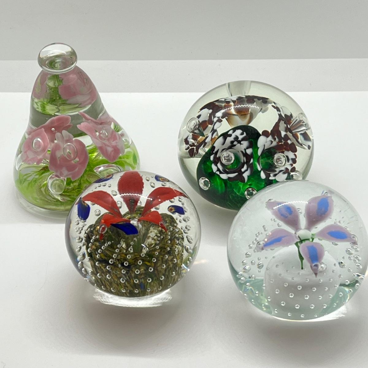 LOT 16K: Four Glass Paperweights w/ Hallmarks MC, DH, SIC and CS