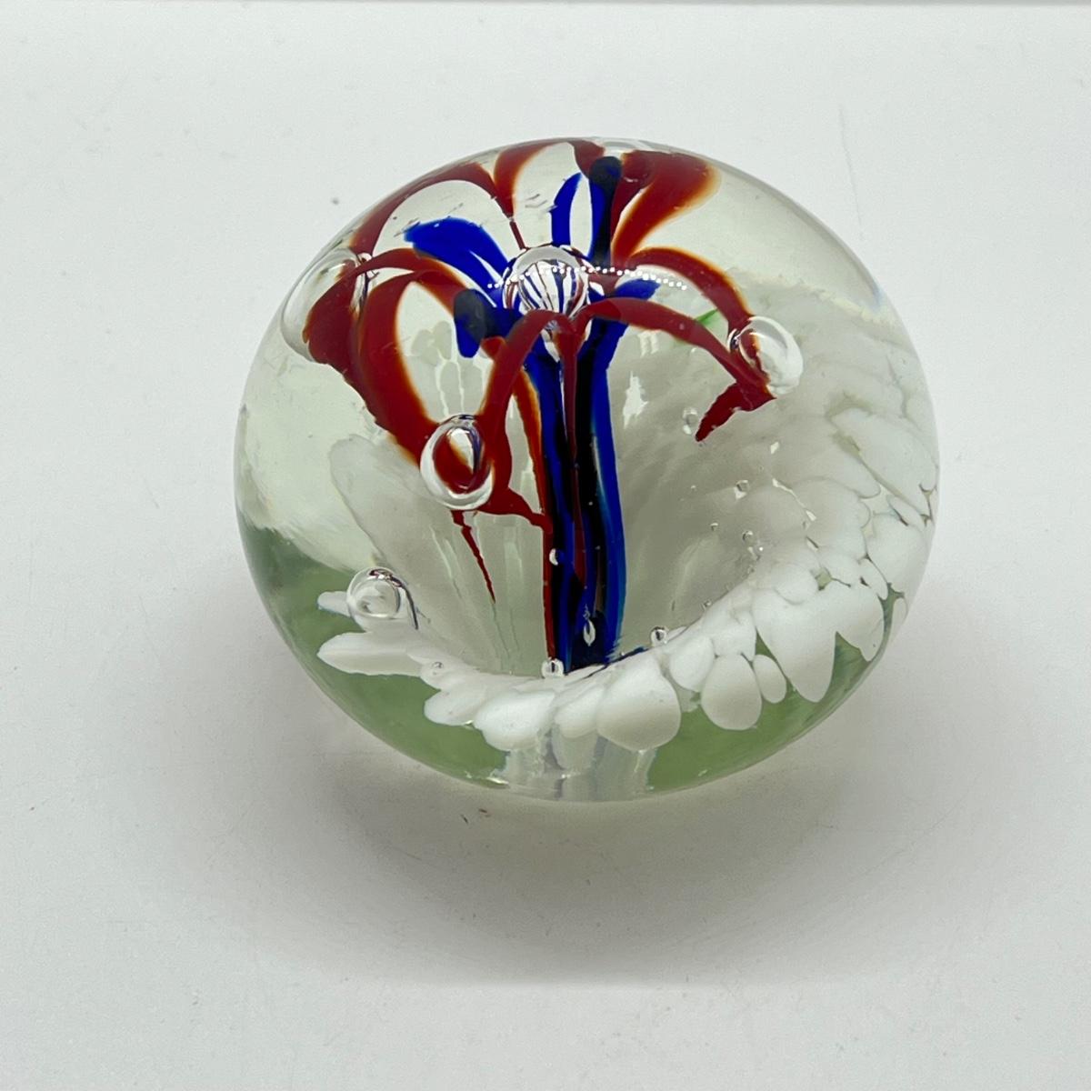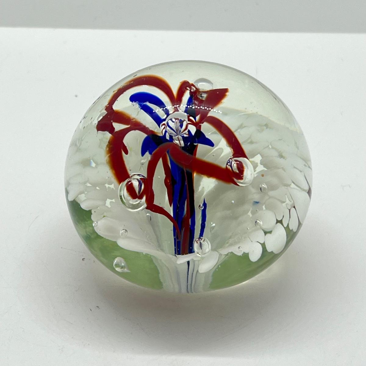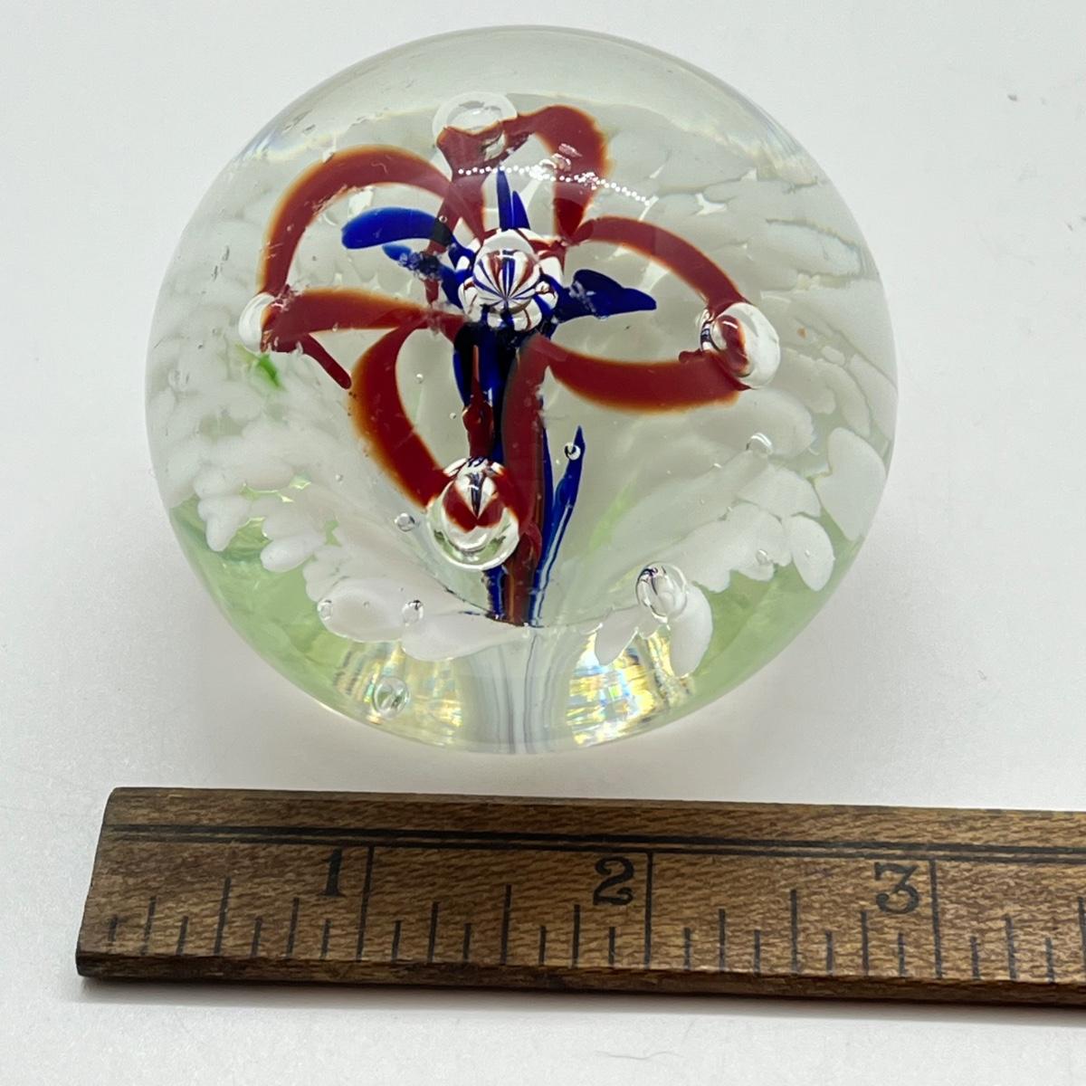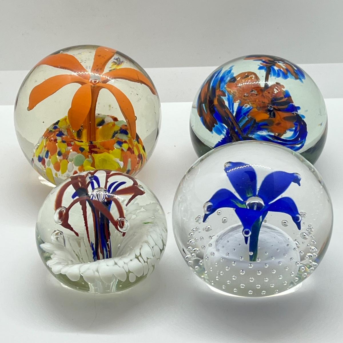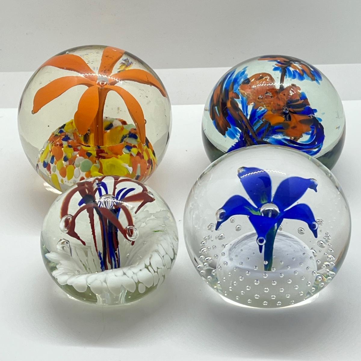 LOT 22K: Four Handlblown Floral Themed Glass Paperweights